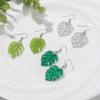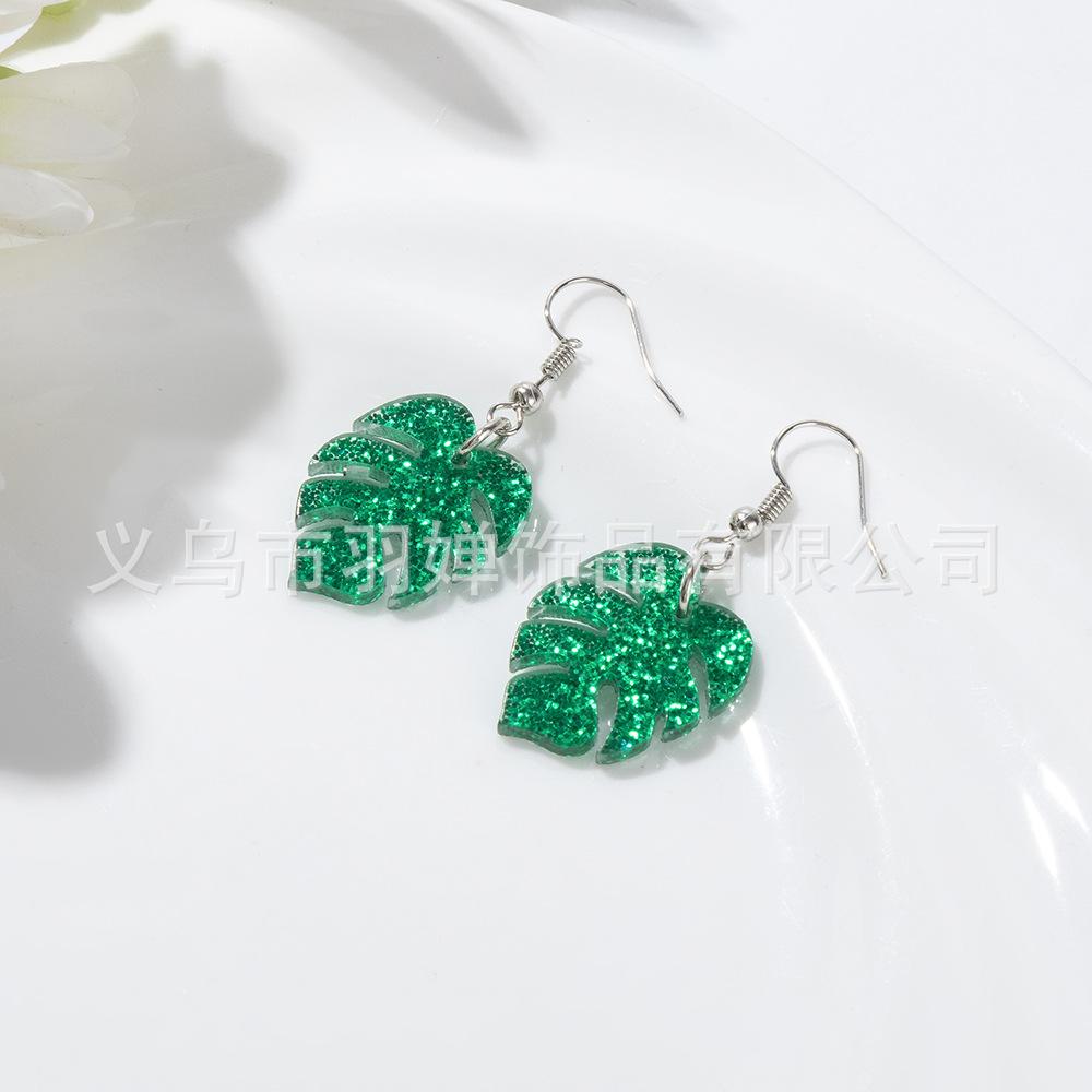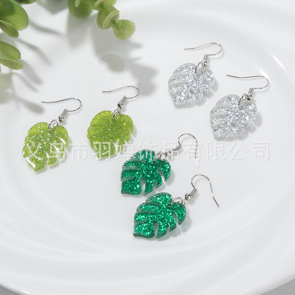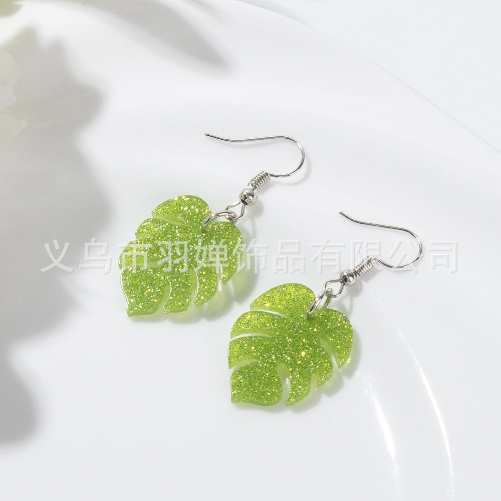 Nuevos aretes de abanico para dama, aretes de resina verde alta, aretes de hojas, venta al por mayor