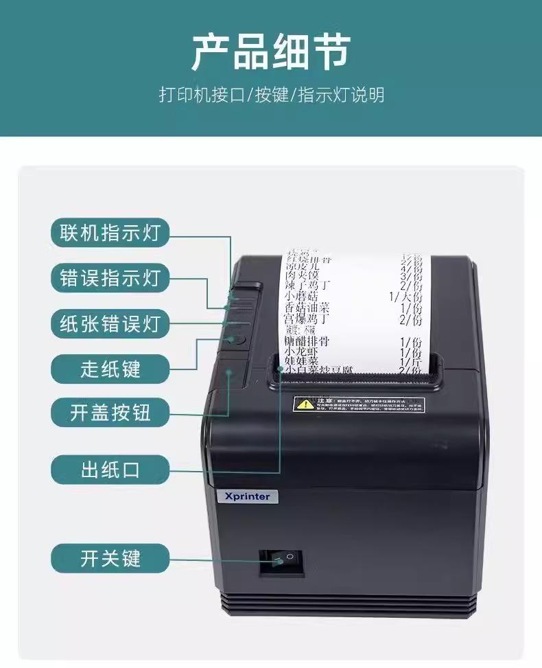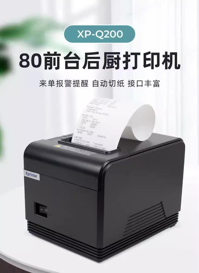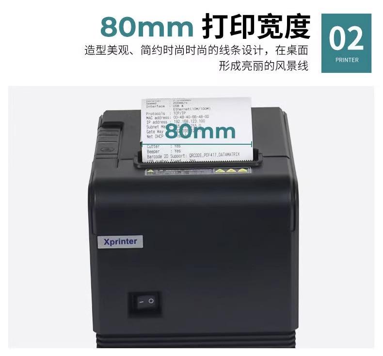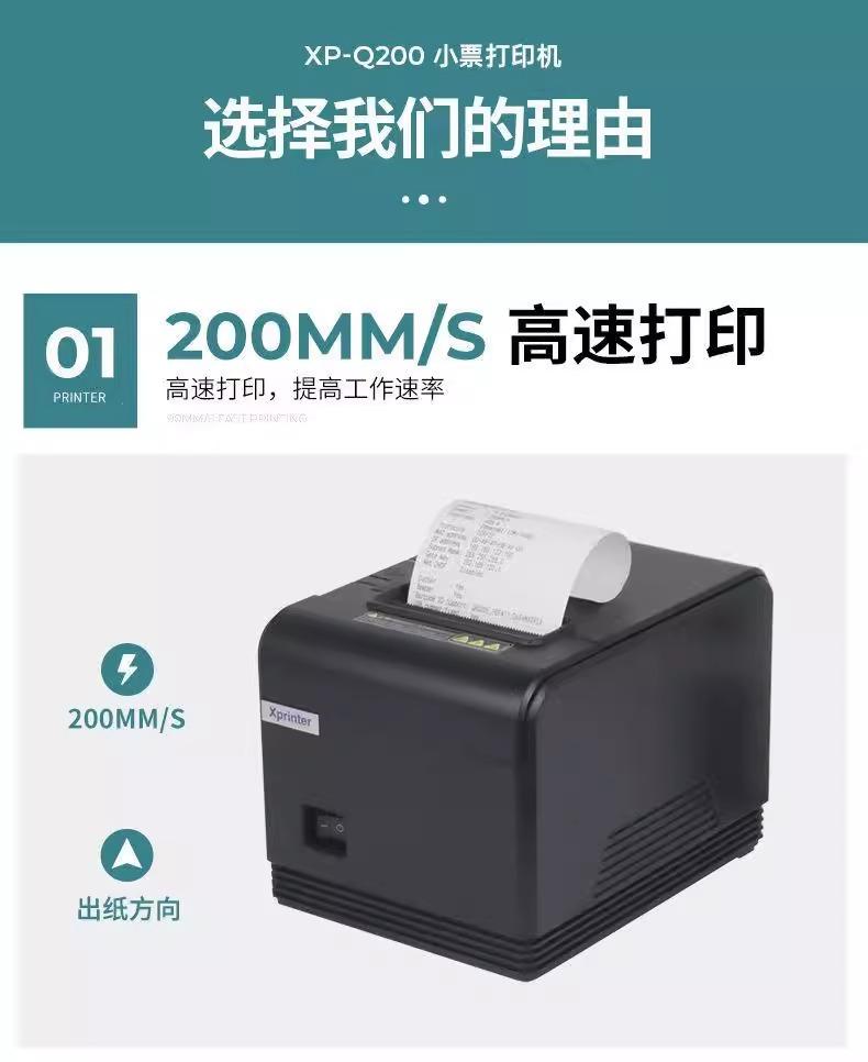 Impresora térmica de billetes pequeños Xinye XP-Q200II Puerto de red Puerto paralelo Supermercado Recepción Caja registradora Máquina de recibos Cocina trasera