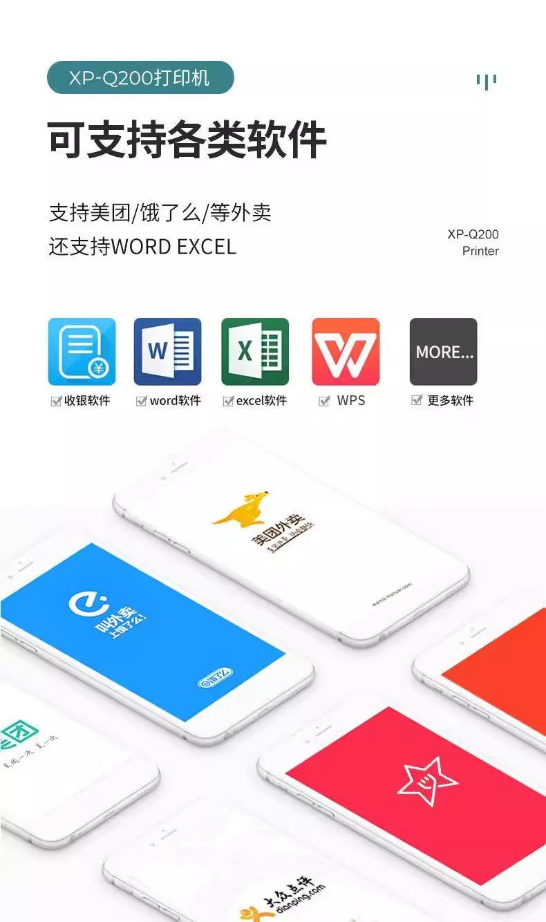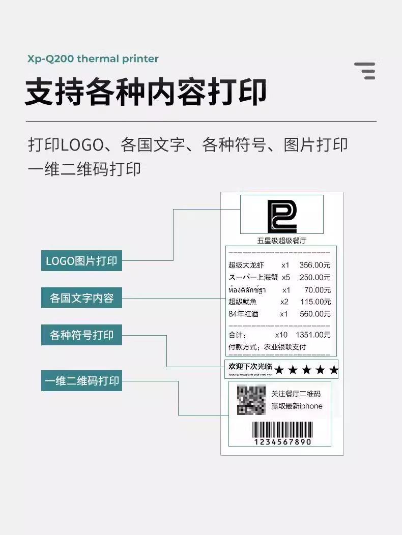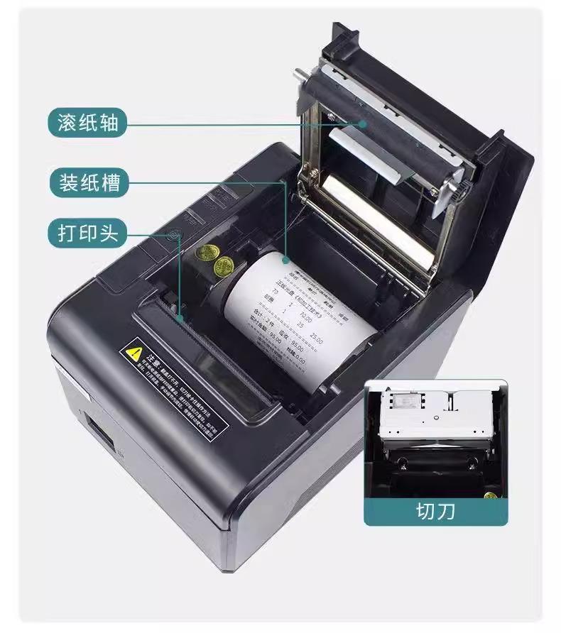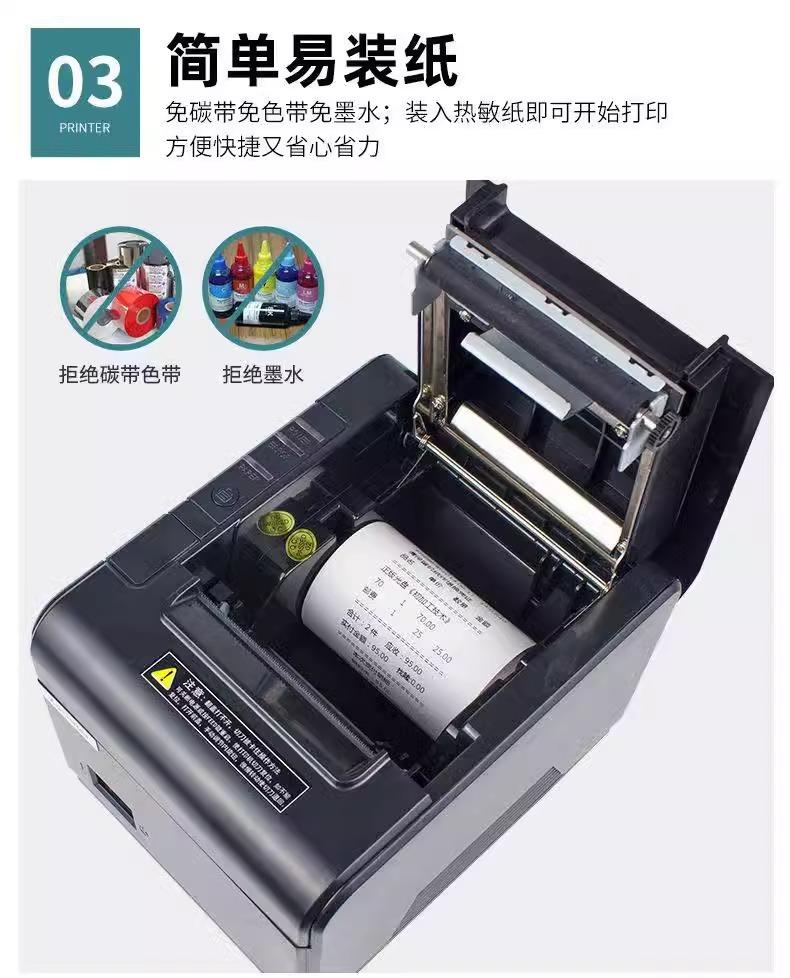 Impresora térmica de billetes pequeños Xinye XP-Q200II Puerto de red Puerto paralelo Supermercado Recepción Caja registradora Máquina de recibos Cocina trasera