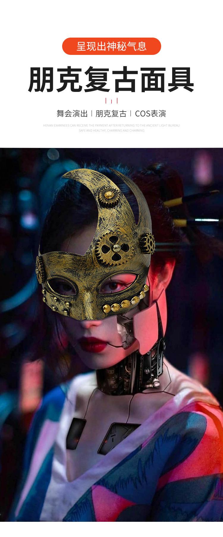 Máscara de media cara para fiesta de mascarada transfronteriza, máscara retro steampunk, máscara facial con equipo