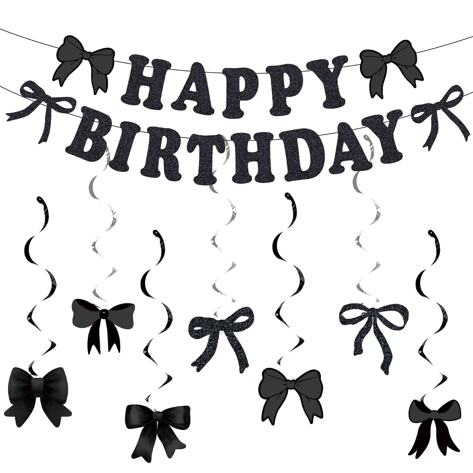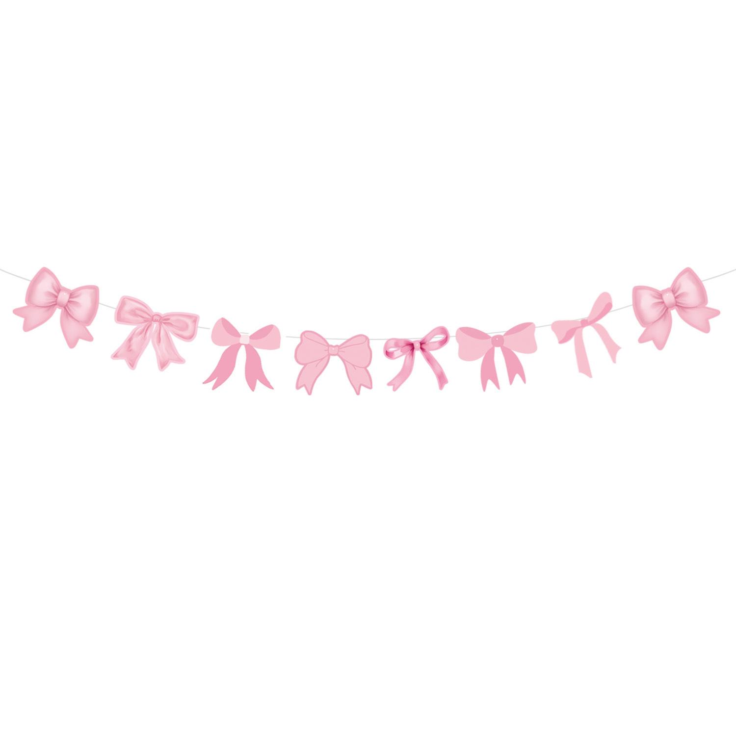 New bow party banner decoration set - bow banner & swirl decorations for girl's birthday party supplies