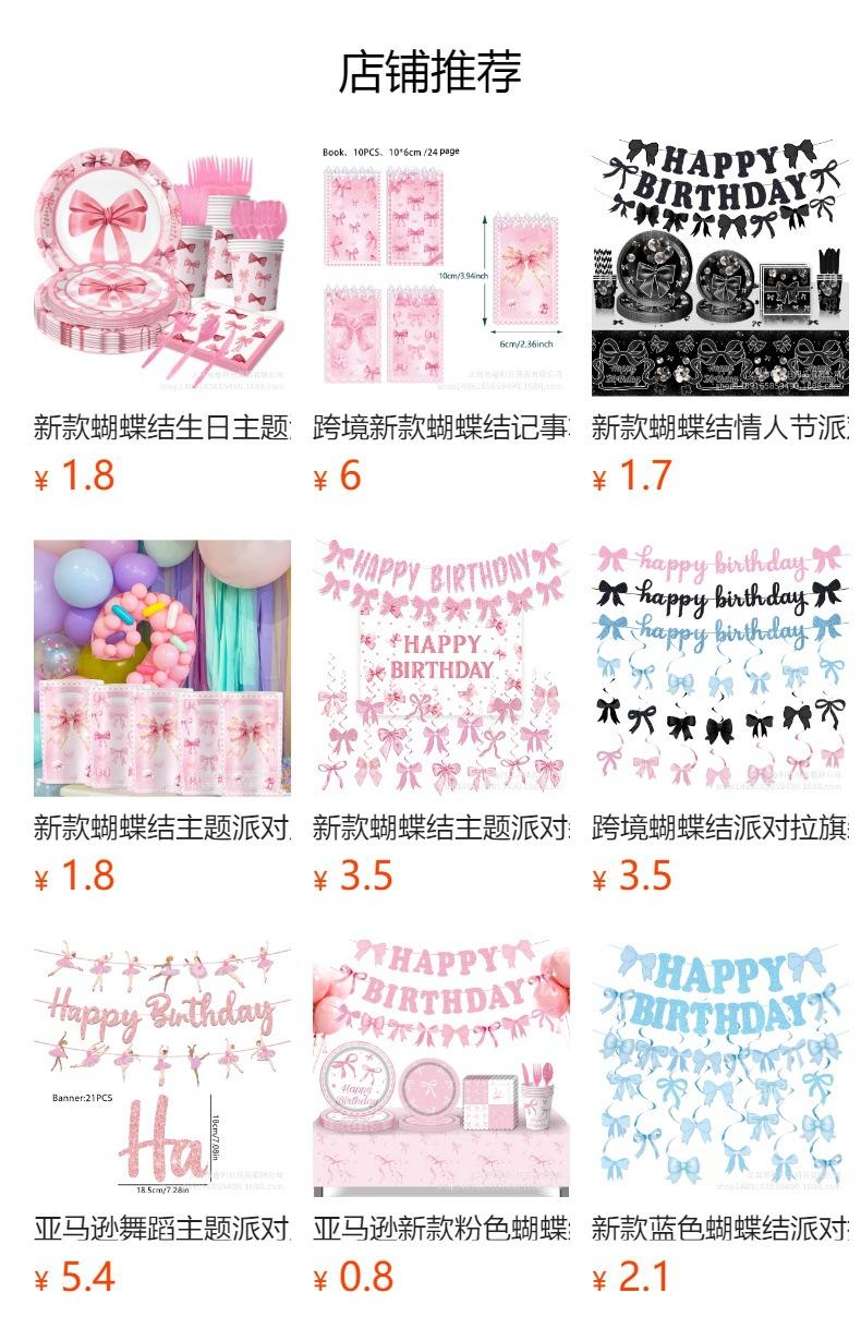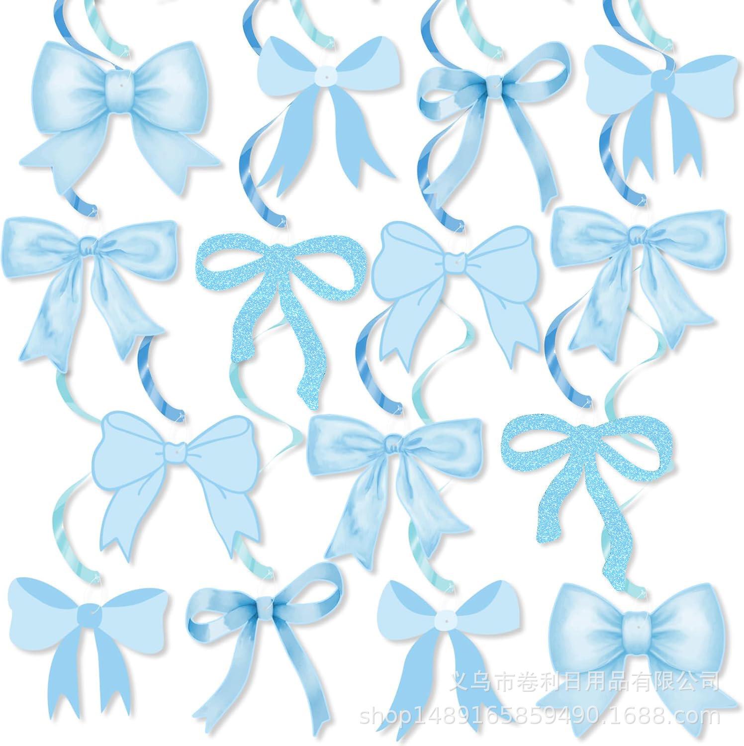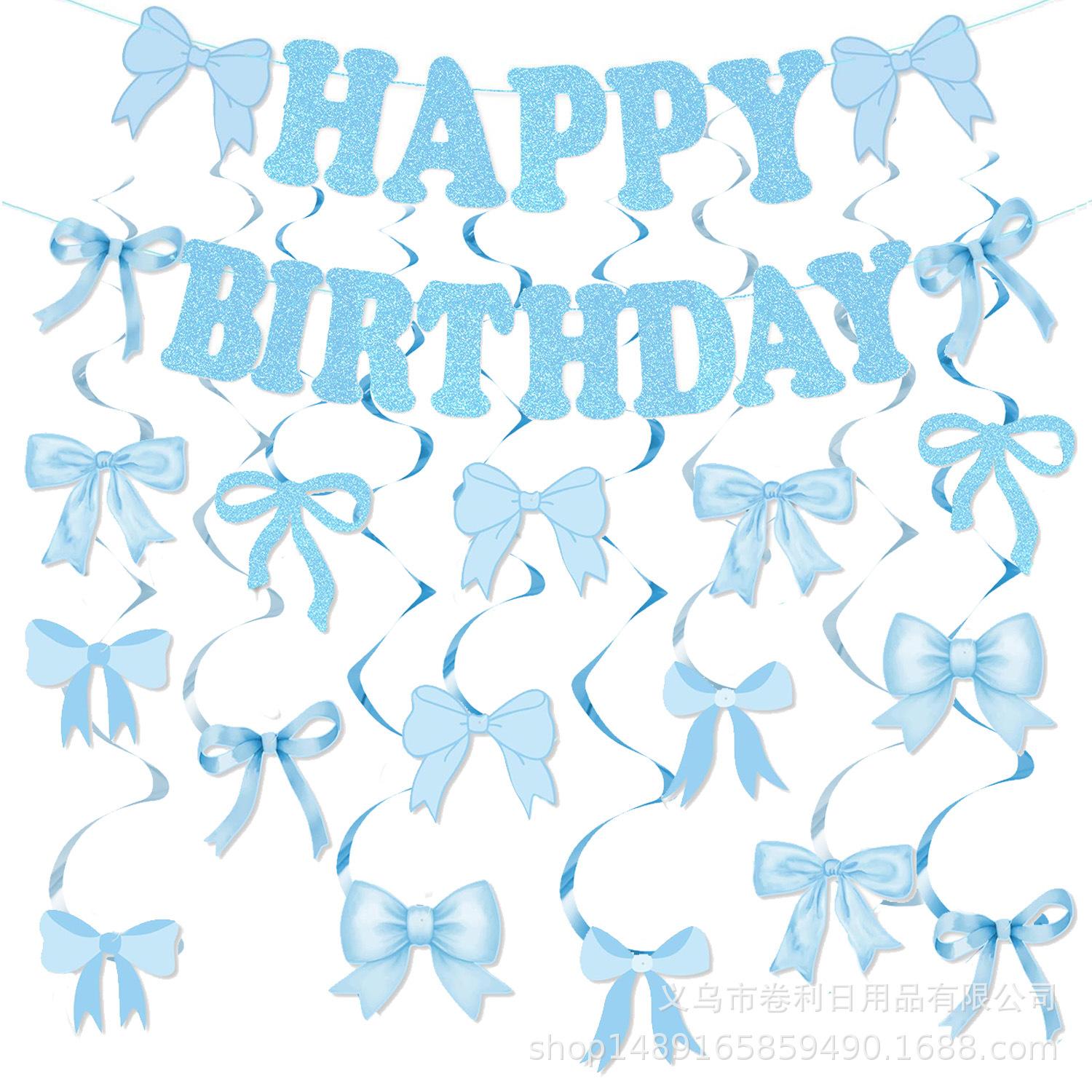 Birthday flag 17pcs, Bow tie flag 8pcs, Blue bow hanging swirl 7pcs, Pink bow flag 17pcs, Pink bow flag 8pcs, ...