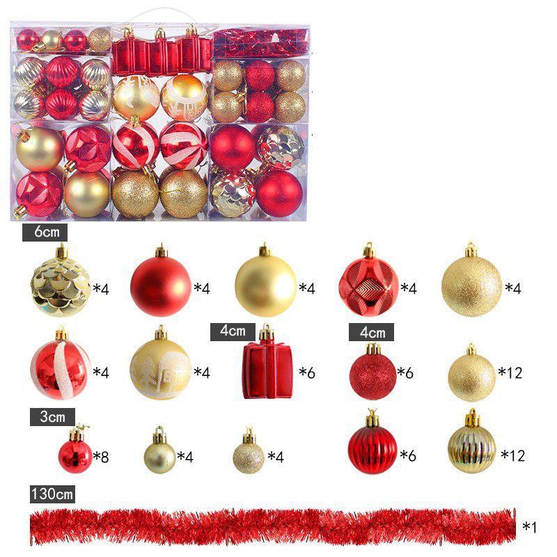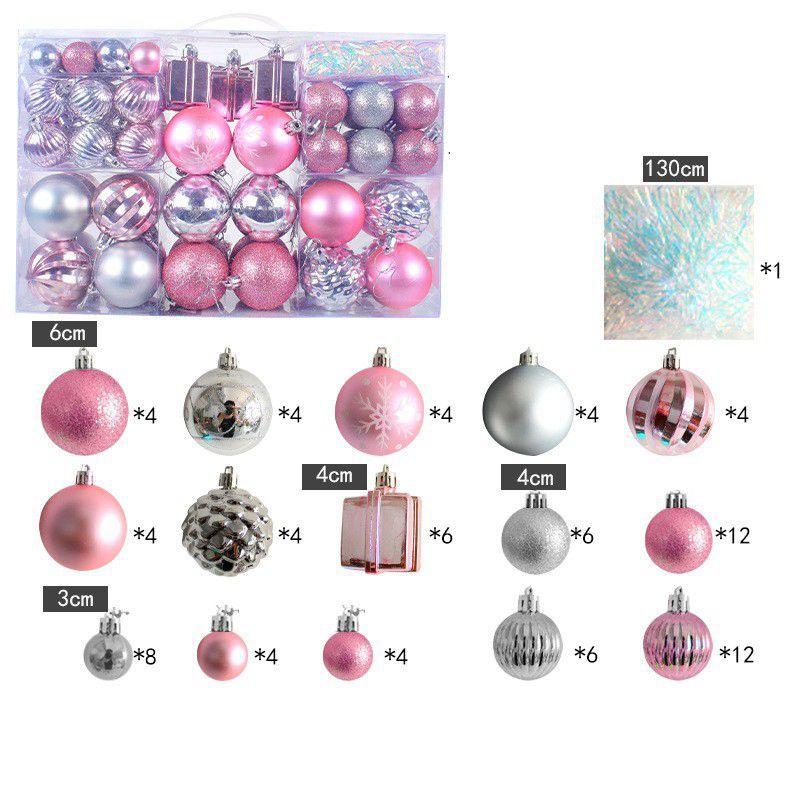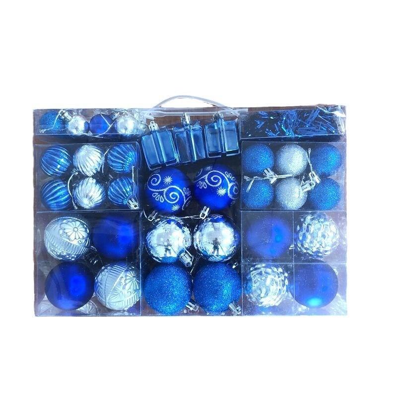 Nuevo transfronterizo fiesta navideña ambiente de hotel decoración navideña colgante de árbol de Navidad bola de plástico galvanizado paquete de 87