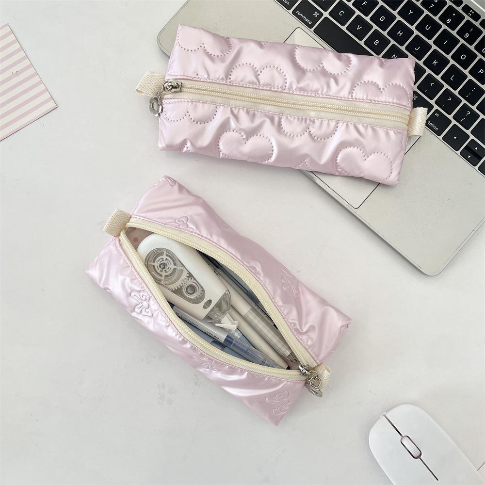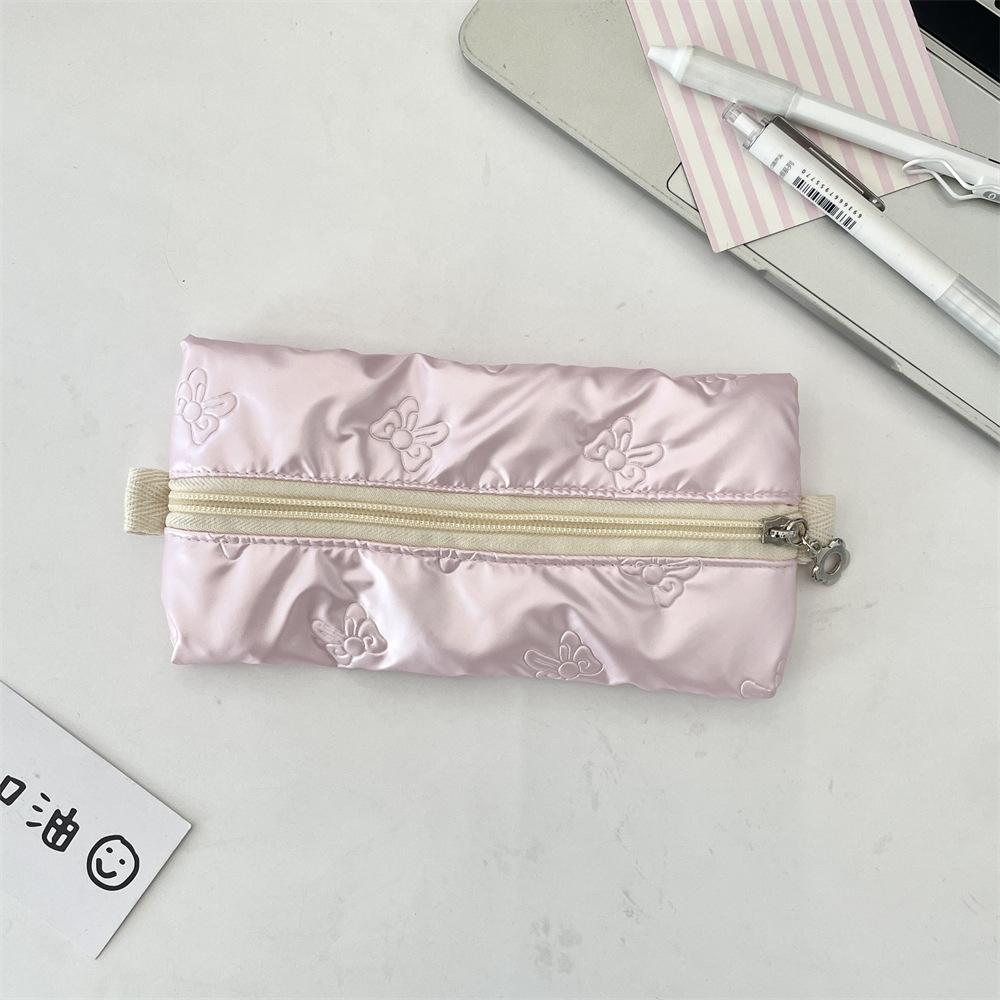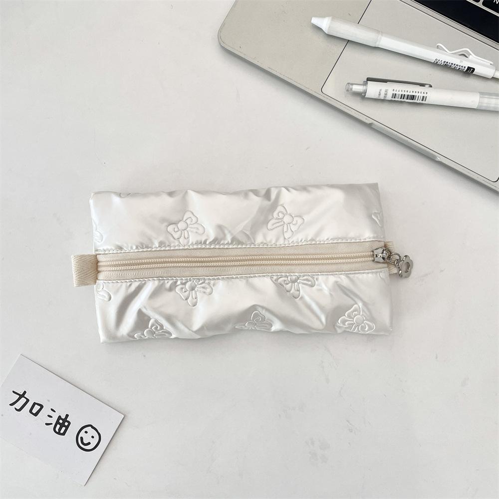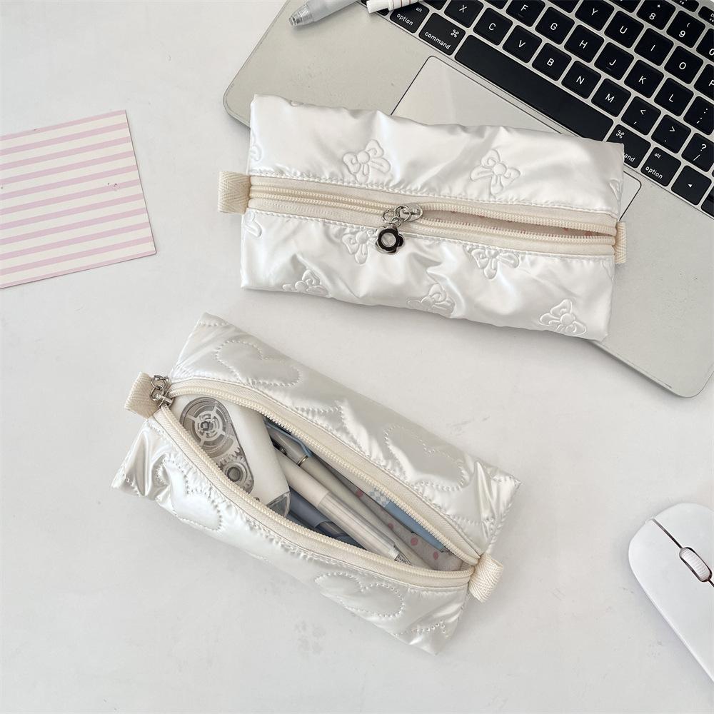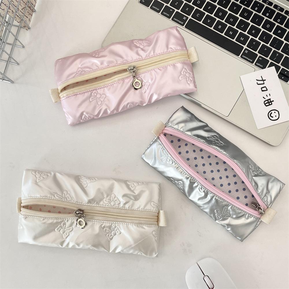 Estuche para lápices de estudiante nuevo de PU 53262, pequeño y fresco, bolsa de almacenamiento de papelería con lazo, estuche para lápices de gran capacidad