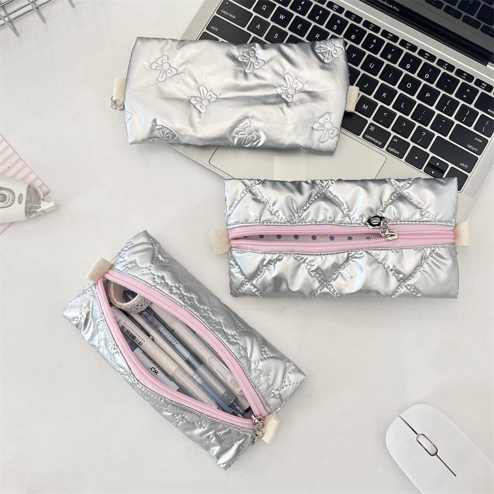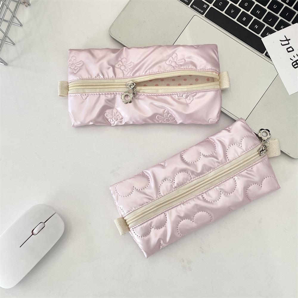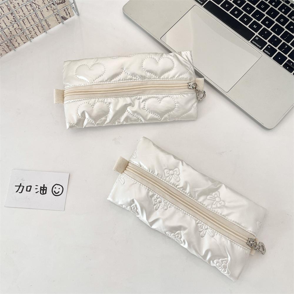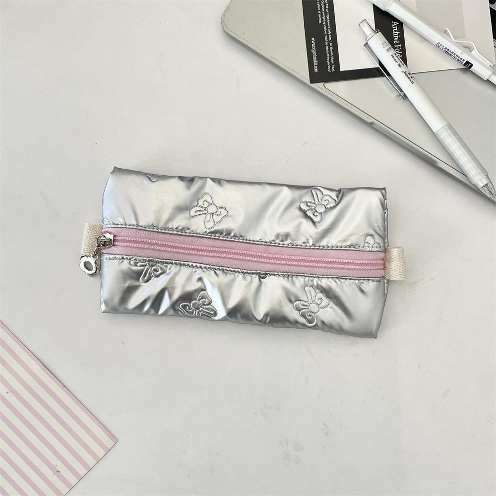 Estuche para lápices de estudiante nuevo de PU 53262, pequeño y fresco, bolsa de almacenamiento de papelería con lazo, estuche para lápices de gran capacidad