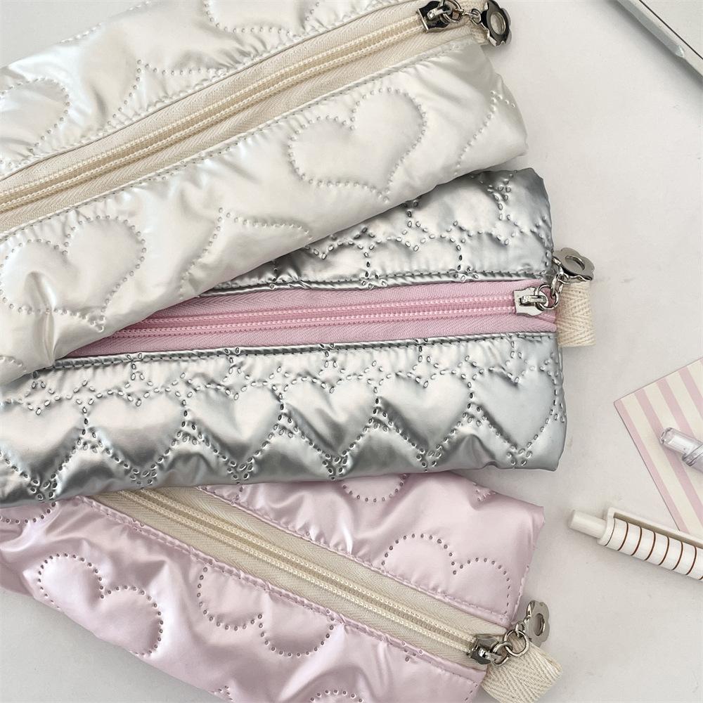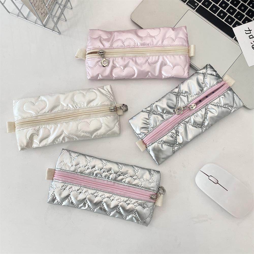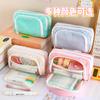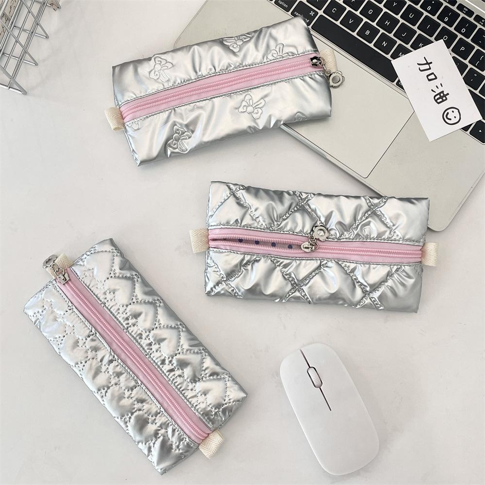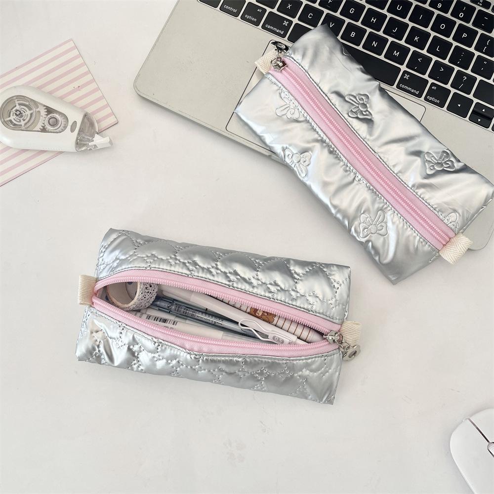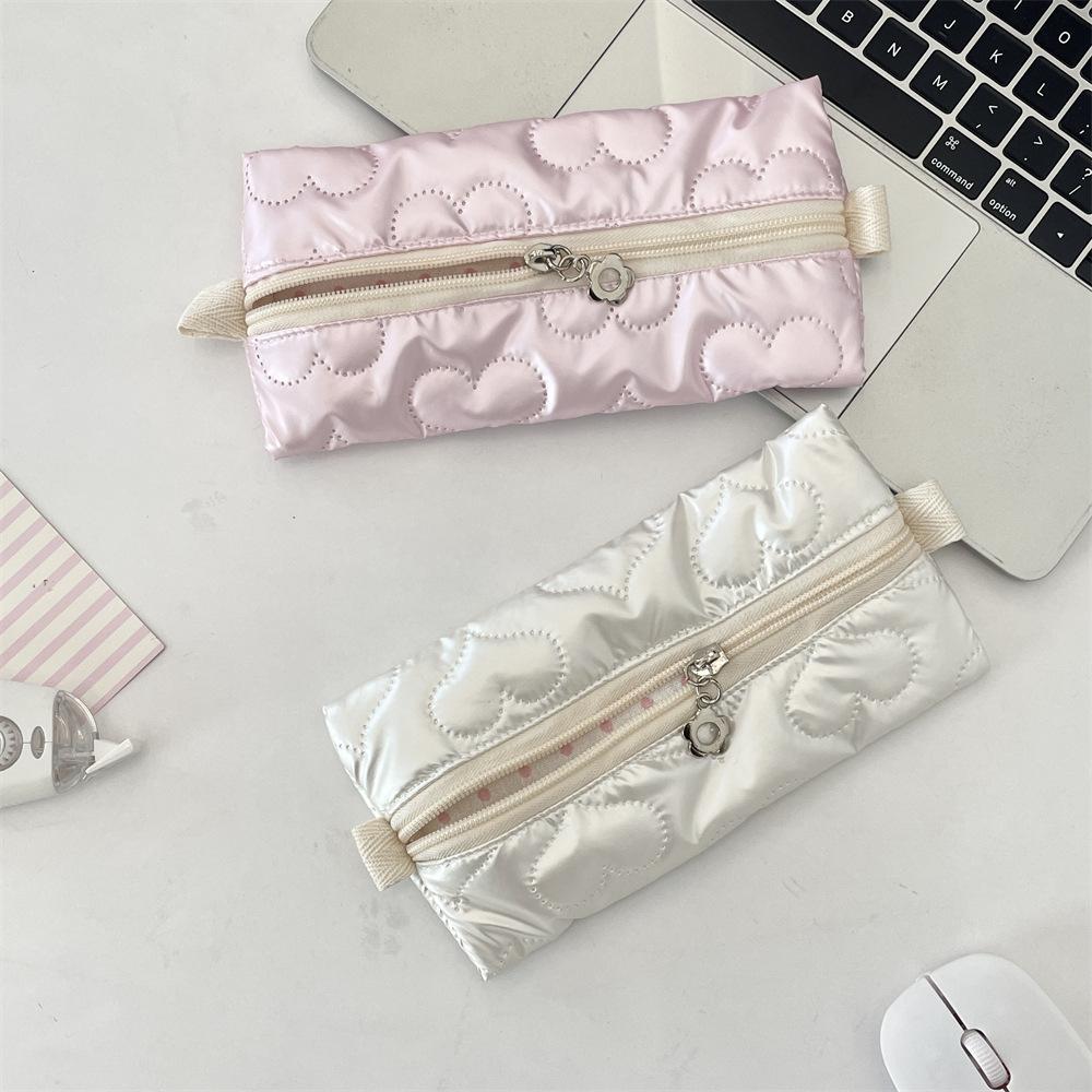 Estuche para lápices de estudiante nuevo de PU 53262, pequeño y fresco, bolsa de almacenamiento de papelería con lazo, estuche para lápices de gran capacidad