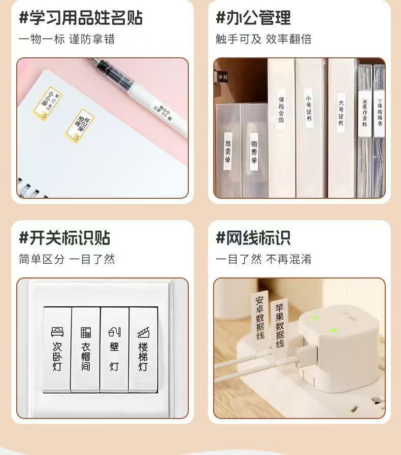 Papel de impresión: 15*30mm(165 hojas), 15*40mm (125 hojas). 15*50mm (105 hojas). Se necesita comprar papel de impresión original para un fácil reemplazo.