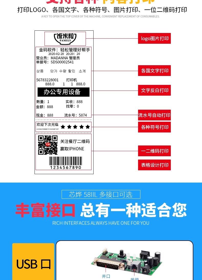 Impresora térmica Core Ye XP-58IIH para catering, recepción, hoteles, supermercados, impresora Bluetooth, sin tinta, facturas.
