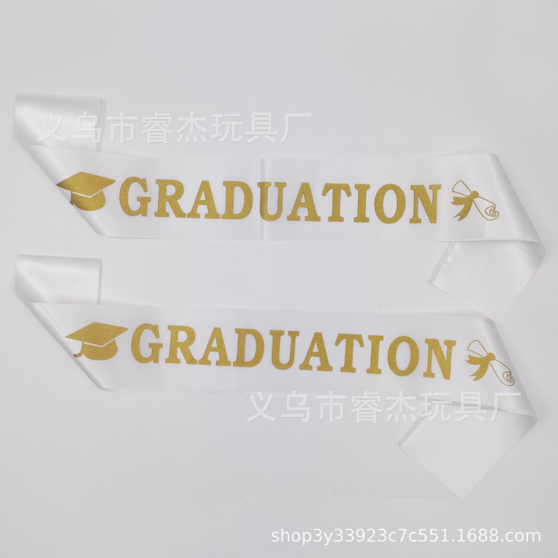 nombre del producto | Fabricantes más vendidos Amazon graduación baile de graduación 2024 Graduado cinturón de etiqueta tela de satén cinta estampada en caliente correa para el hombro |