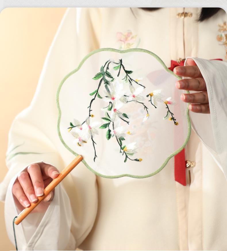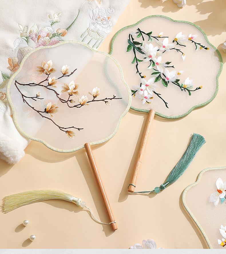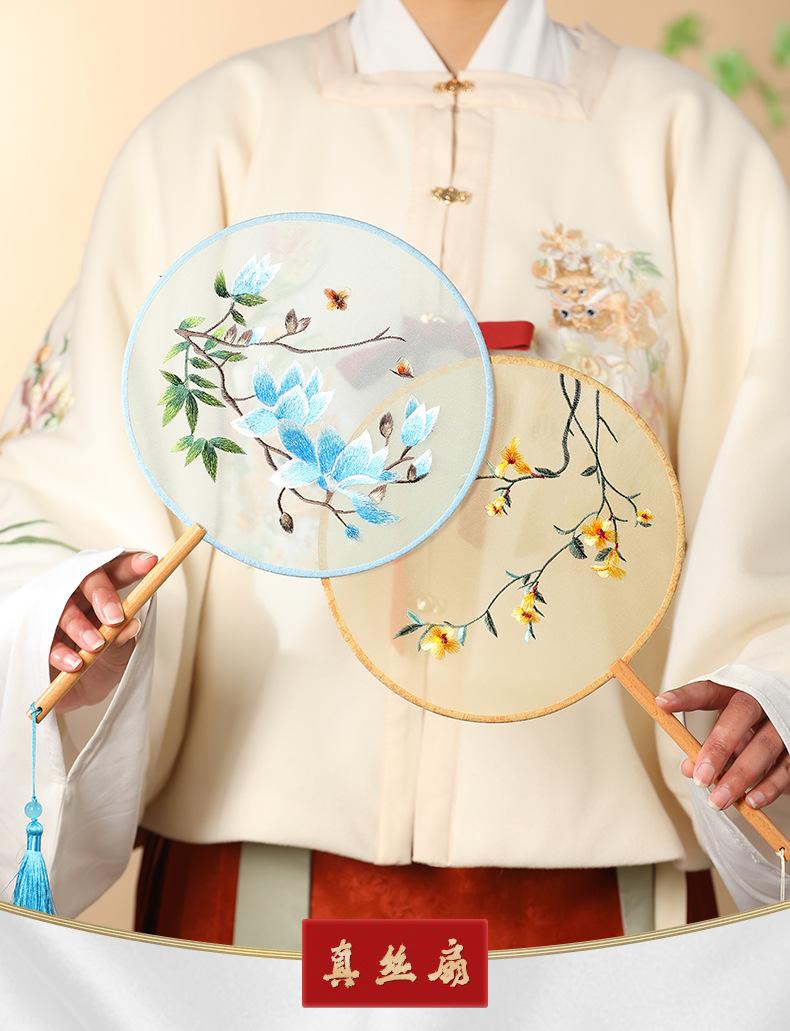Abanico redondo bordado antiguo semitransparente, abanico de baile infantil de estilo chino, ropa china, abanico de doble cara bordado Su, accesorios para fotos