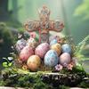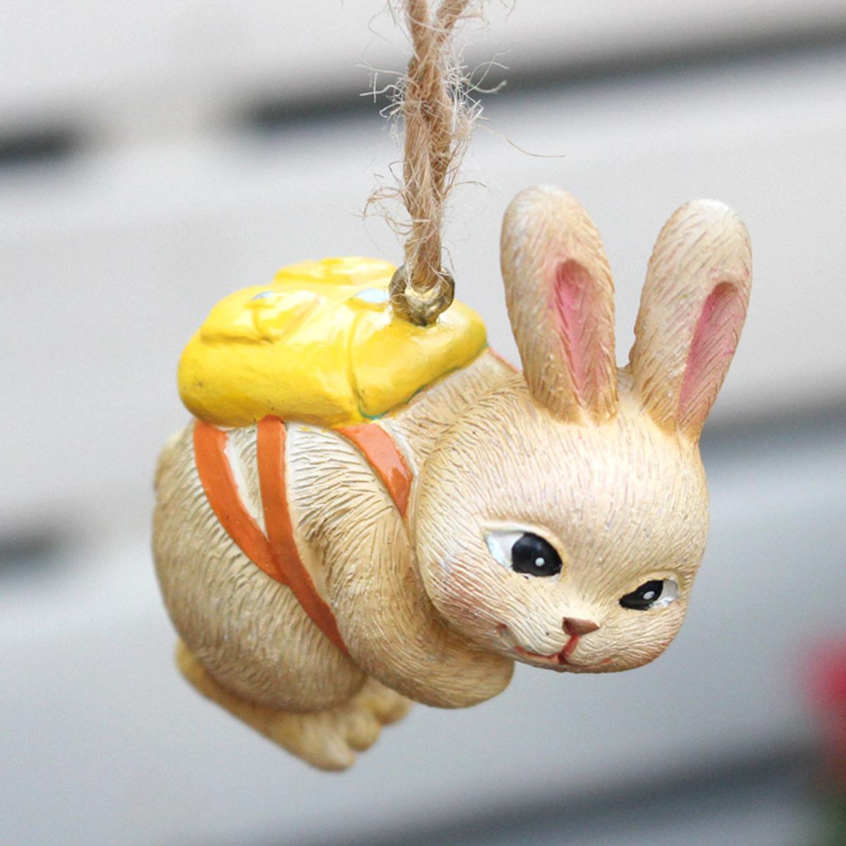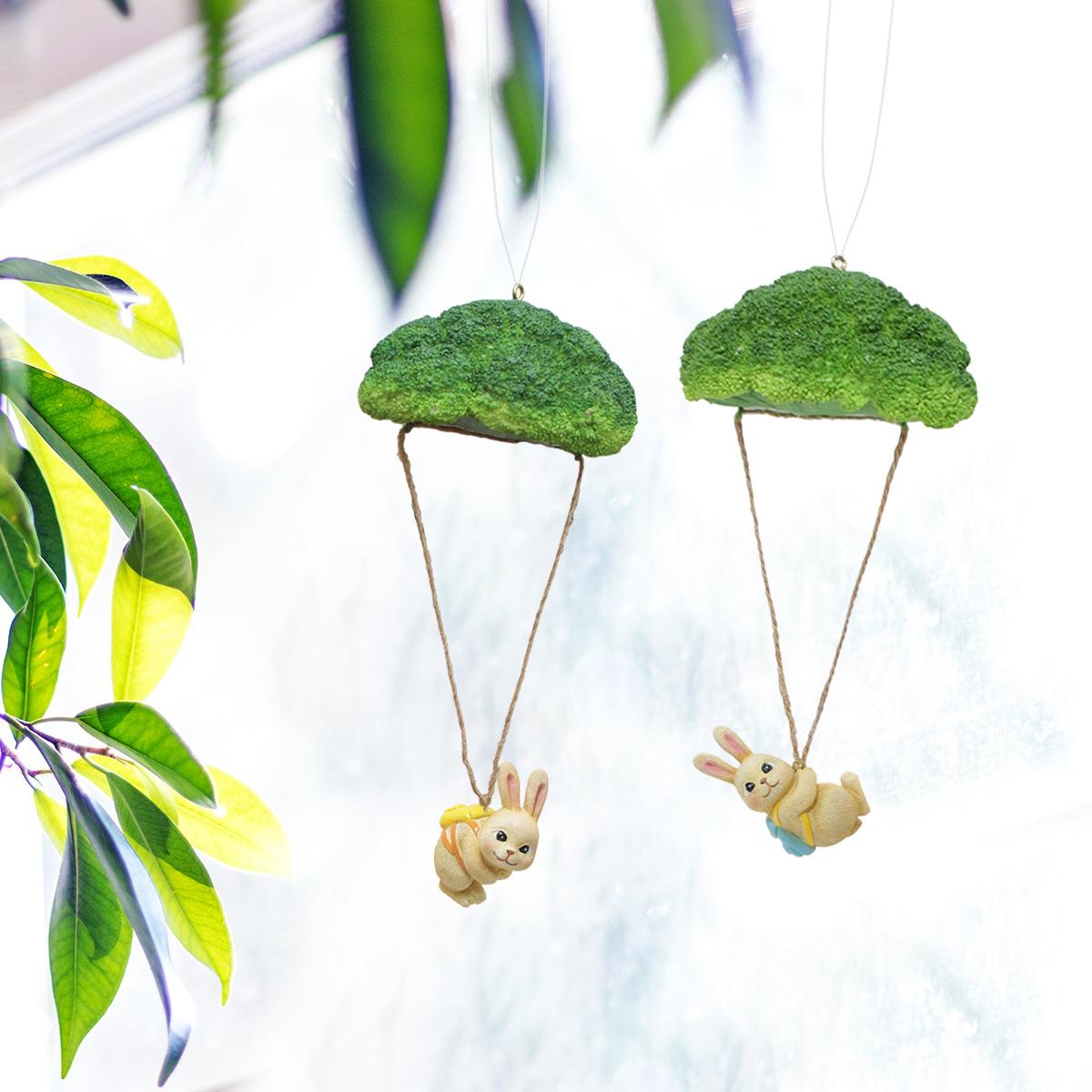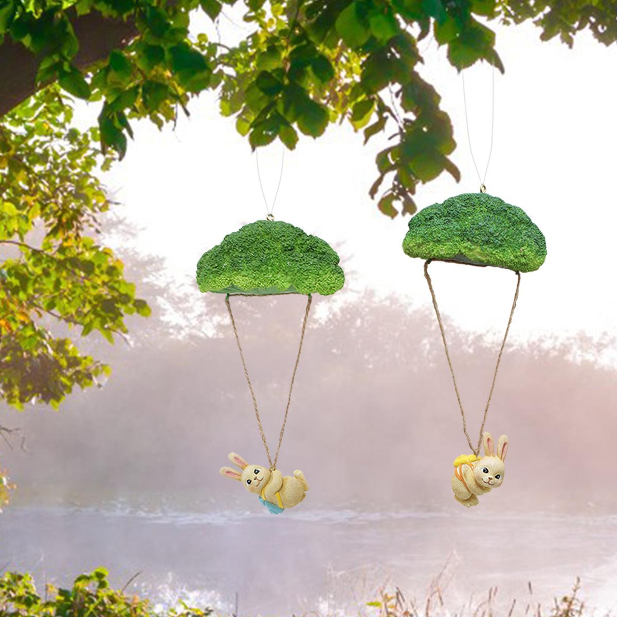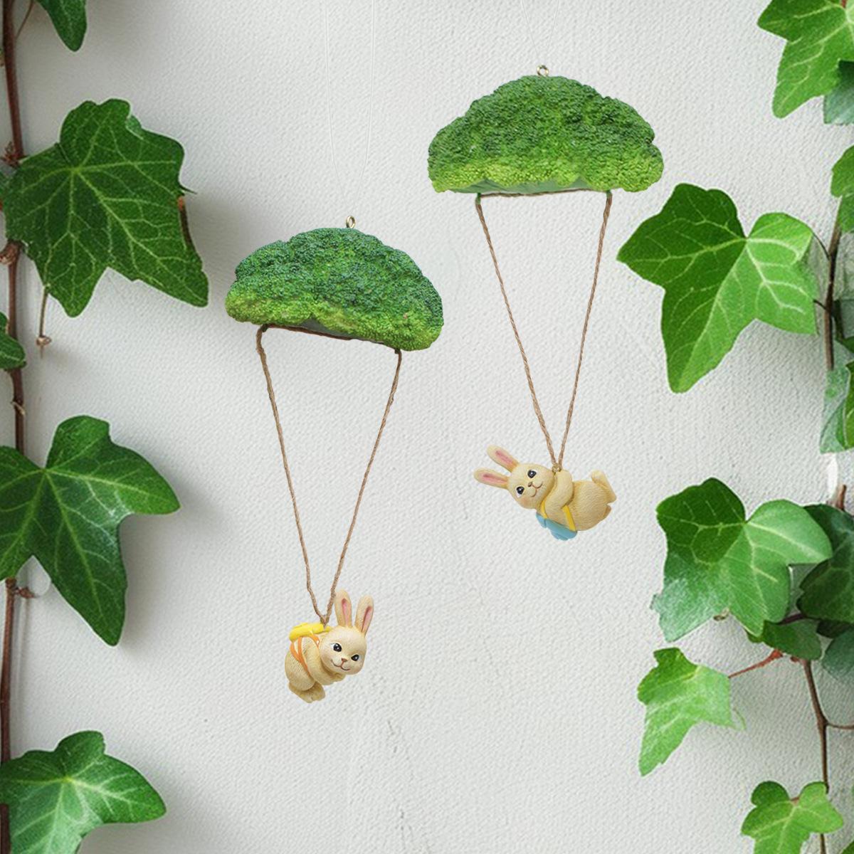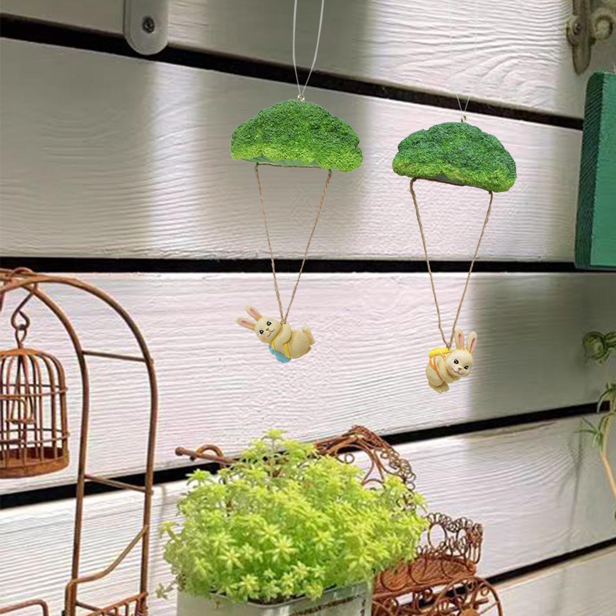Nuevo producto transfronterizo: conejo paracaídas de resina con flores azules, ideal para decorar paredes de patios exteriores, decoraciones de Pascua para el hogar.