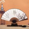 Abanico plegable de estilo chino abanico artístico liso abanico plegable de hueso calado negro fabricante de abanicos plegables haciendo papel Xuan rociado en oro abanico para hombre