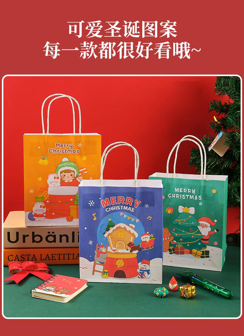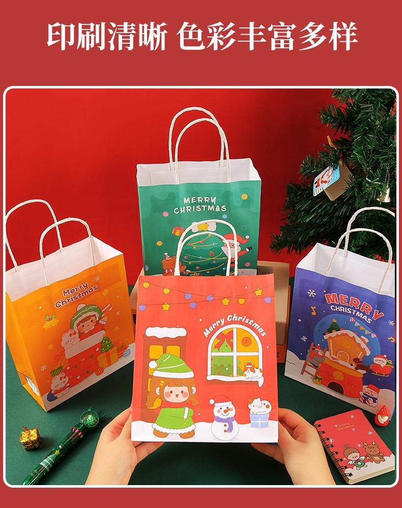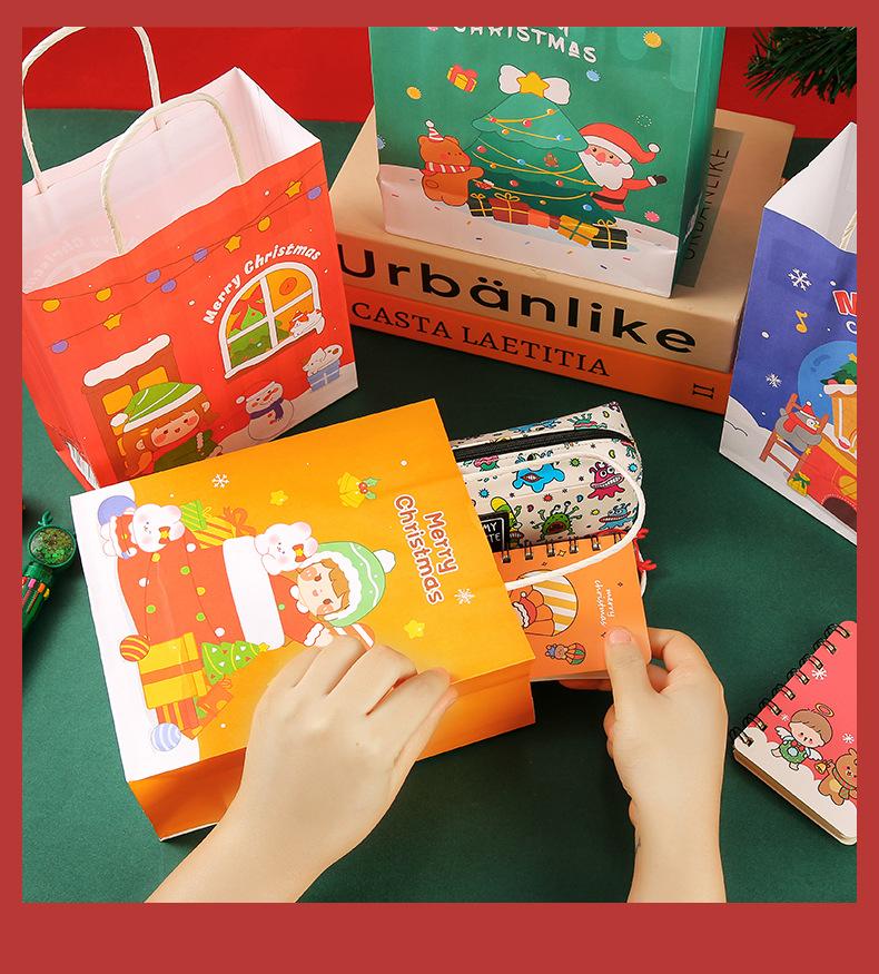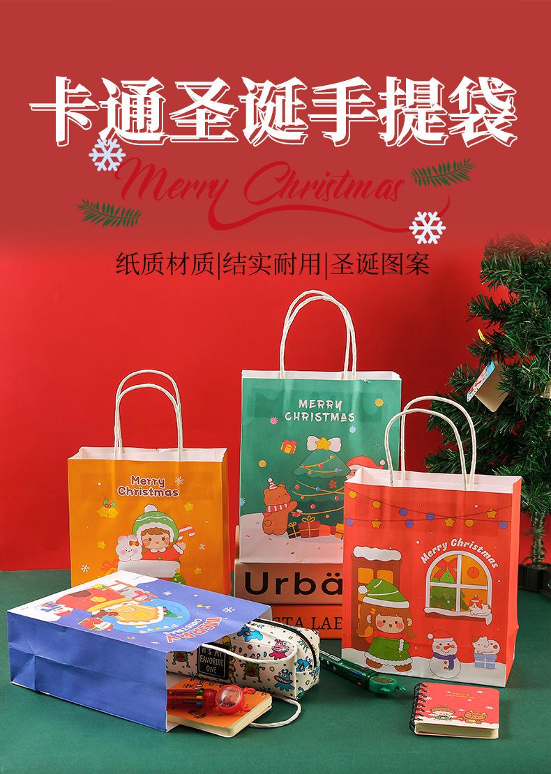 Bolsa de papel para regalo de Navidad al por mayor, bolsa de regalo navideña con dibujos animados, bolsa de regalo para dulces, bolso de mano.