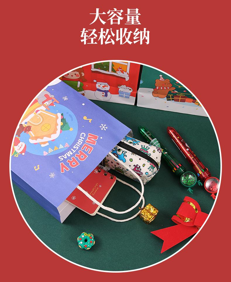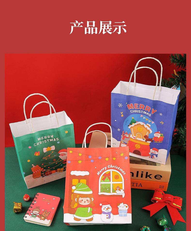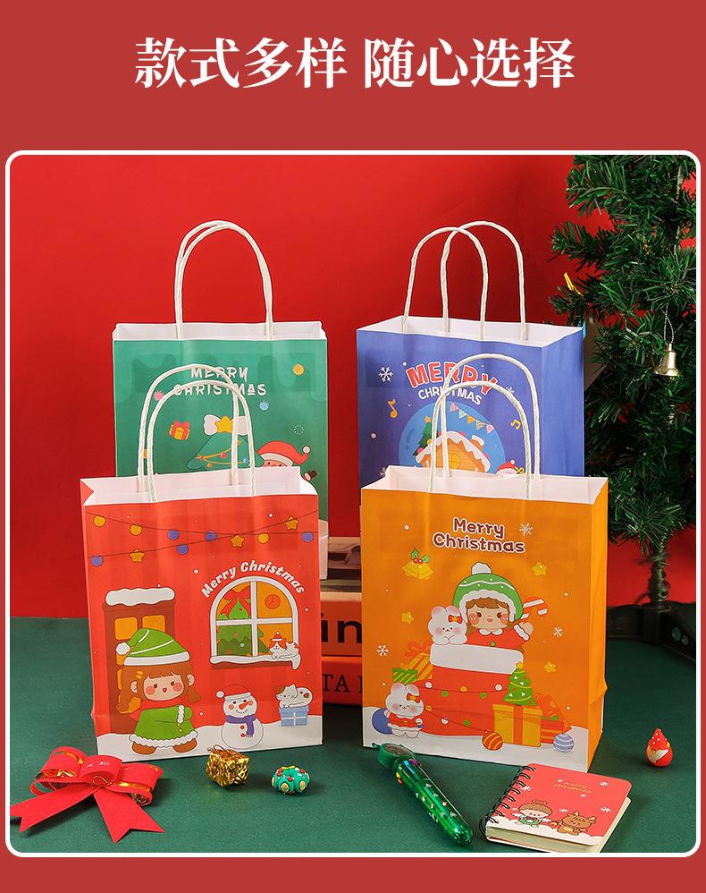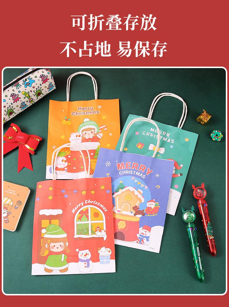 Bolsa de papel para regalo de Navidad al por mayor, bolsa de regalo navideña con dibujos animados, bolsa de regalo para dulces, bolso de mano.
