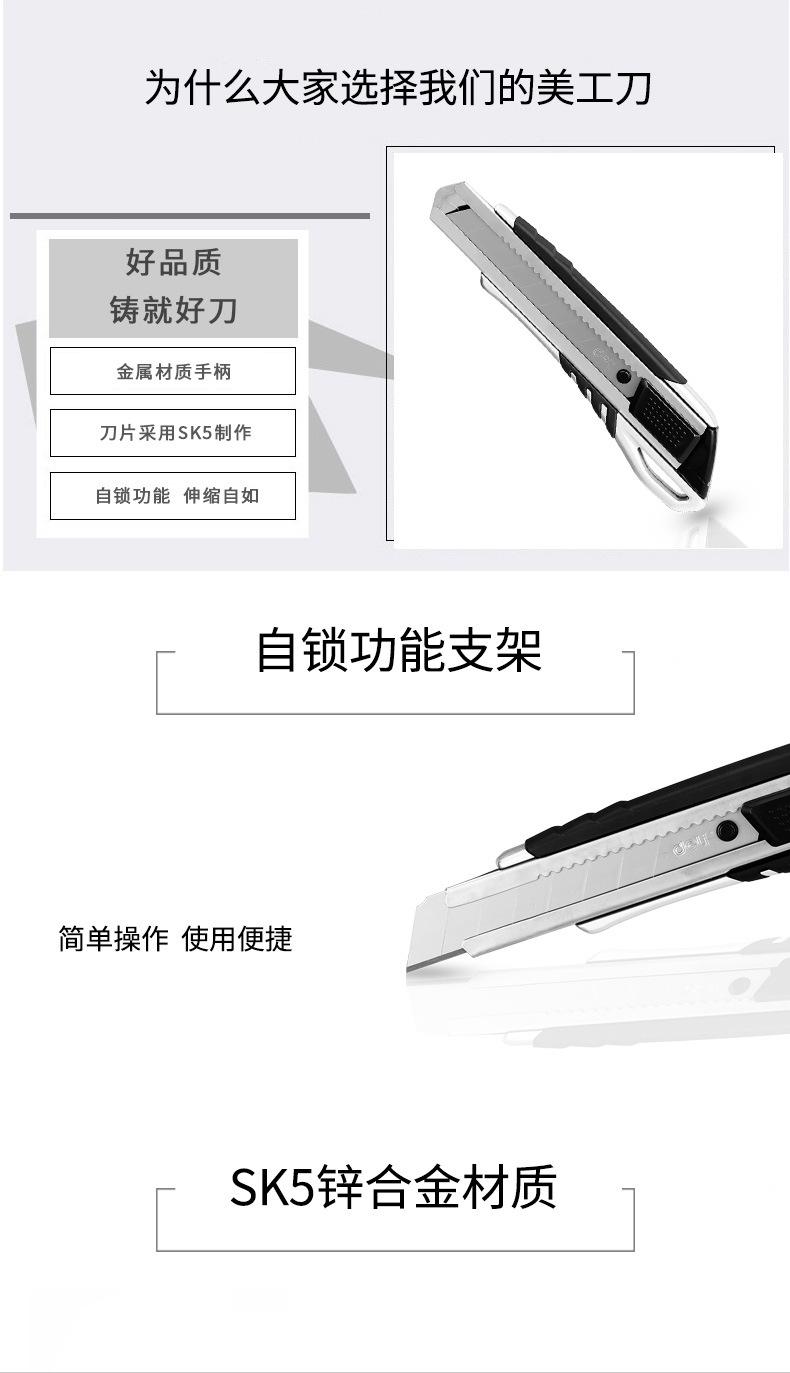 Cuchillo de arte Deli 2057, cuchillo industrial grande, cuchillo para papel, cuchillo de aleación de zinc, cuchillo afilado para cortar metal, pegamento