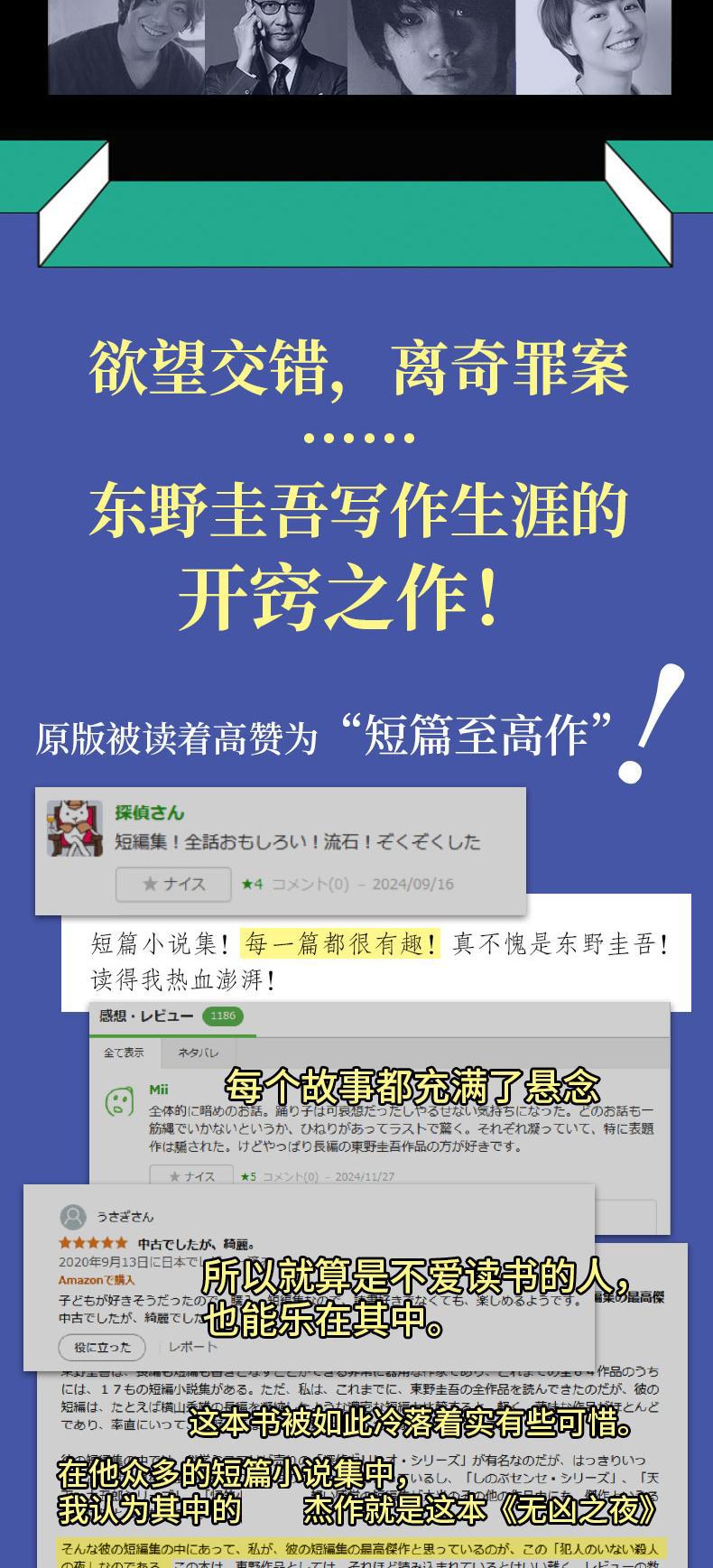 Keigo Higashino es un escritor japonés contemporáneo, especializado en ciencias, que se ha dedicado a la escritura a tiempo completo durante casi 40 años. Su carrera como escritor es estable y productiva, con una producción de entre dos y cuatro novelas de misterio al año. Se esfuerza por posicionarse como un novelista popular, y sus obras gozan de gran popularidad tanto en Japón como en el extranjero. Sus obras, rigurosas y entretenidas, gozan de gran popularidad en la industria cinematográfica y televisiva. Muchas de sus obras han sido adaptadas al cine y al drama, como "White Night Walk", "The Devotion of Suspect X", "Meteor Bond", "Detective Galileo", etc. Esta obra es la obra original del aclamado drama japonés "Keigo Higashino's Suspense Stories".