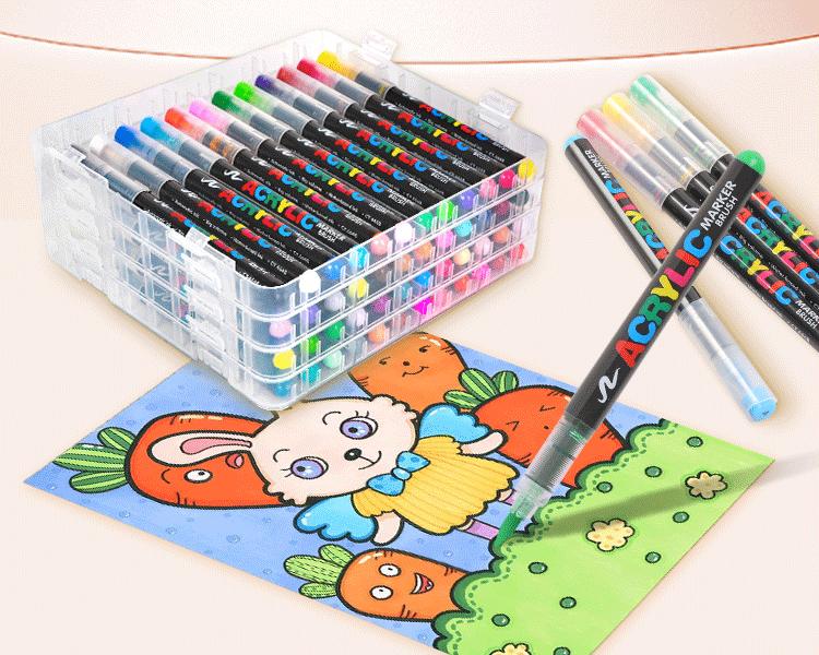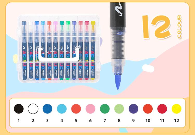 Marcador acrílico líquido recto, punta suave, pincel profesional para grafiti DIY, 24 colores, 48 colores, juego sin prensar