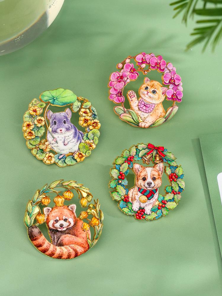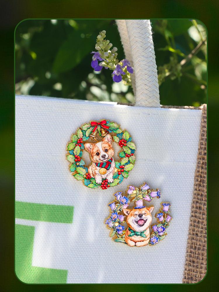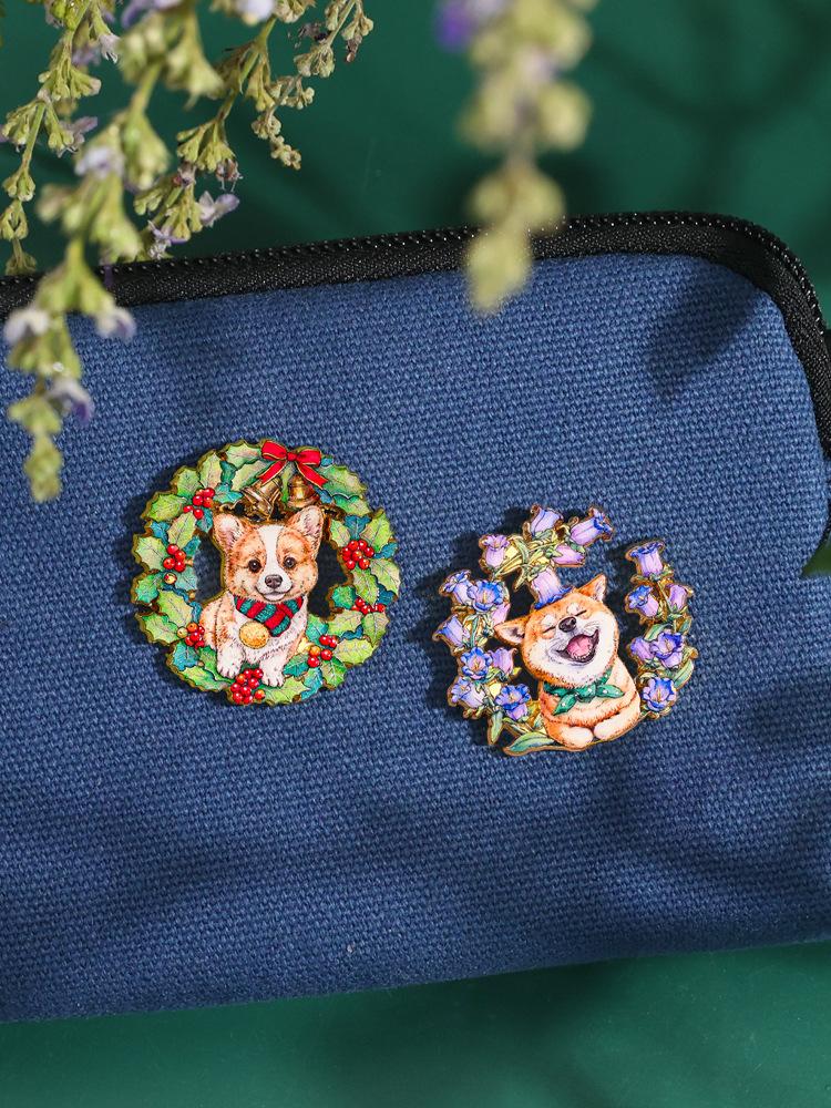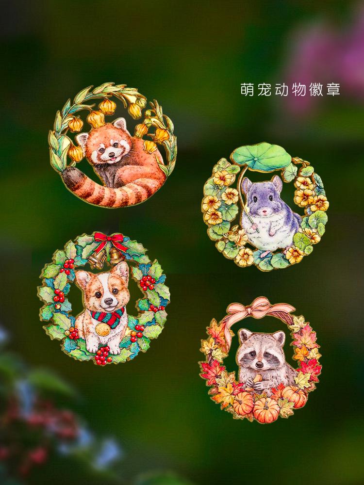 Ar animal badge--shiba inu bellflower, Ar animal badge--corgi and holly, Ar animal badge--totoro and eri, Ar a...