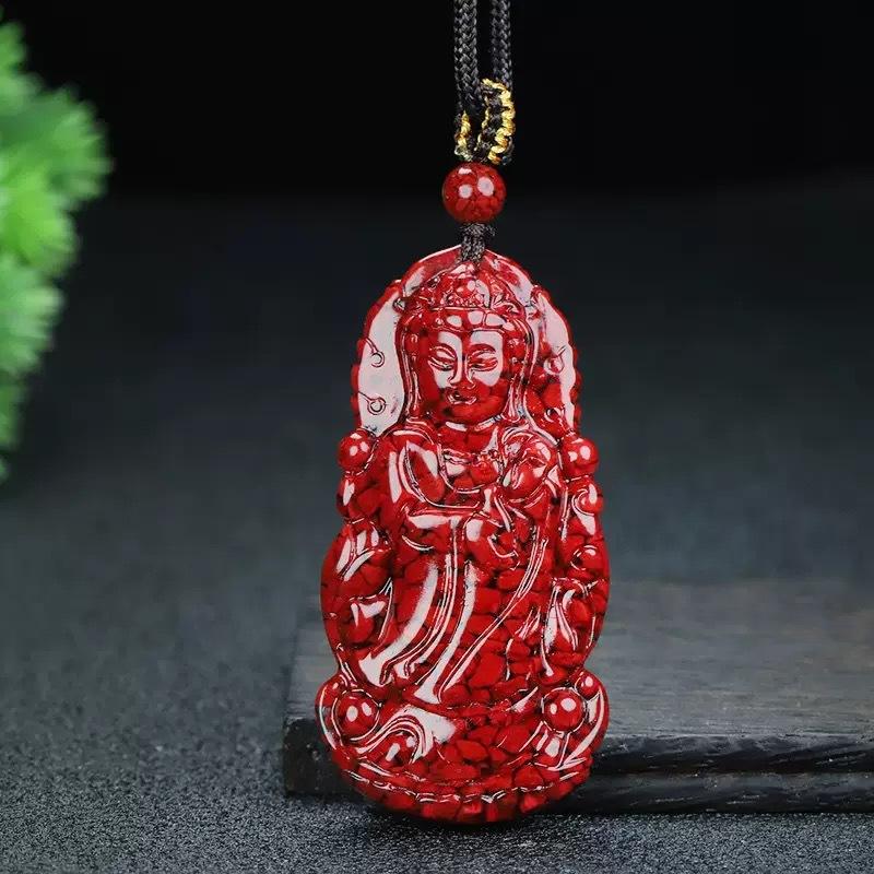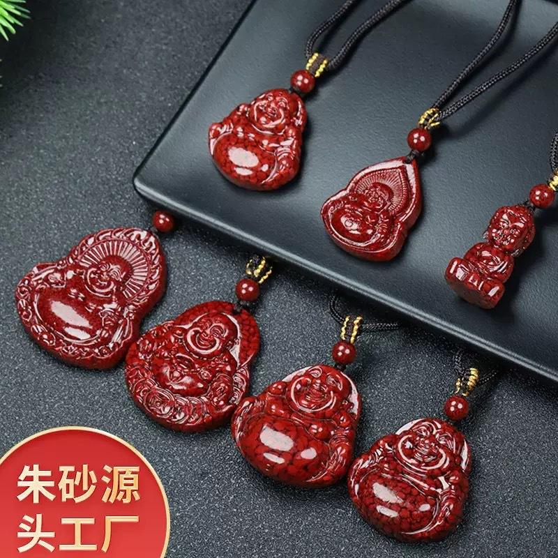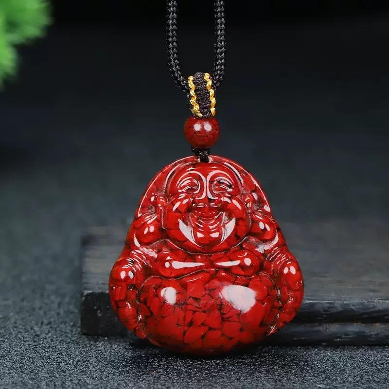 Colgante de Guanyin de Buda Cinabrio con Alto Contenido de Mineral Crudo, Arena Cristalina, Buda Maitreya, Colgante de Guanyin de Buda de Gran Barriga, Arena Granular