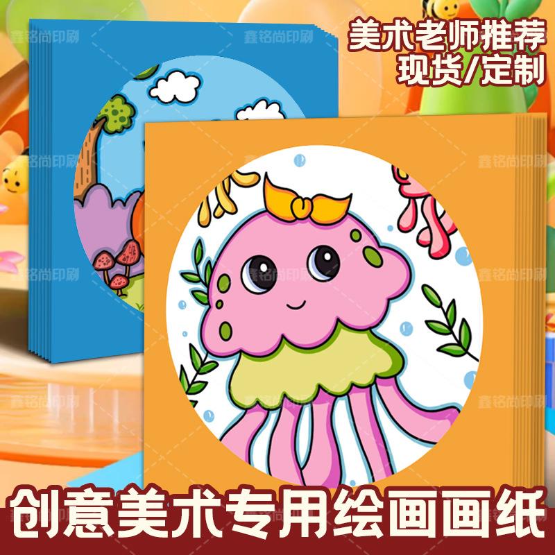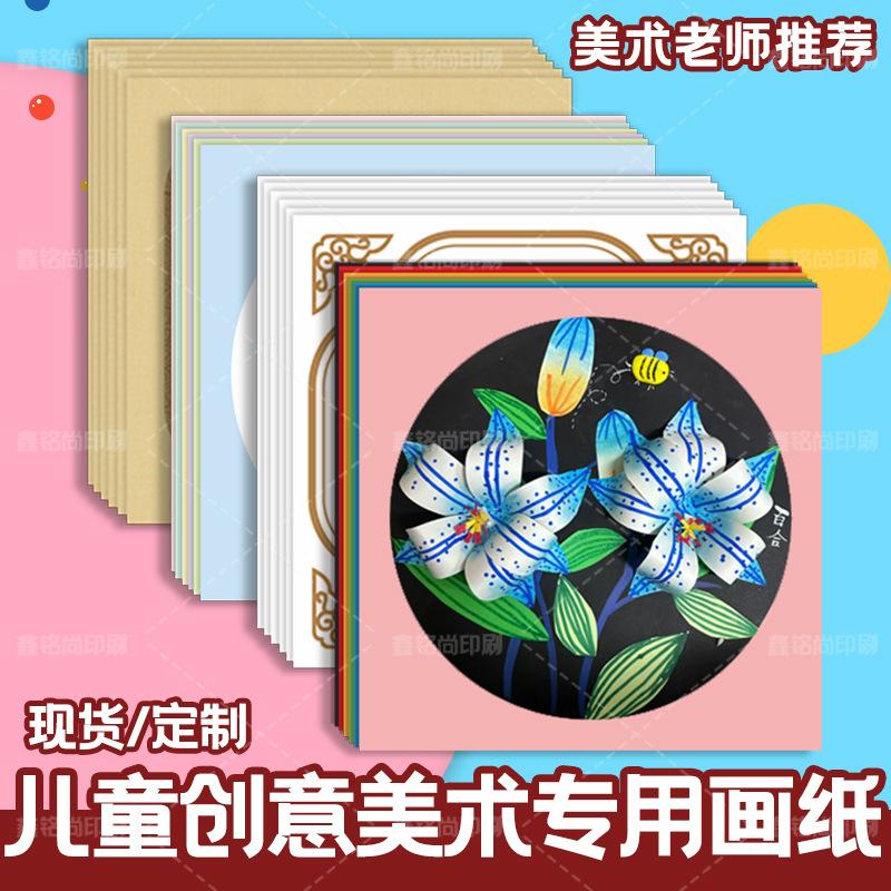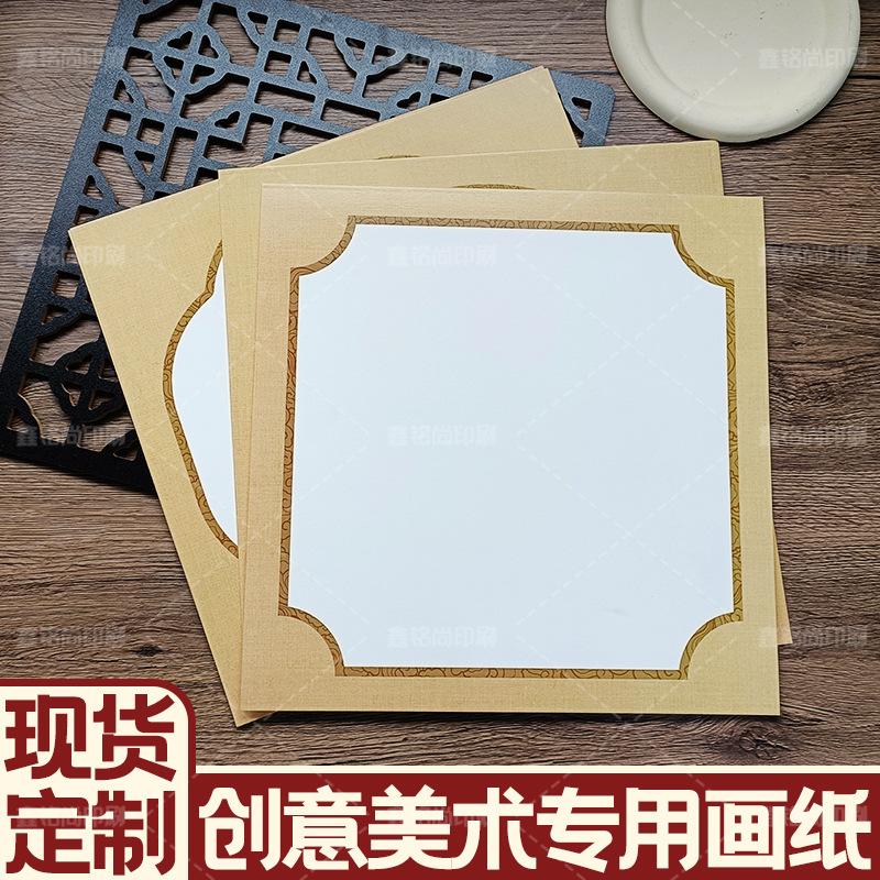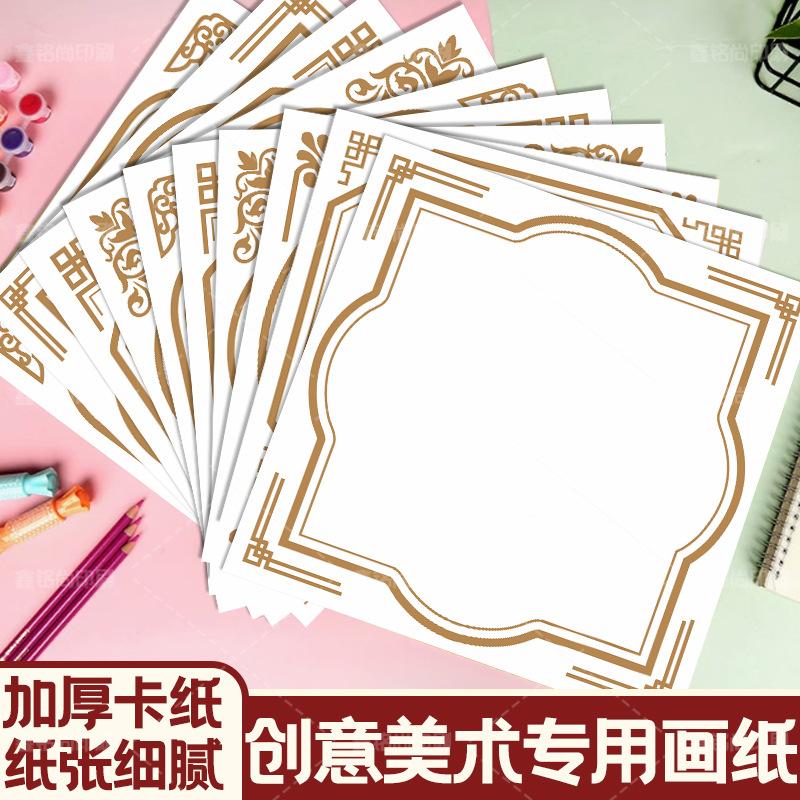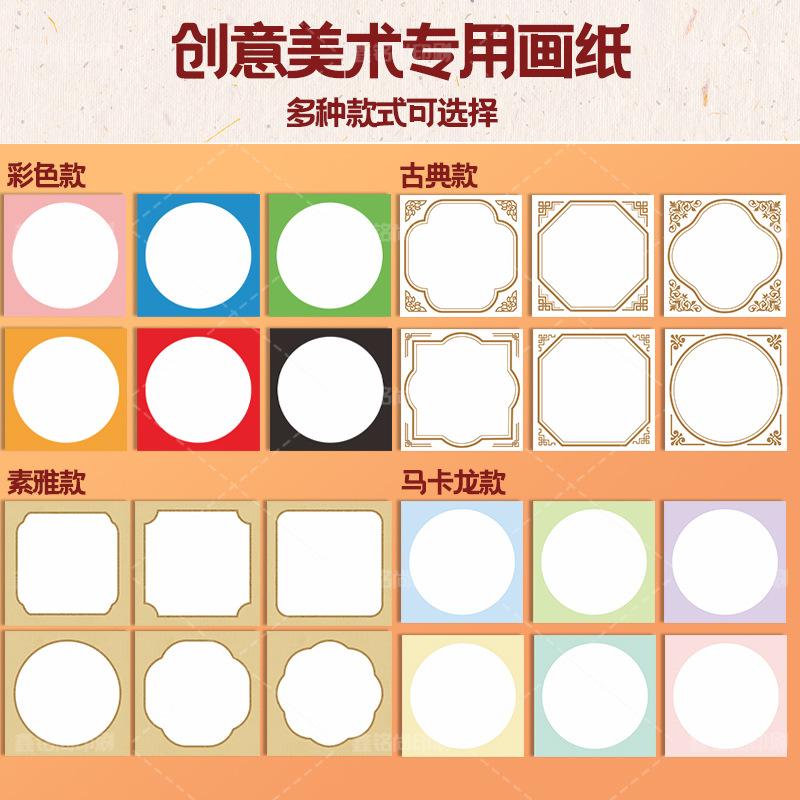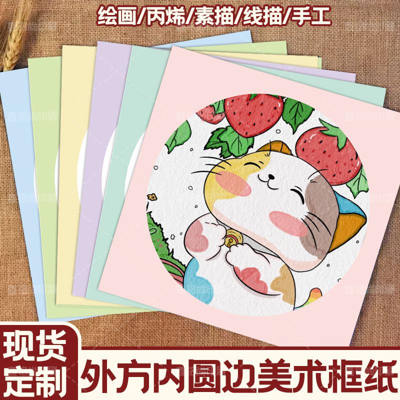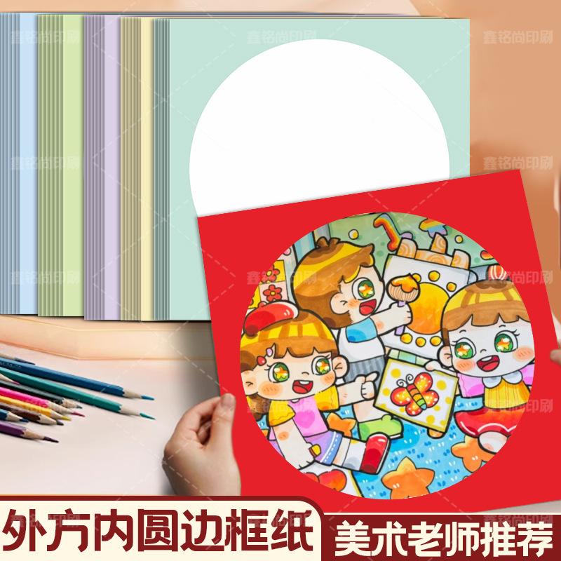 Papel de pintura con círculo interior y cuadrado exterior, papel de pintura con borde hecho a mano con colores creativos personalizados, papel de pintura con crayón y bocetos.