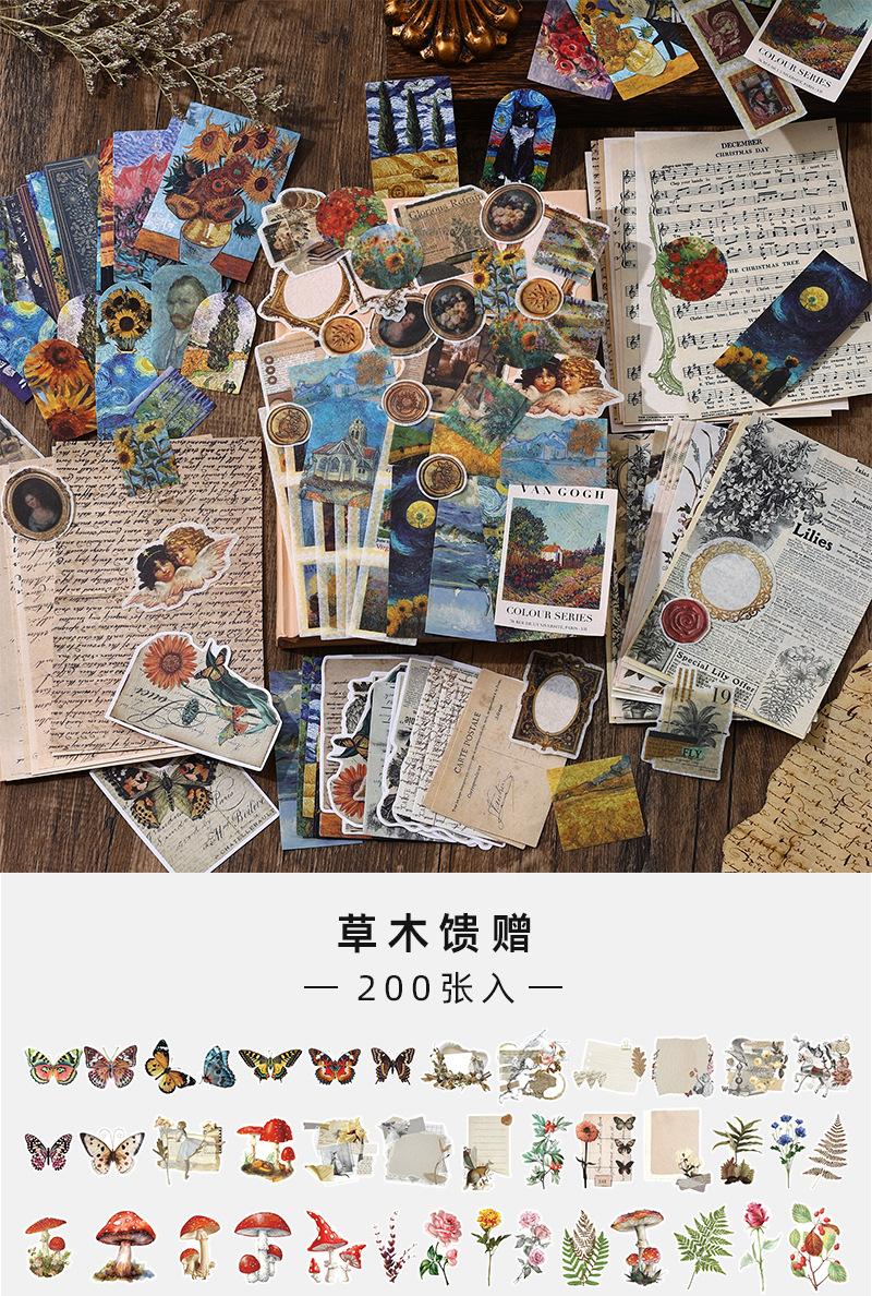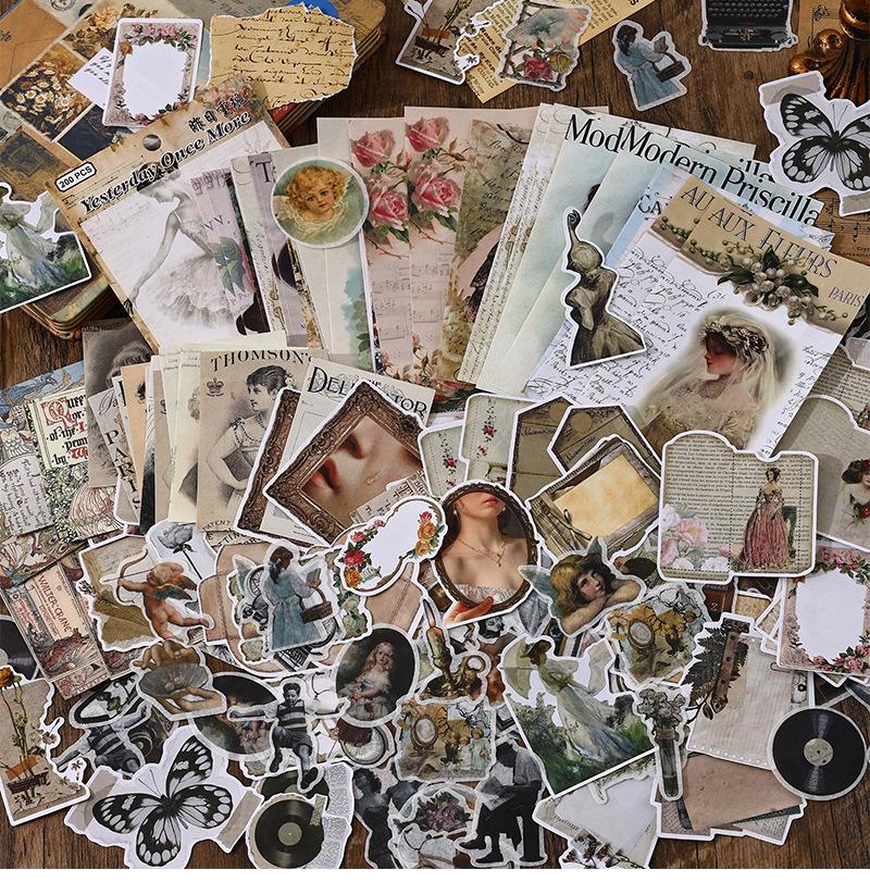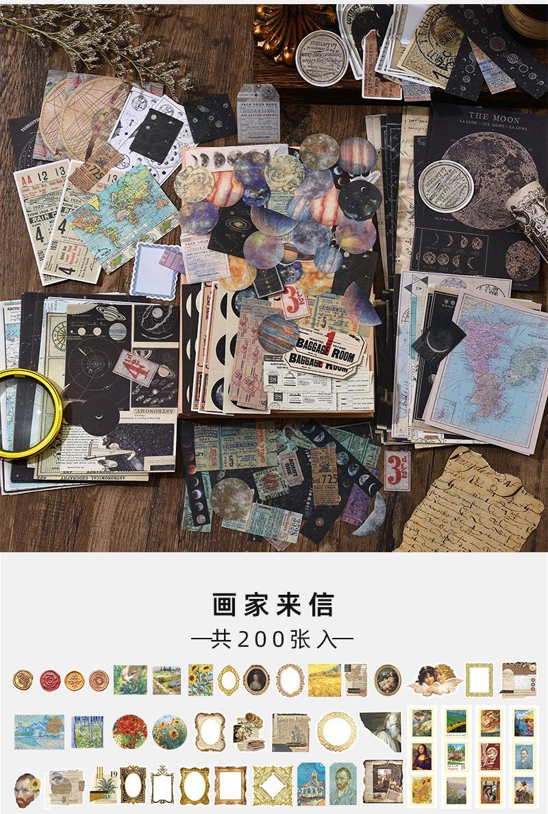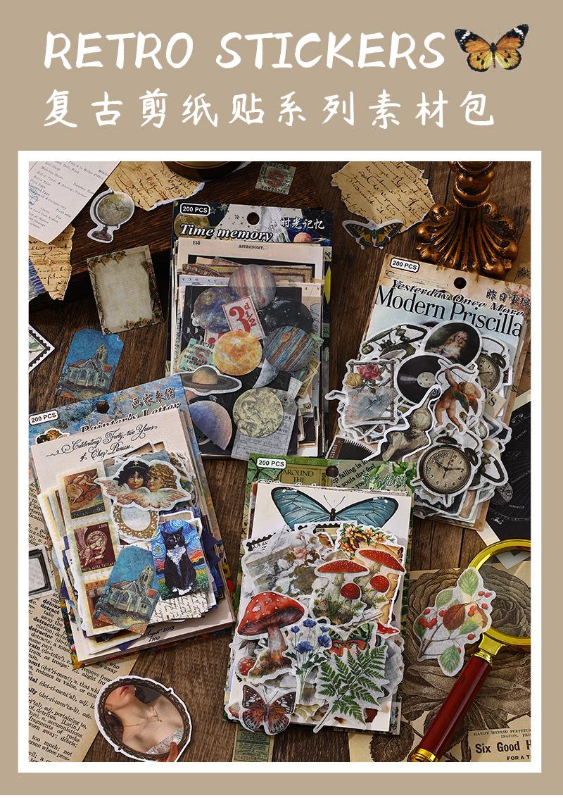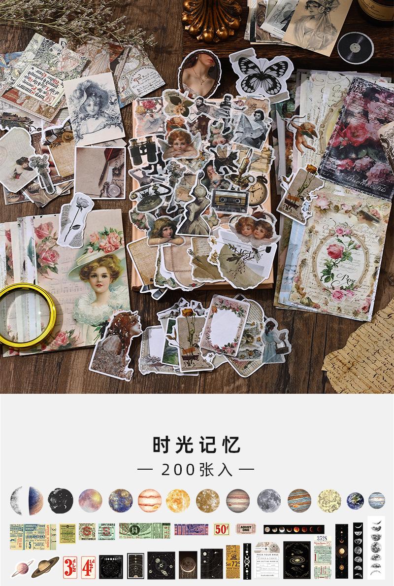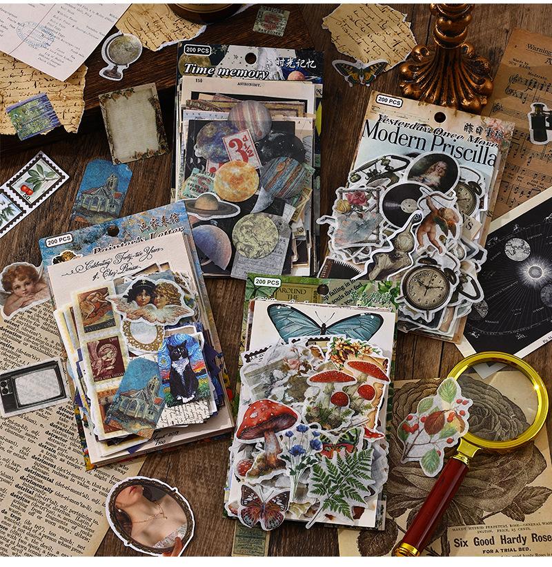 Paquete de 200 Piezas de Stickers de Material Retro para Agenda de Mano Papel de Material Literario Europeo y Americano Material para Agenda Pegatinas Creativas