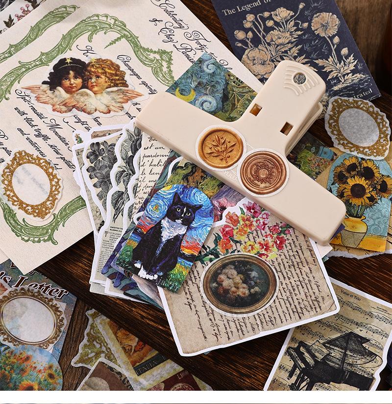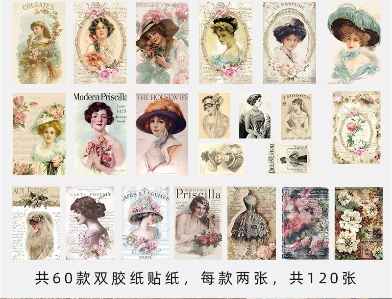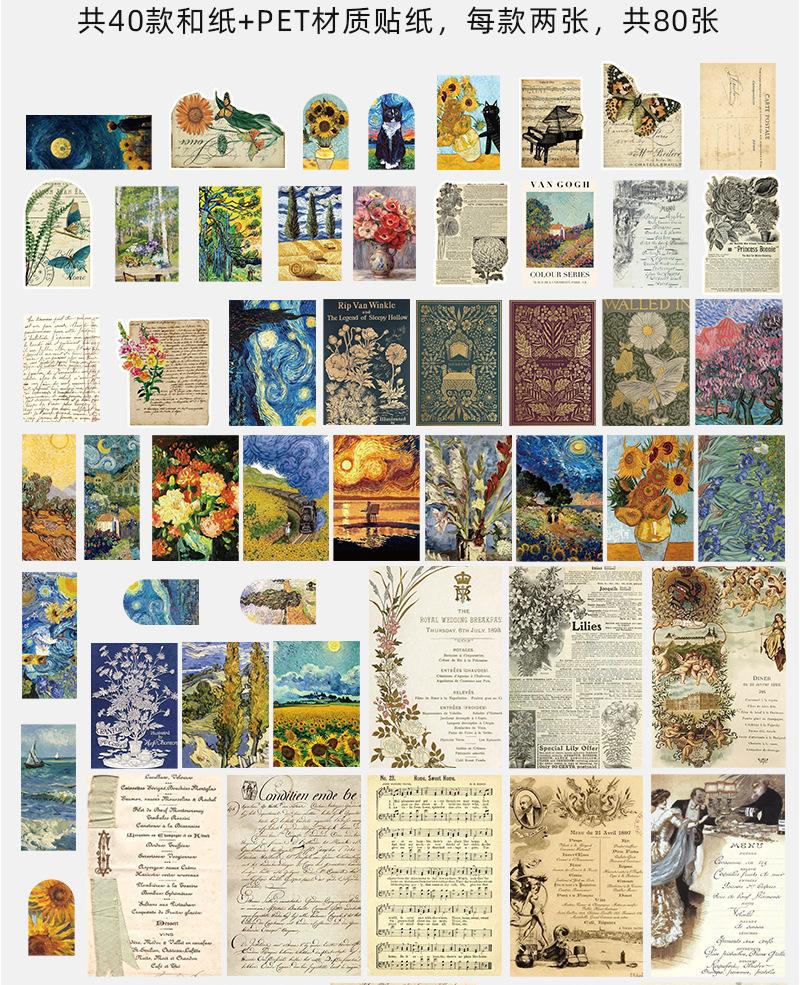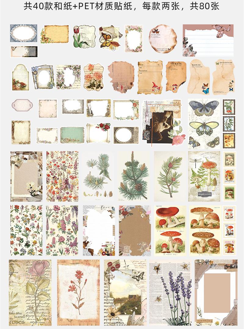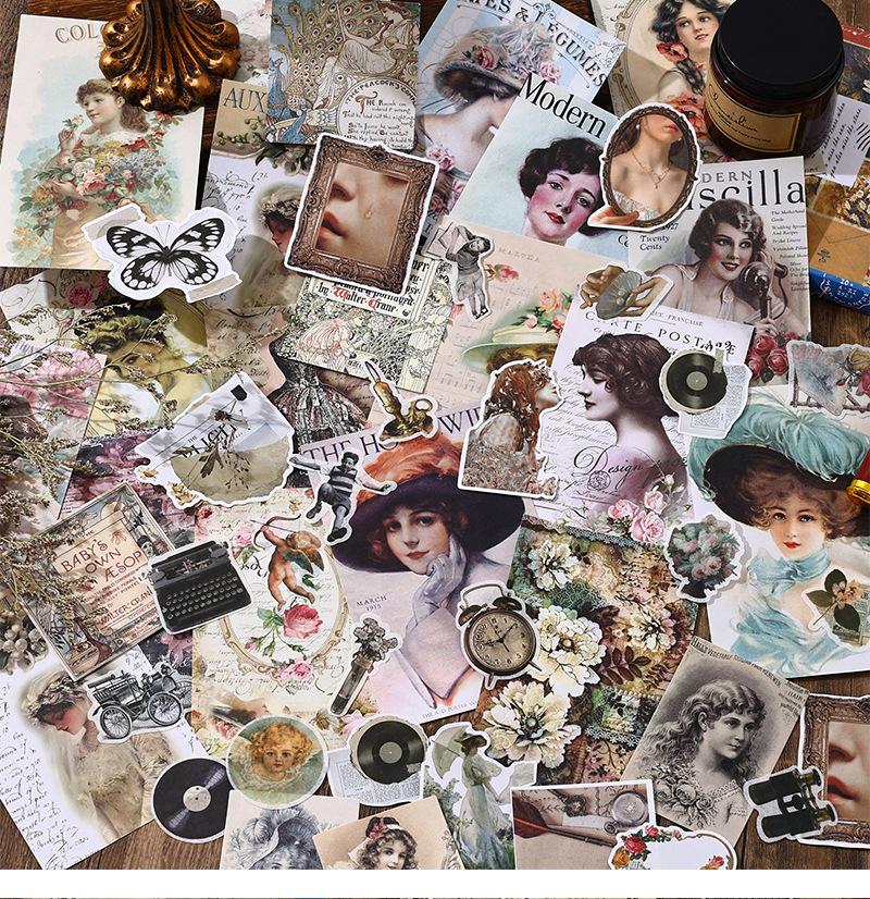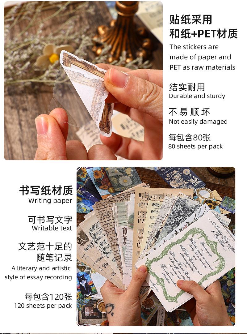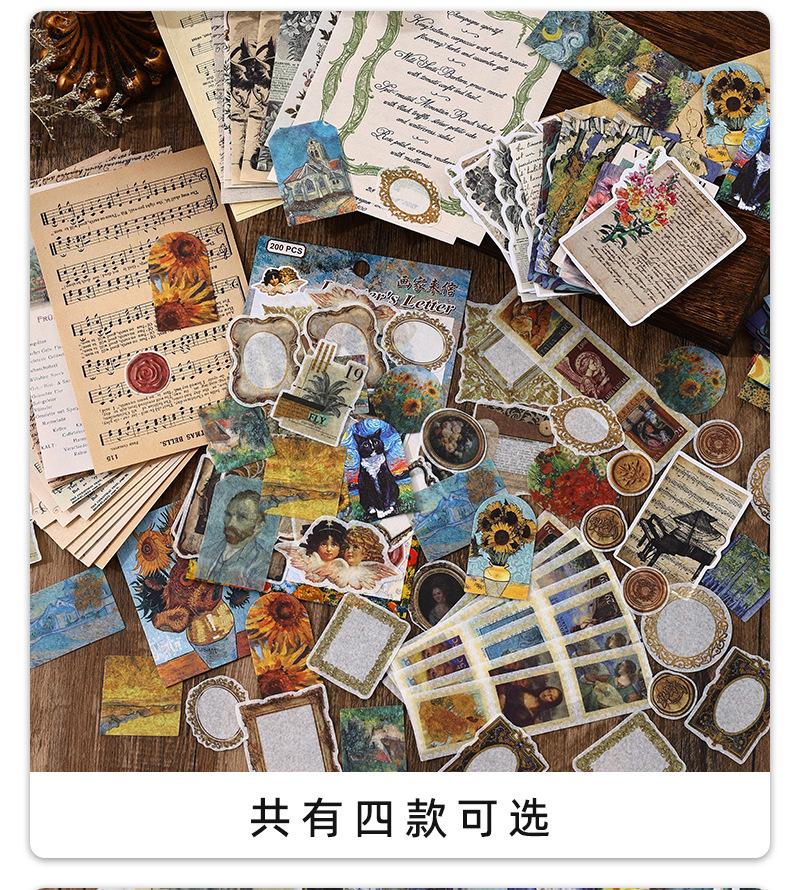 Paquete de 200 Piezas de Stickers de Material Retro para Agenda de Mano Papel de Material Literario Europeo y Americano Material para Agenda Pegatinas Creativas