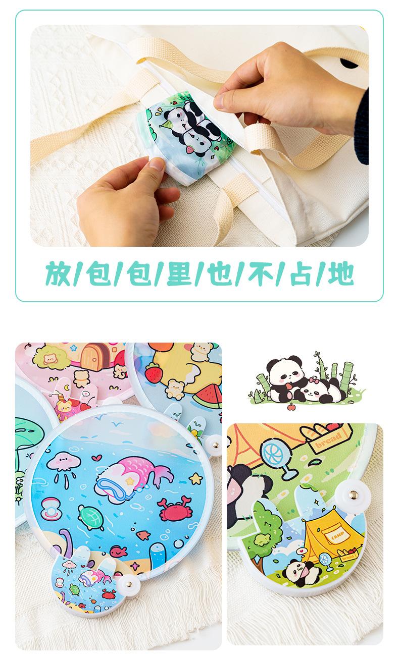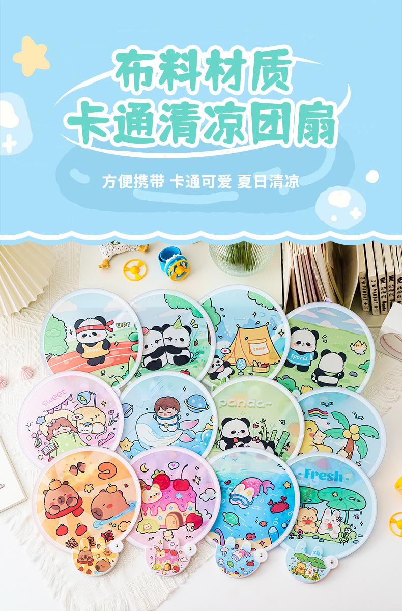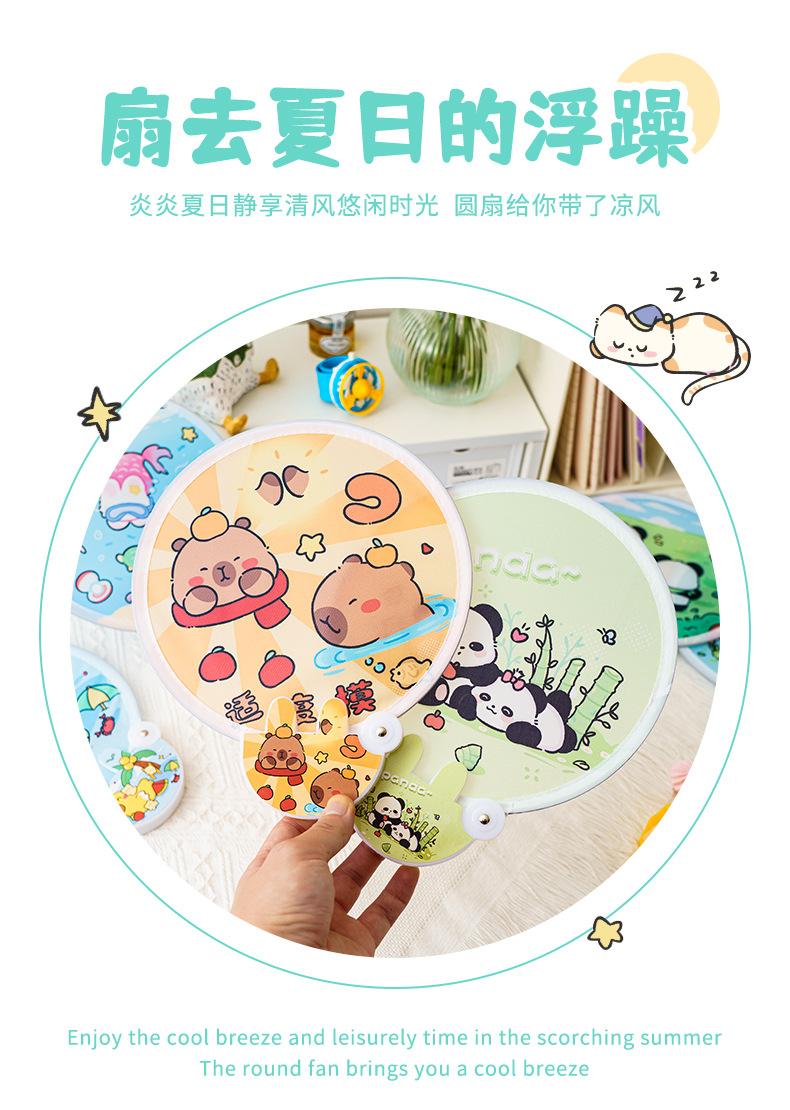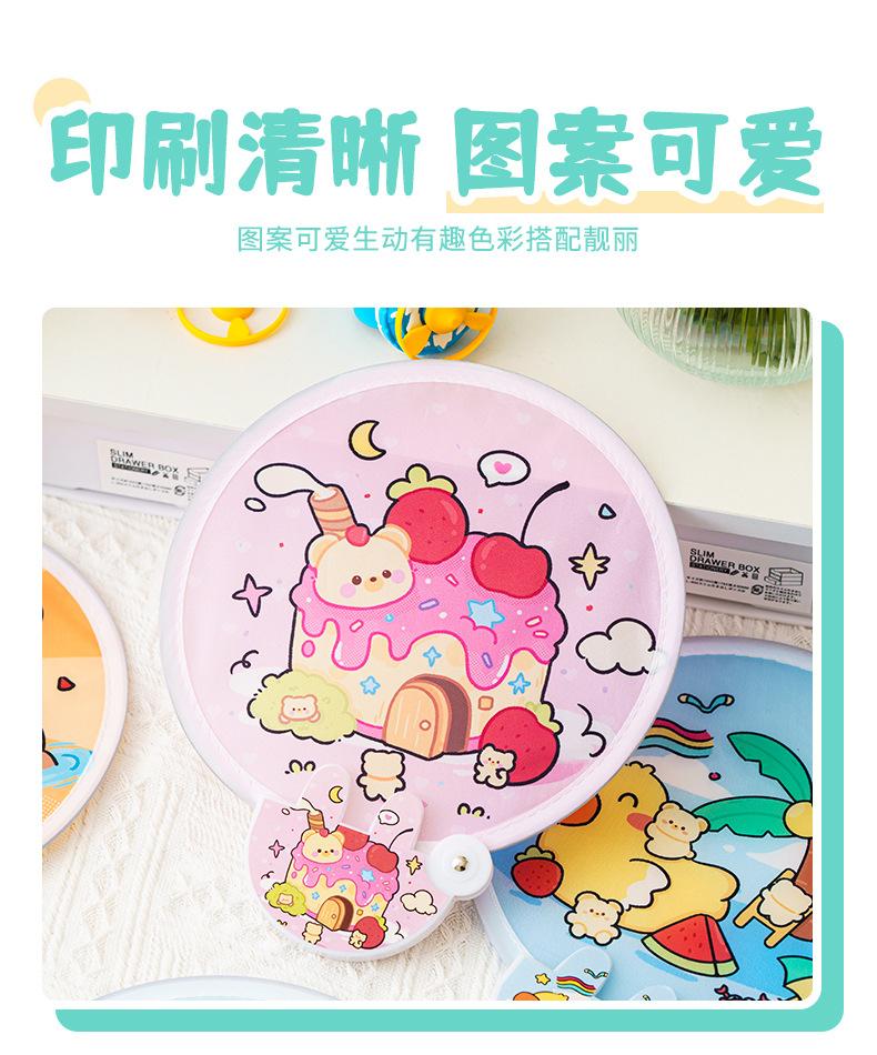 1 de junio regalo lindo caricatura abanico redondo verano estudiante mini tela pequeño abanico redondo plegable de bolsillo abanico portátil