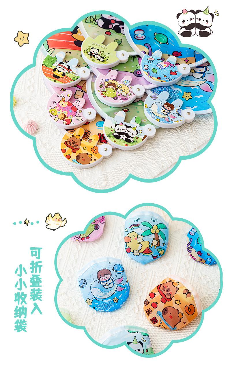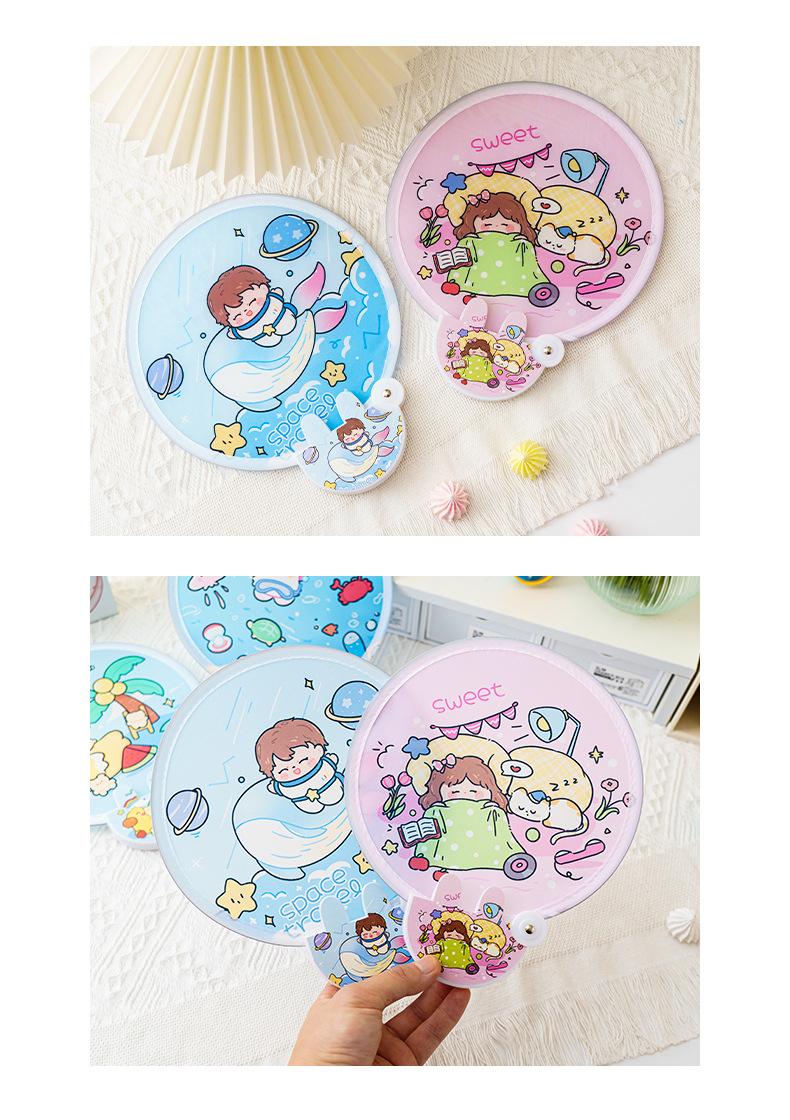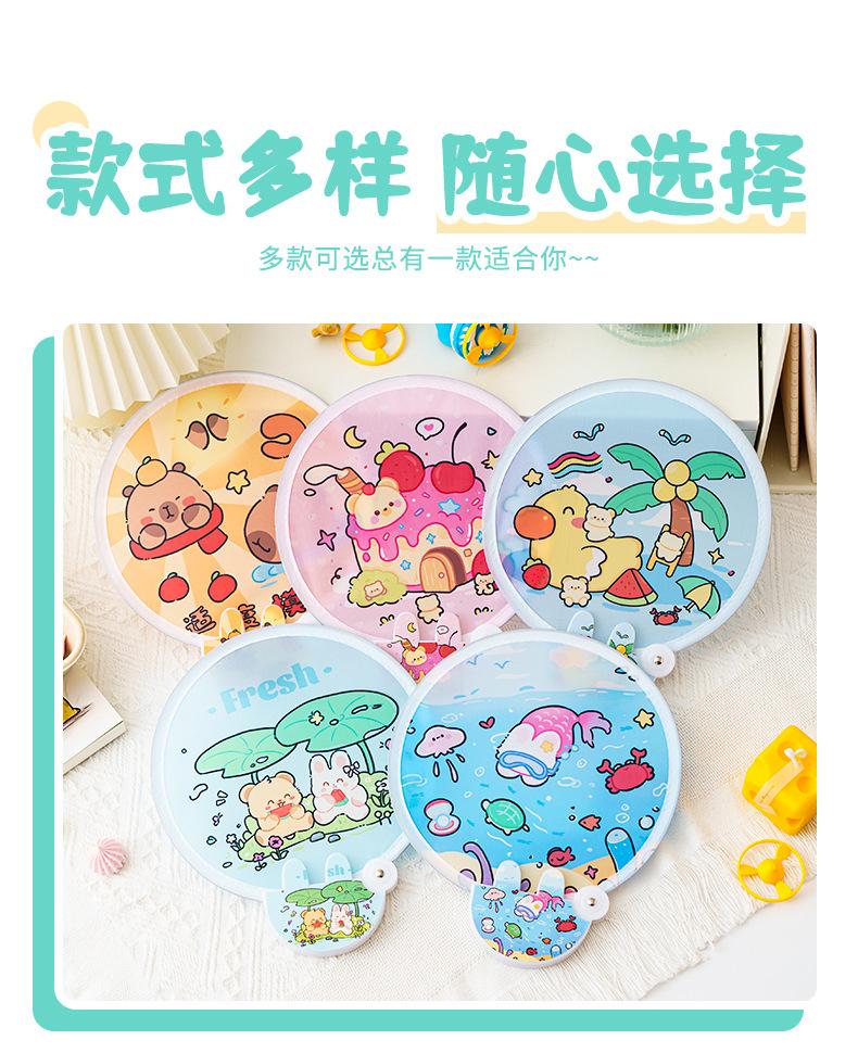 1 de junio regalo lindo caricatura abanico redondo verano estudiante mini tela pequeño abanico redondo plegable de bolsillo abanico portátil