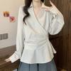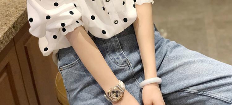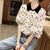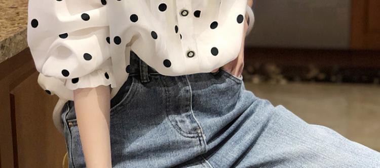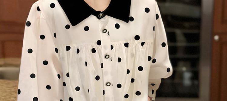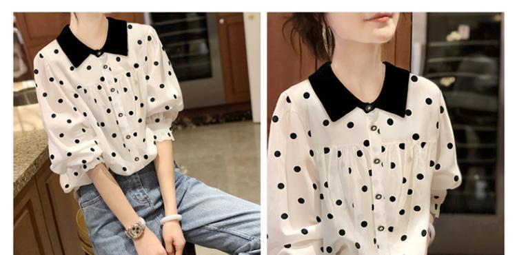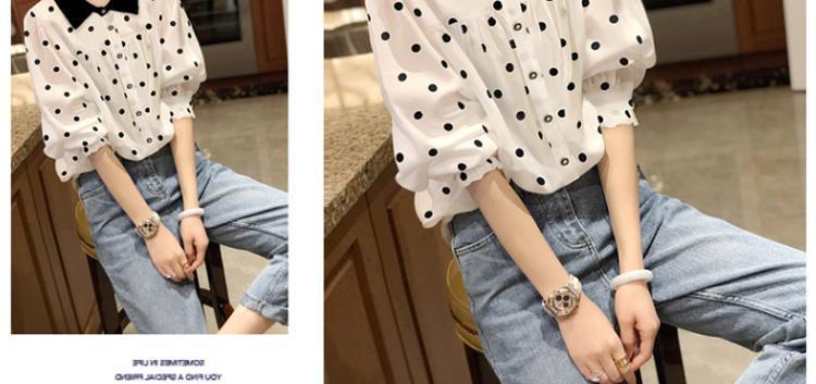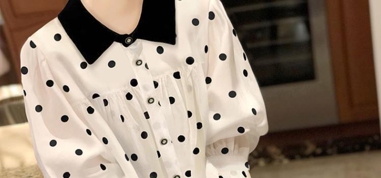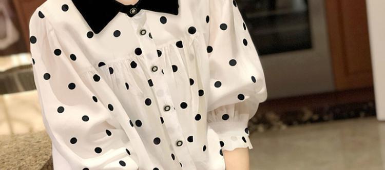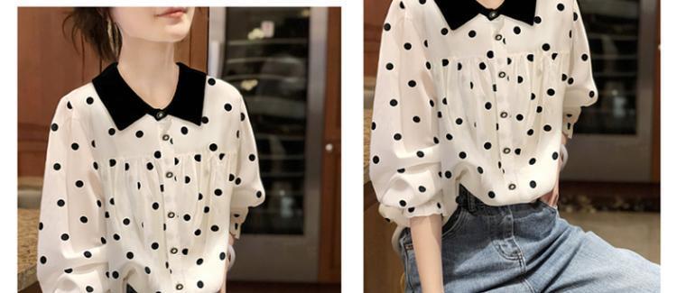 Camisa de gasa con lunares ondulados para mujer, primavera y verano 2025, nueva camisa elegante y ajustada de manga larga, venta directa