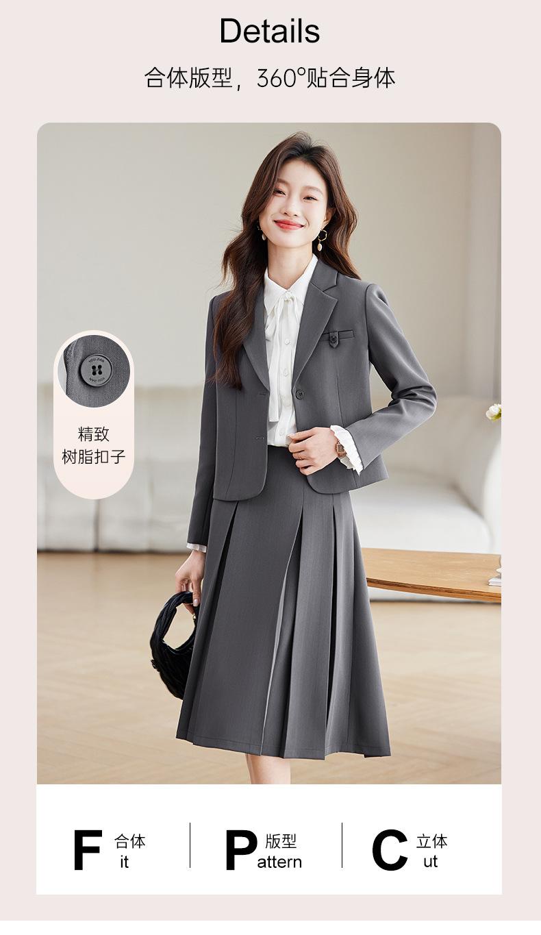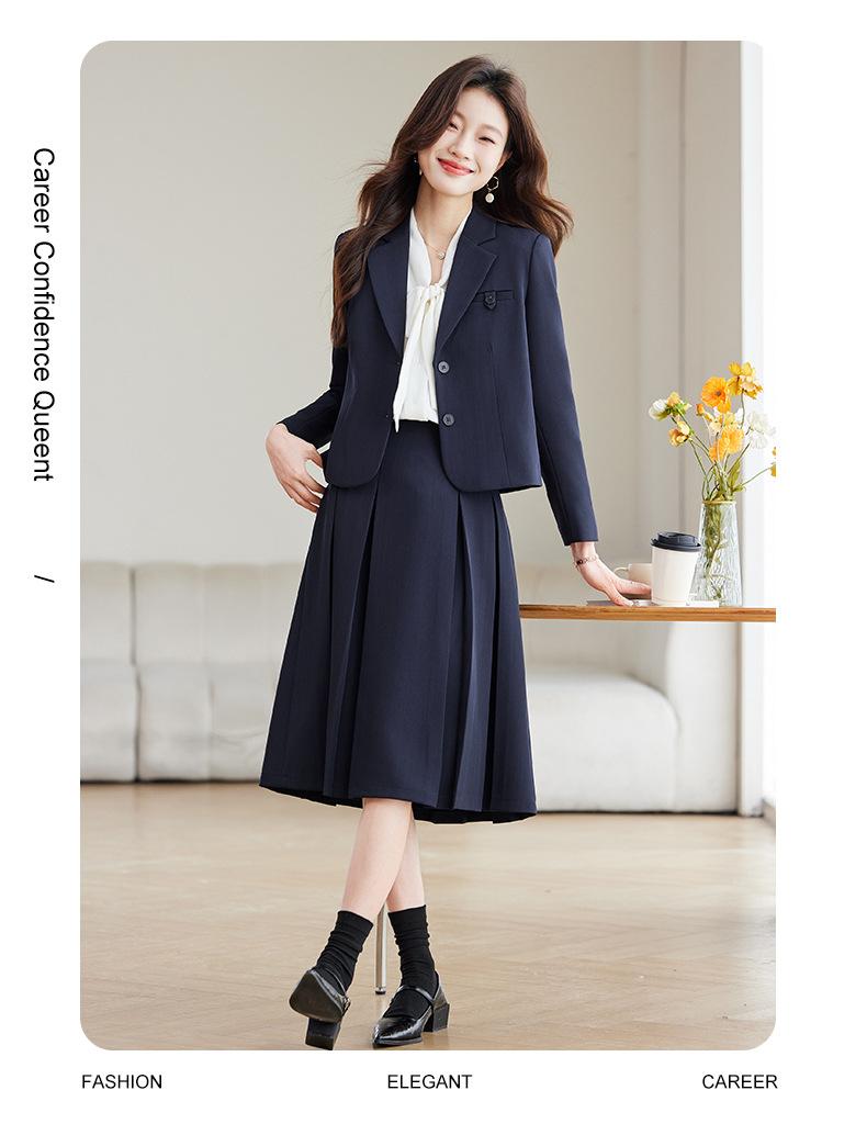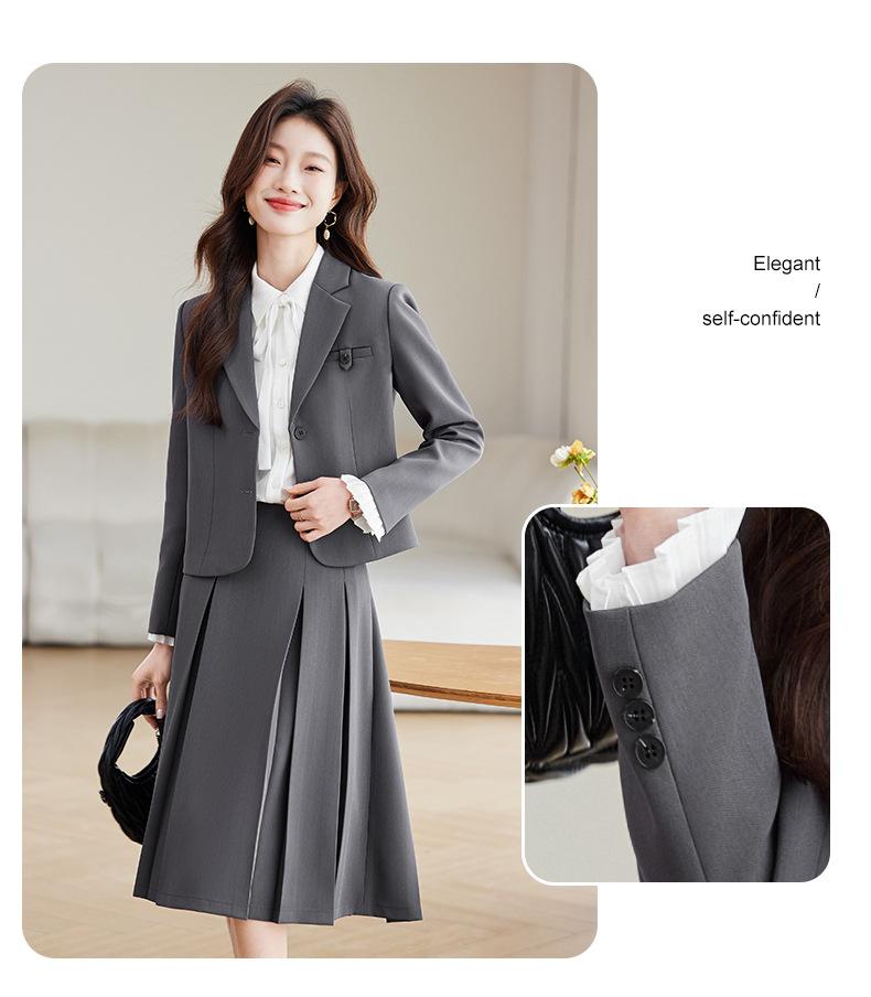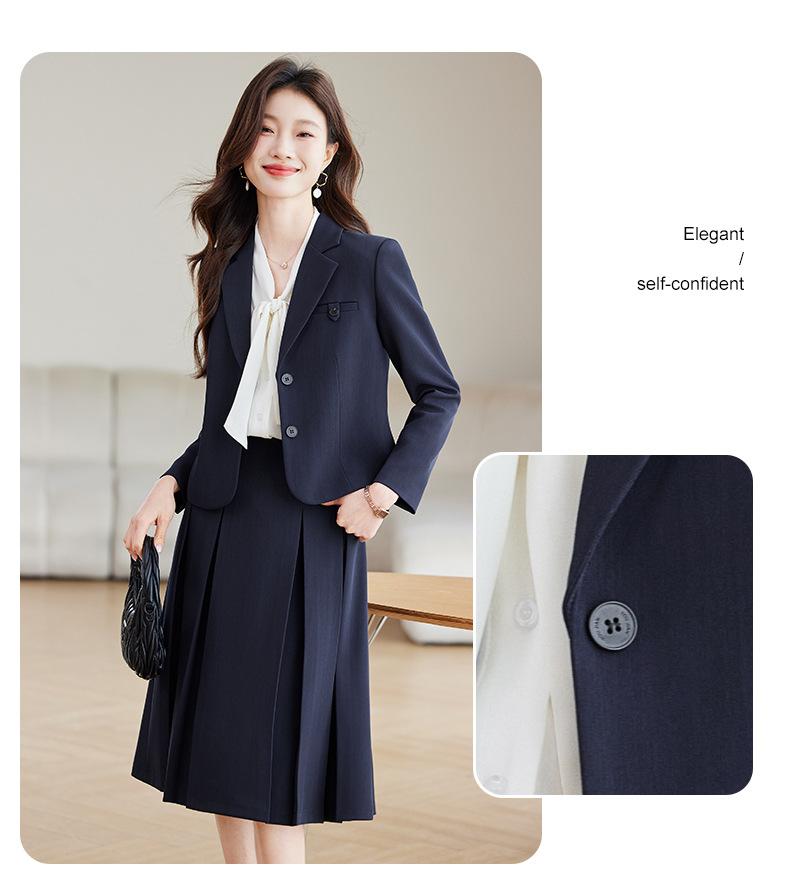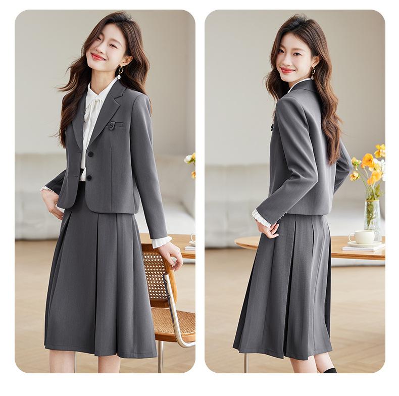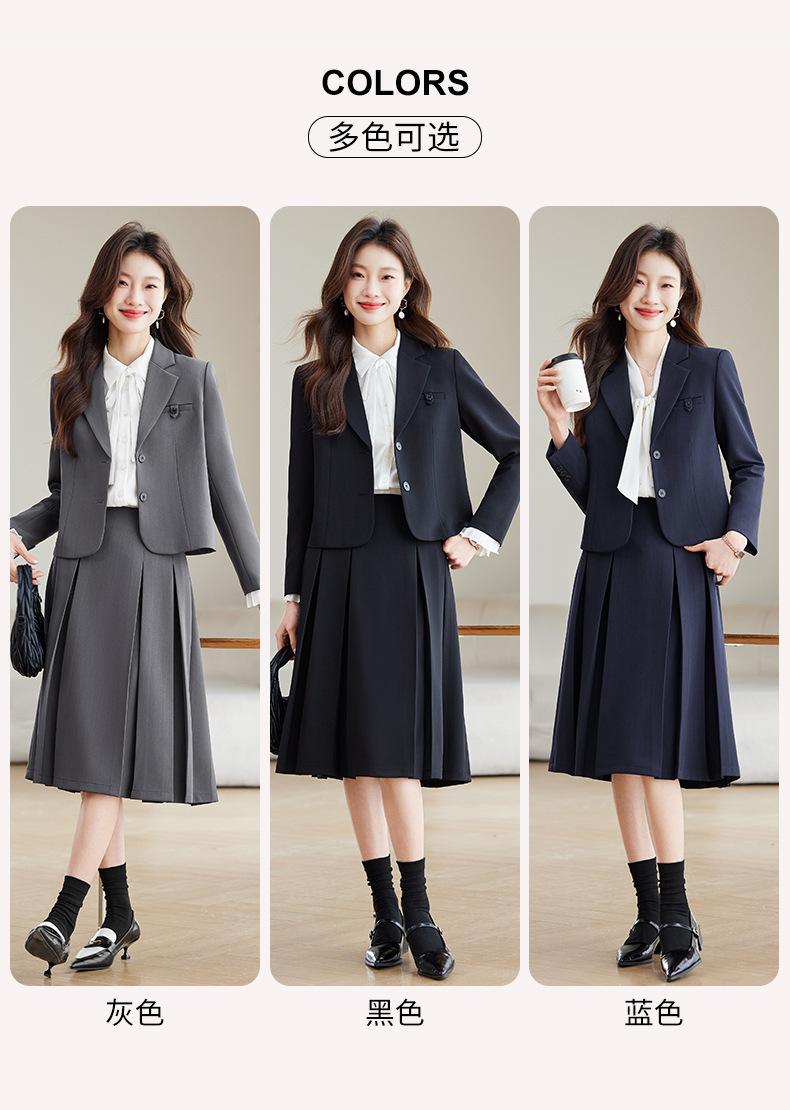 Black one piece suit, Gray one piece suit, Blue one piece suit, Black suit + skirt, Gray suit + skirt, Blue suit + skirt
