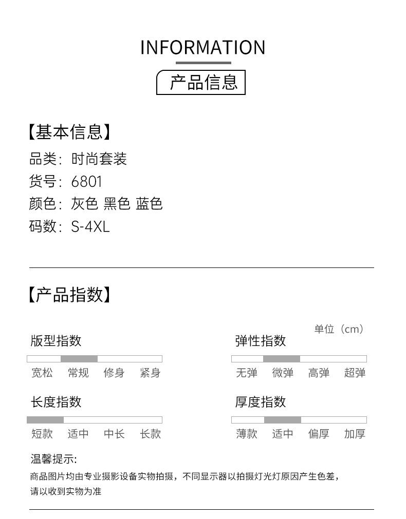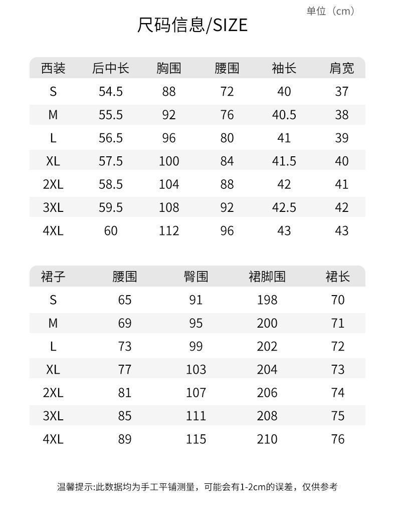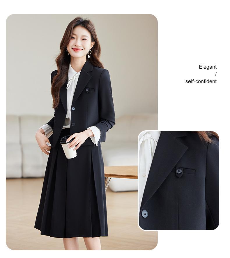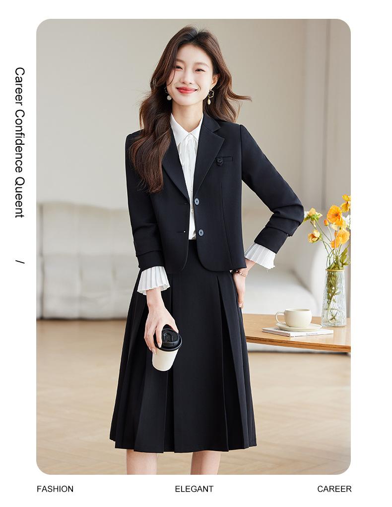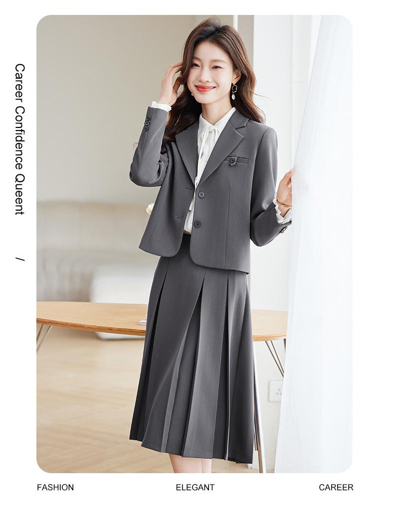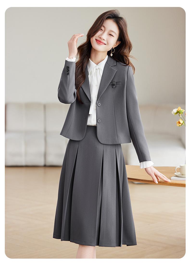 Black one piece suit, Gray one piece suit, Blue one piece suit, Black suit + skirt, Gray suit + skirt, Blue suit + skirt
