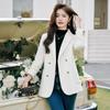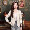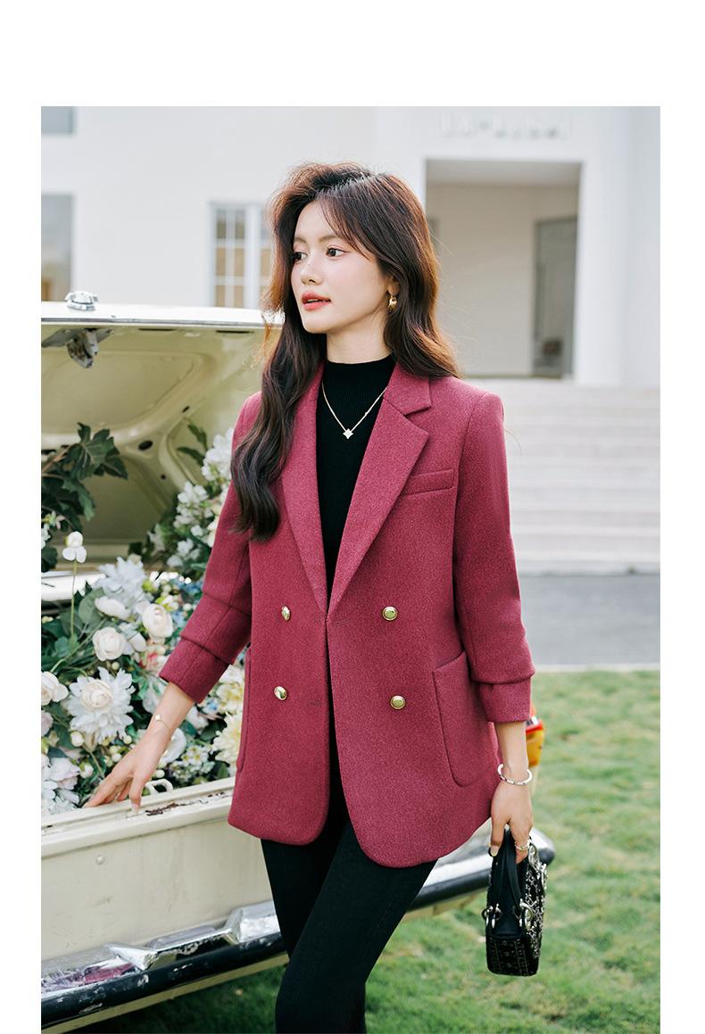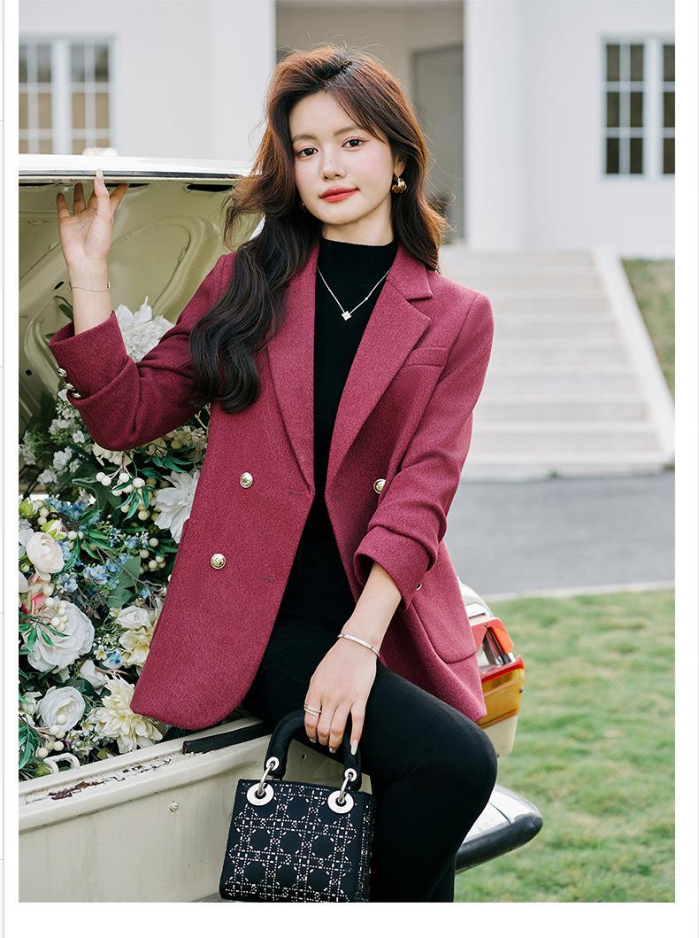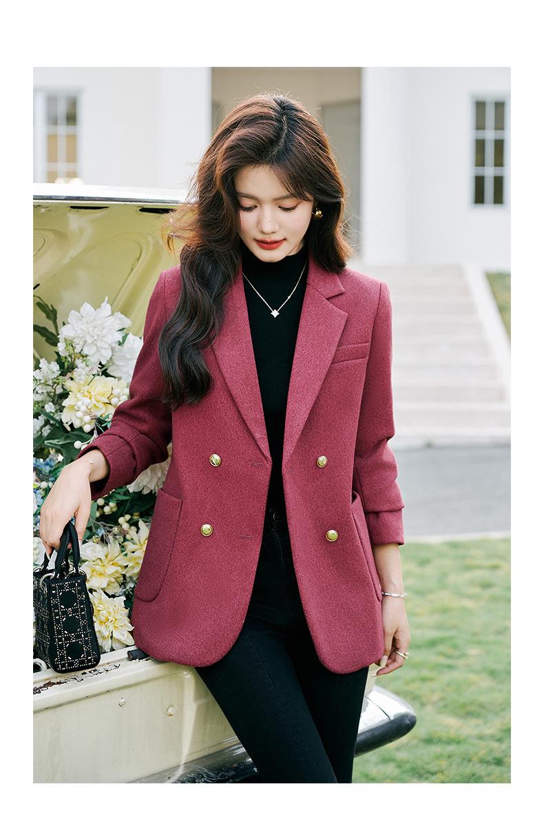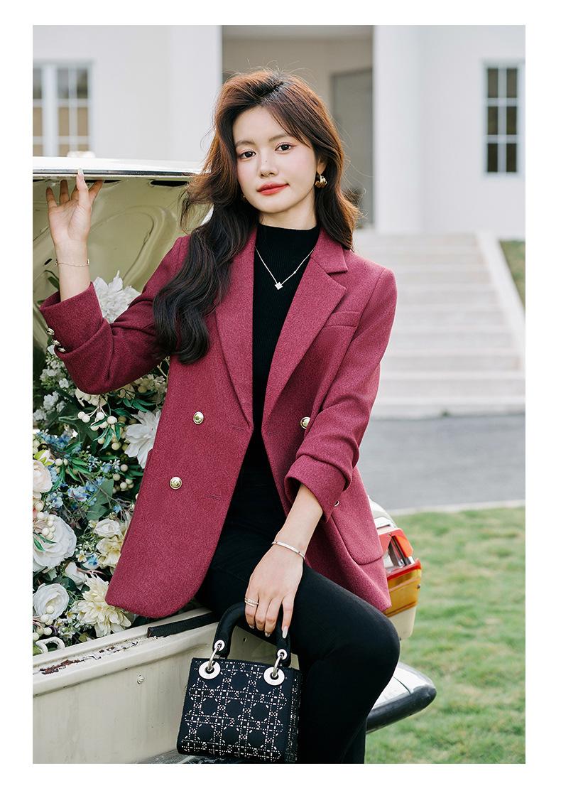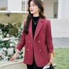 2024 primavera otoño e invierno nuevo rojo manga larga traje pequeño cuello abrigo mujer elegante moda temperamento delgado desplazamientos
