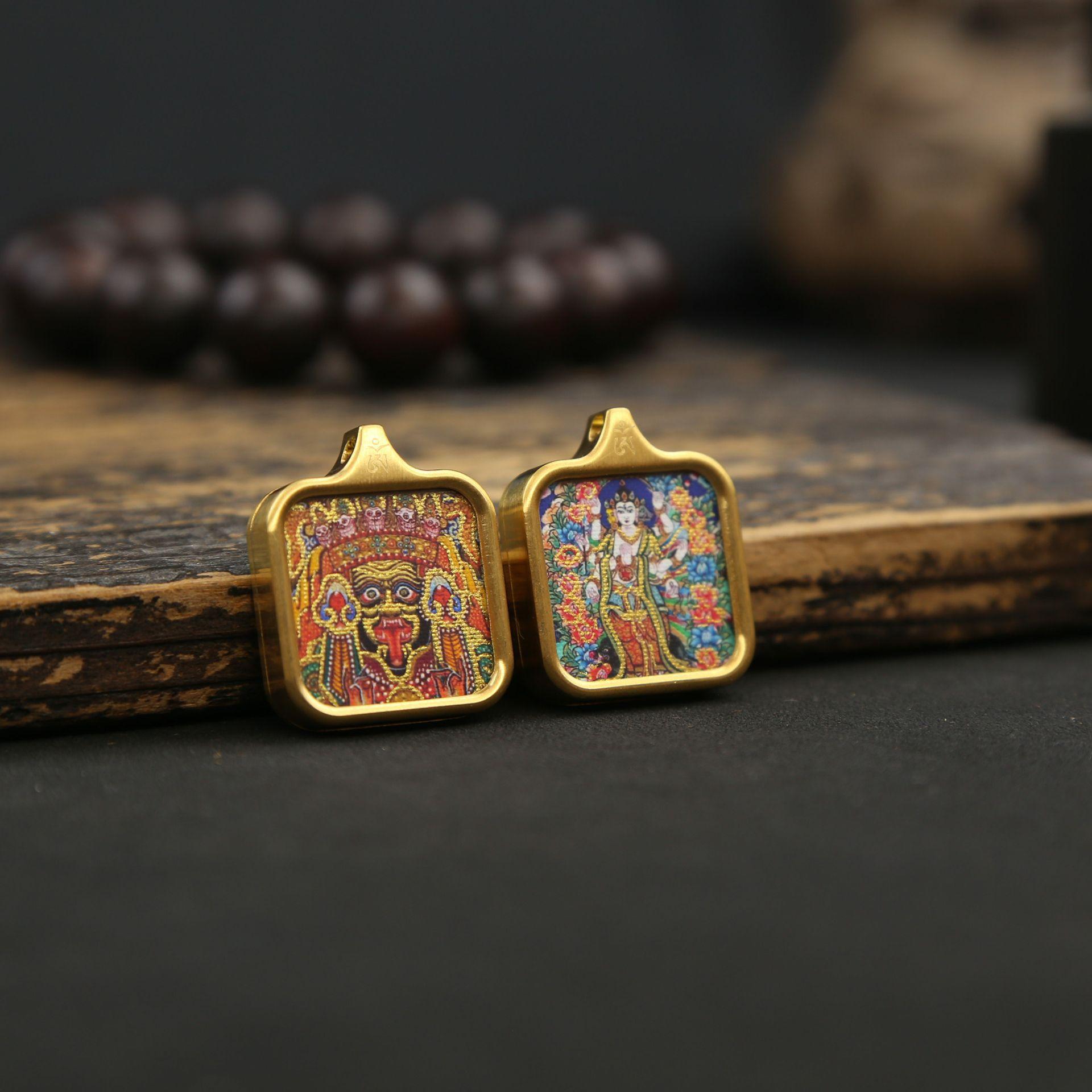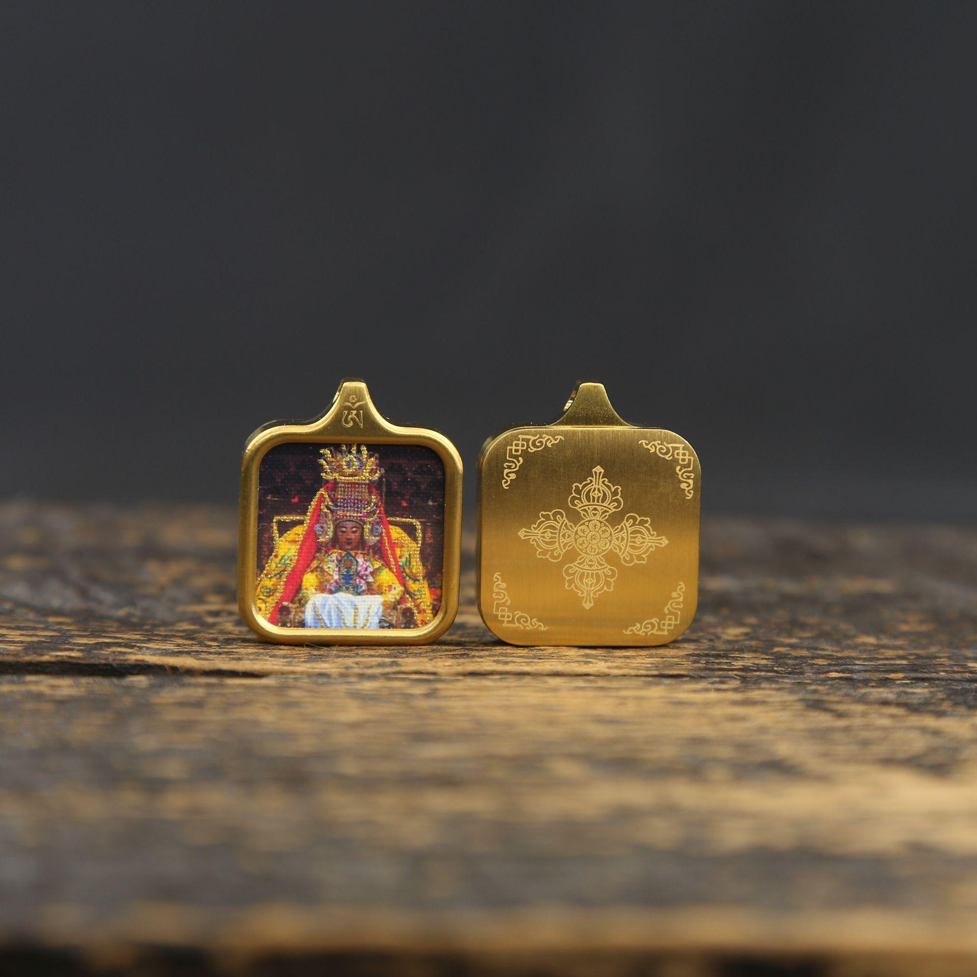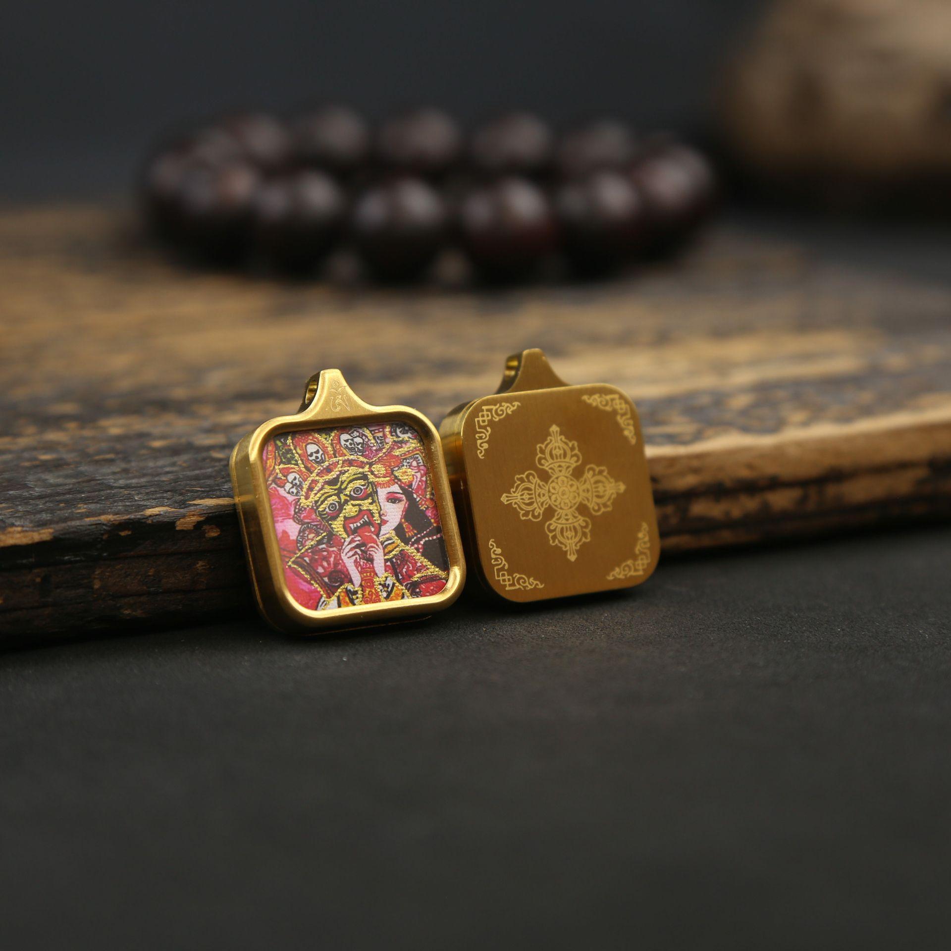 La carcasa de acero de titanio no se desvanece y conserva el color. Zakilam, vida pasada y presente, Thangka, colgante de nueve colas cuadrado pequeño Thangka