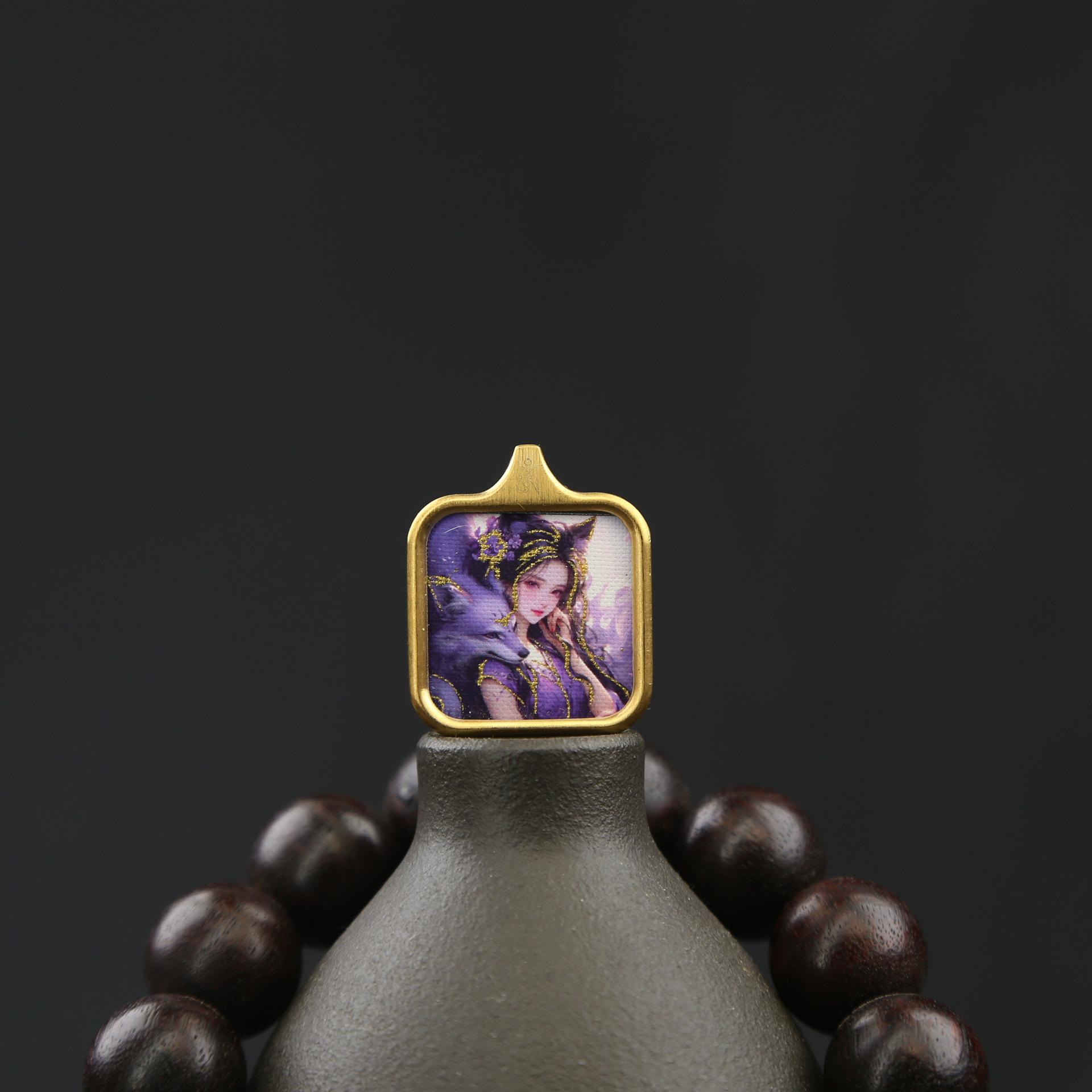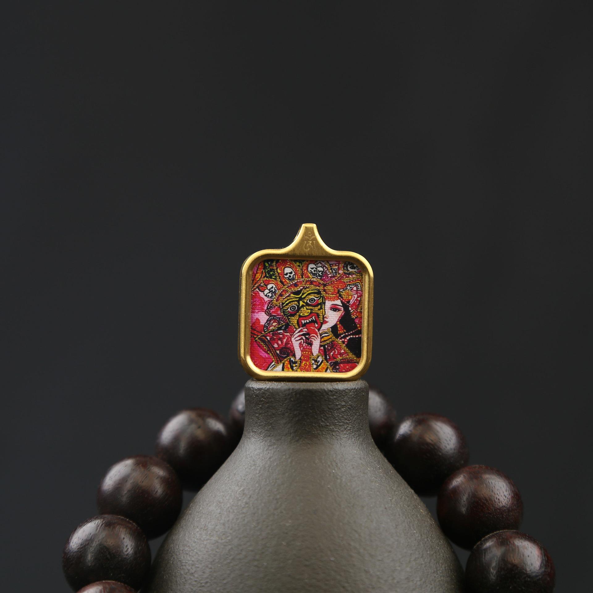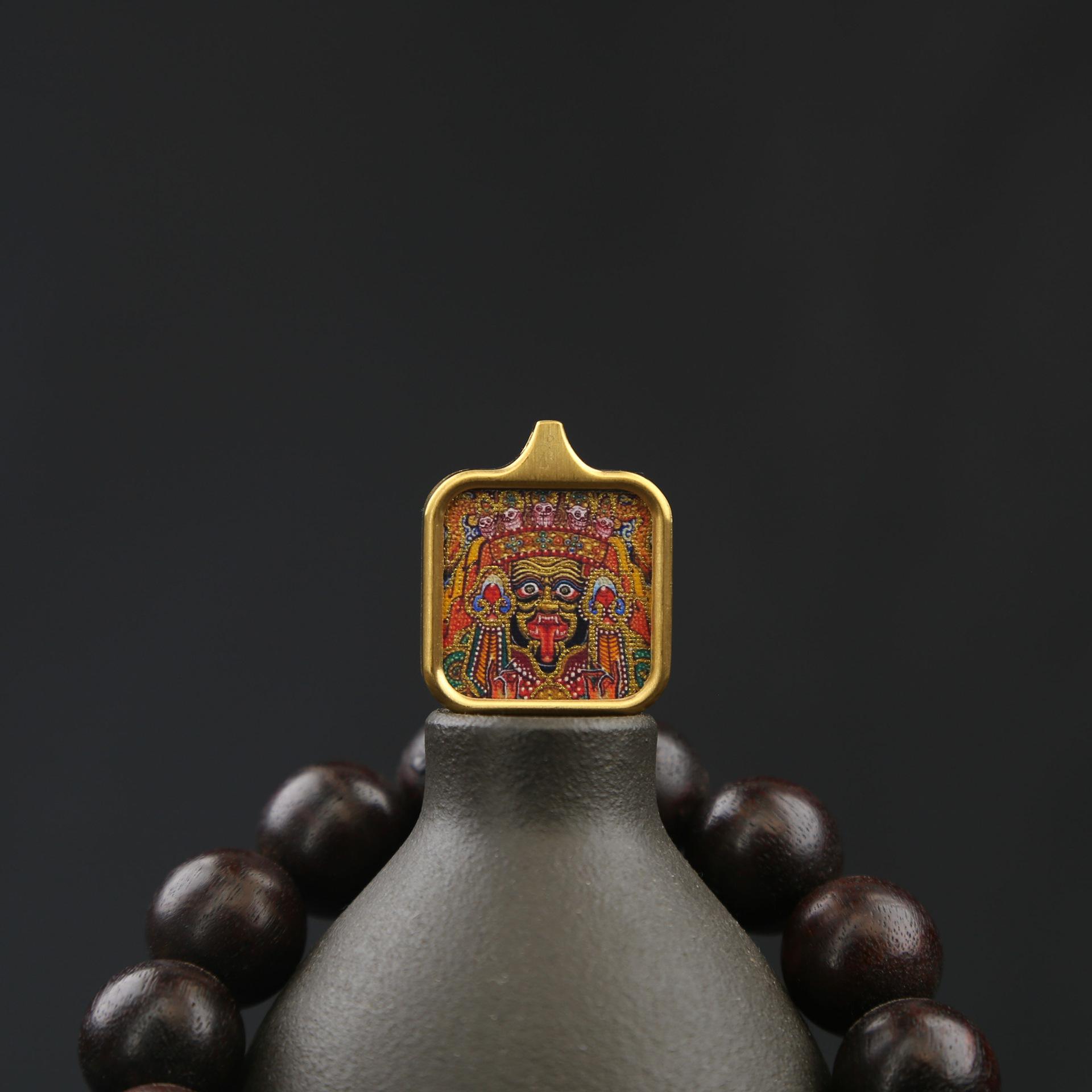 La carcasa de acero de titanio no se desvanece y conserva el color. Zakilam, vida pasada y presente, Thangka, colgante de nueve colas cuadrado pequeño Thangka