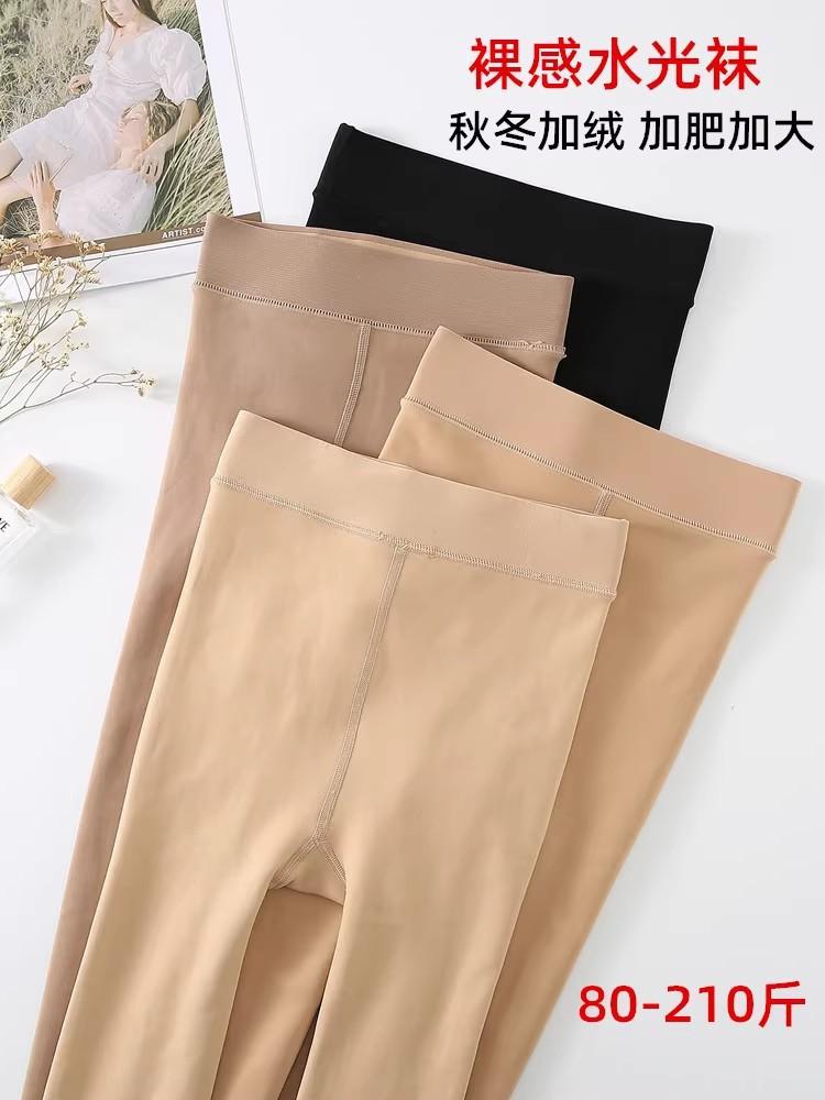 Calcetines ligeros de agua para mujer, medias ligeras de otoño, calcetines de invierno con forro polar, medias de color carne de talla grande
