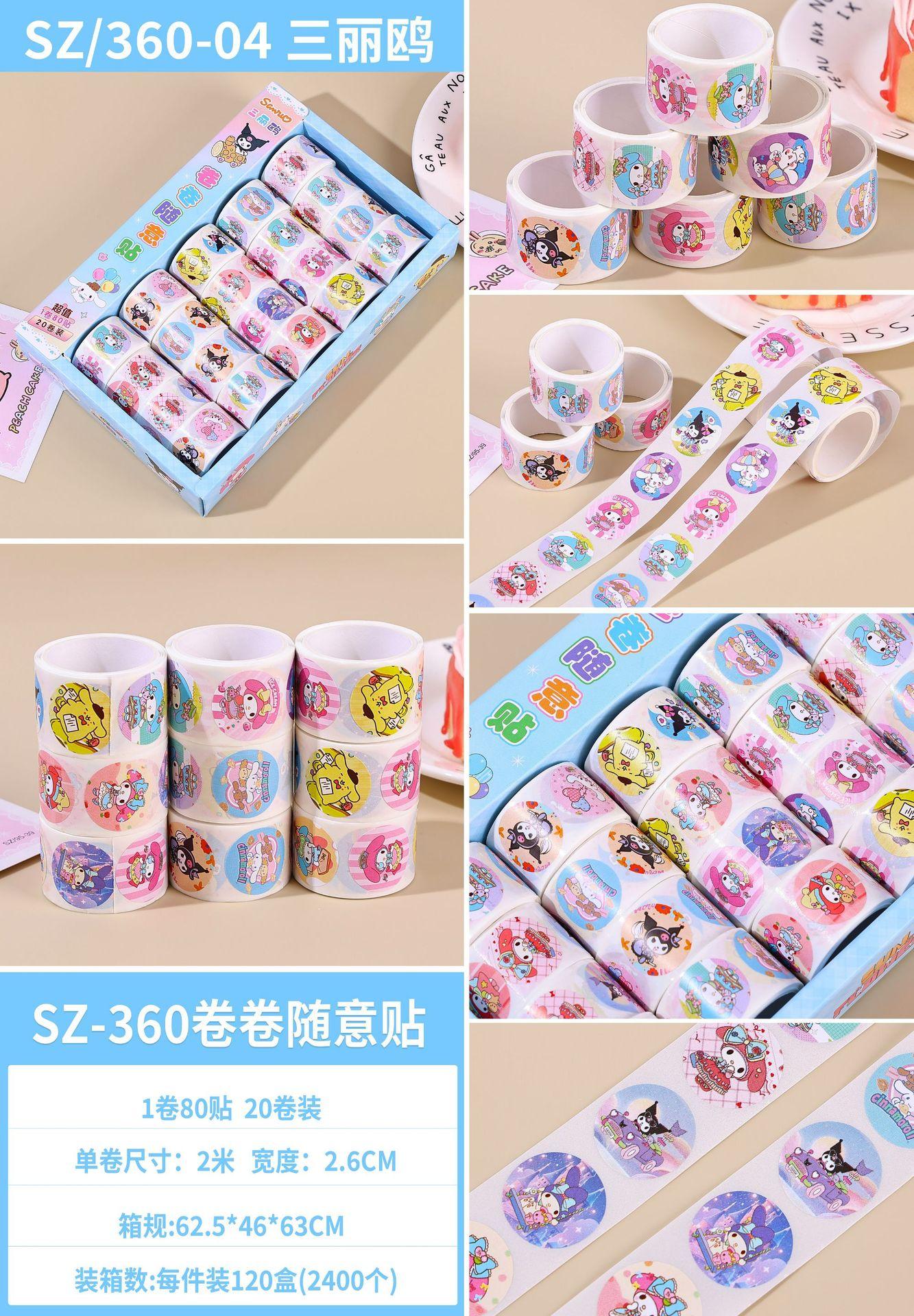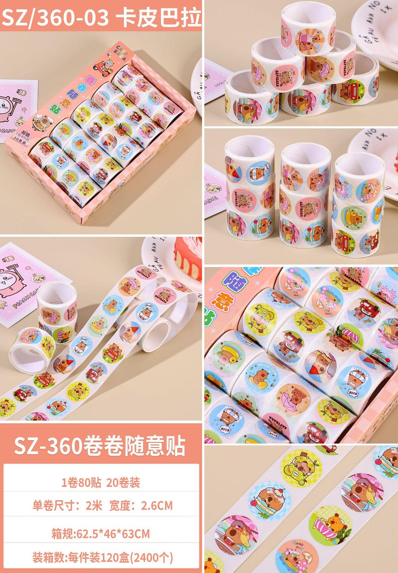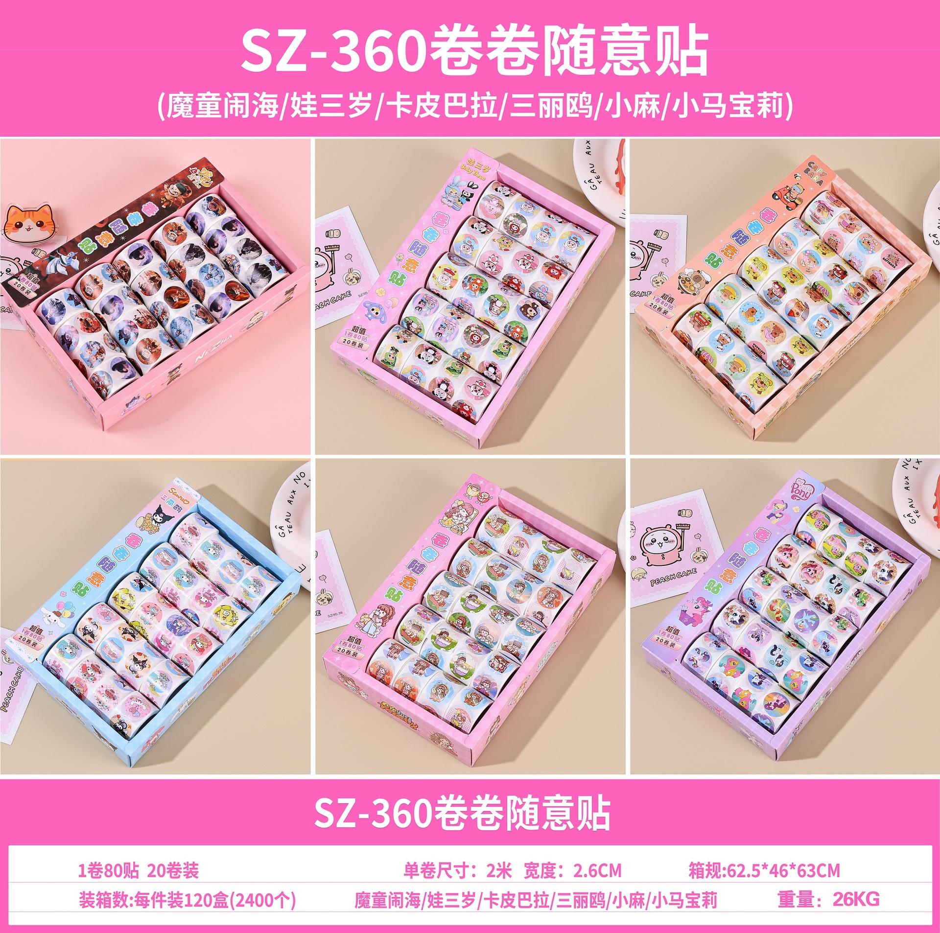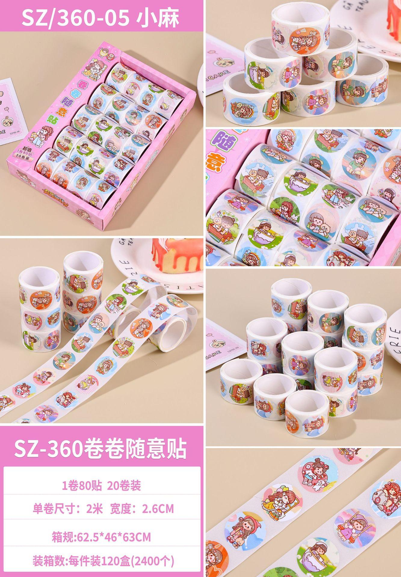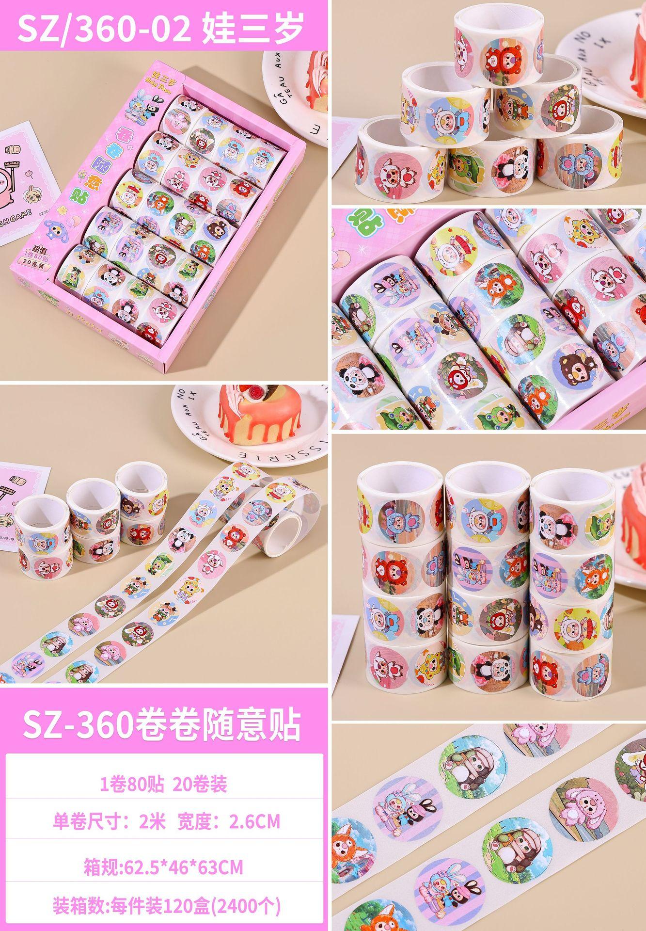 SZ/360 rollos de cinta son libres para pegar, 80 pegatinas por rollo, 2 metros por rollo, 2.6 cm de ancho, 20 rollos por caja, 120 cajas (2400 piezas) por paquete.