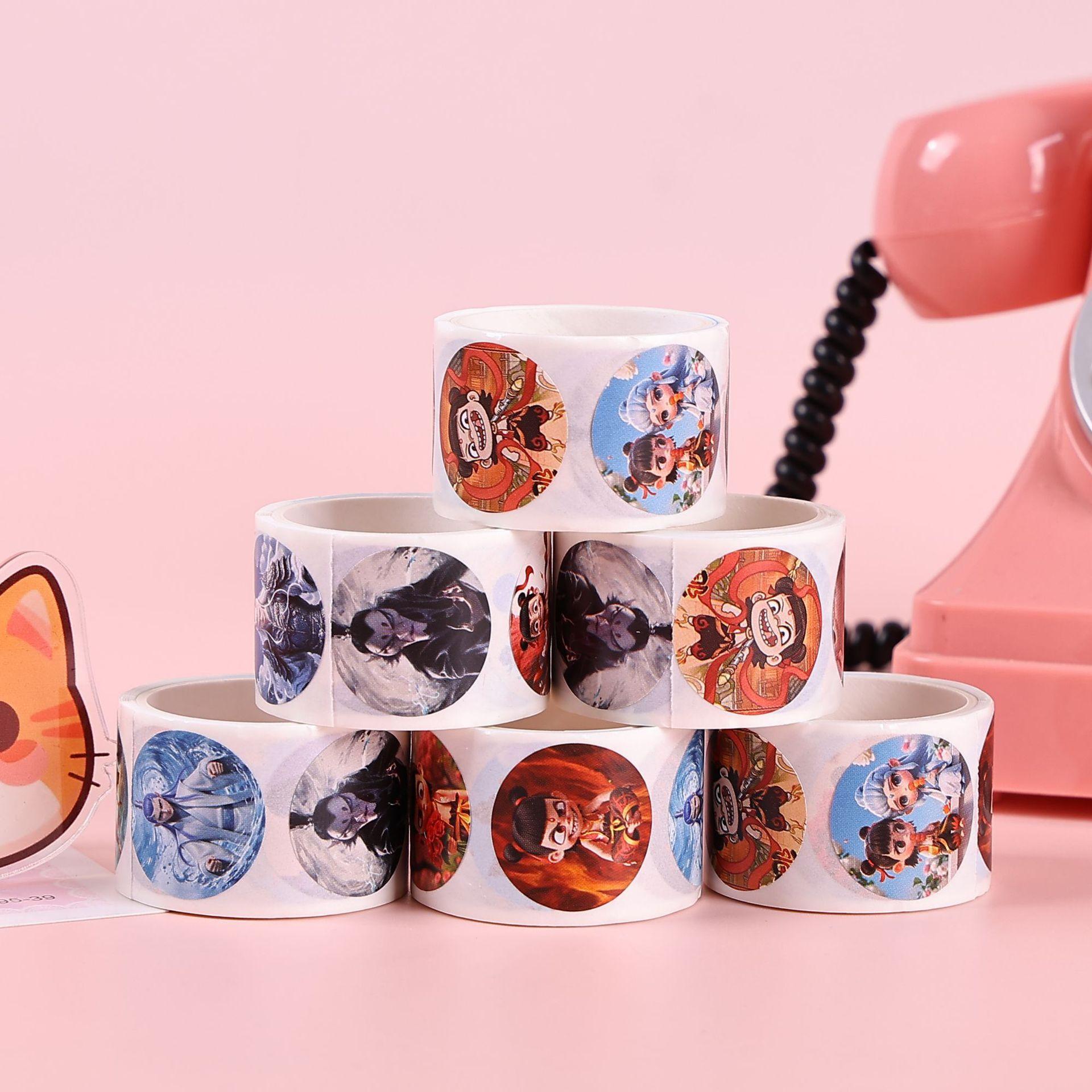 80 Stickers, Cinta Adhesiva en Rollo de Película Autoadhesiva, Stickers Aleatorios, Stickers Lindos de Dibujos Animados para Manual de Estudiante, Stickers Redondos Mágicos para Niños
