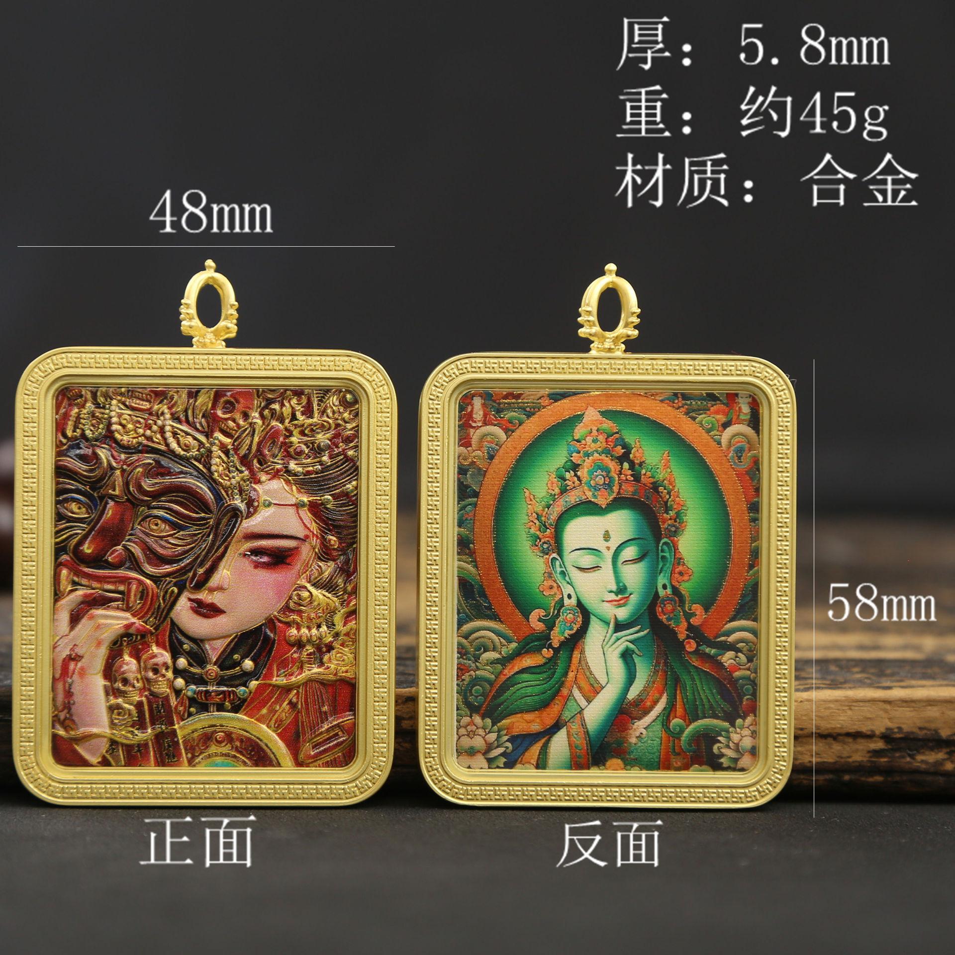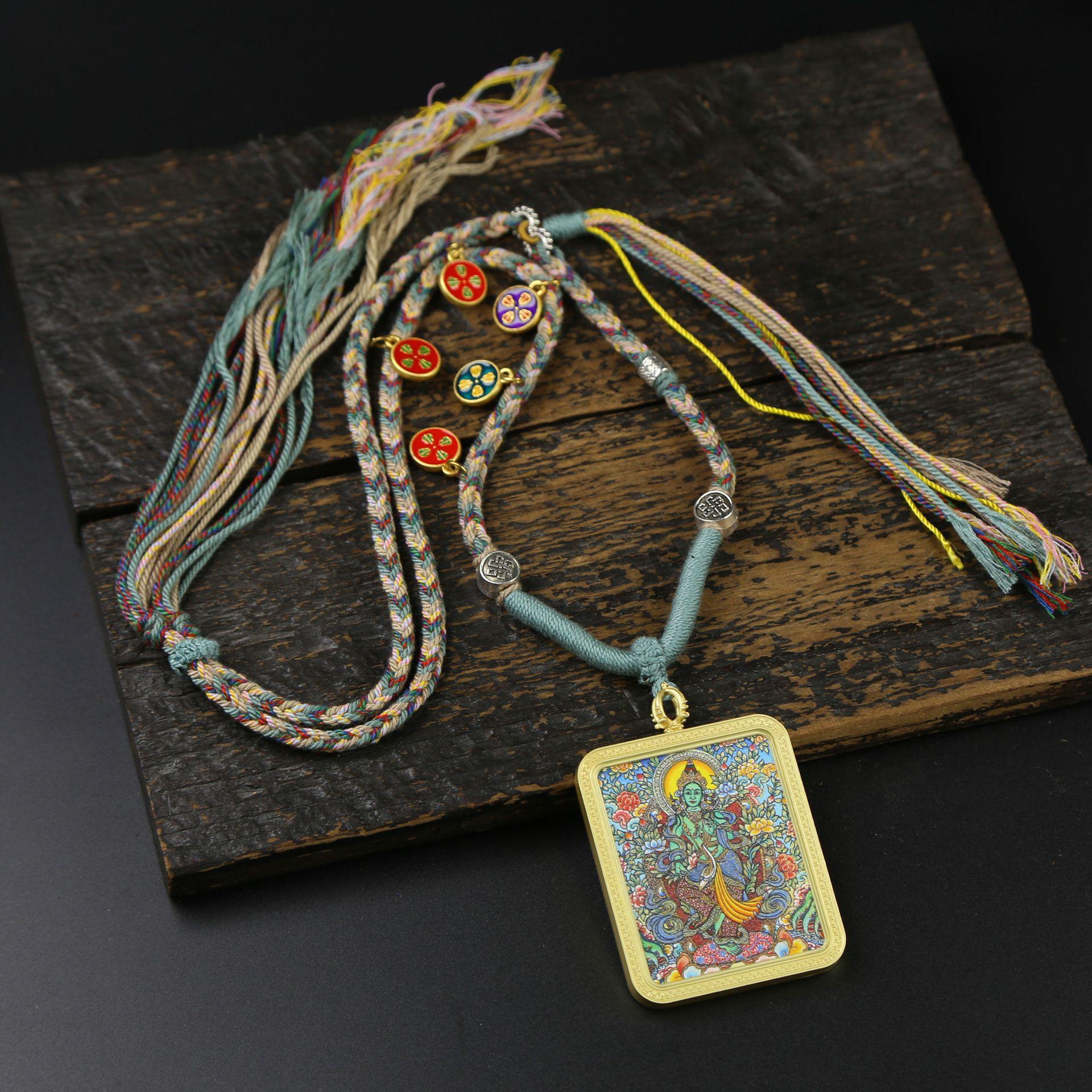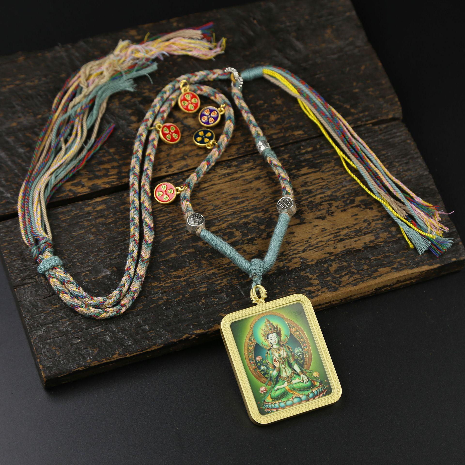 Colgante Thangka Dorado Pintado a Mano Estilo Xizang Tara Verde Tara Blanca Colgante Thangka Portátil Amuleto Budista Xizang Collar Colgante