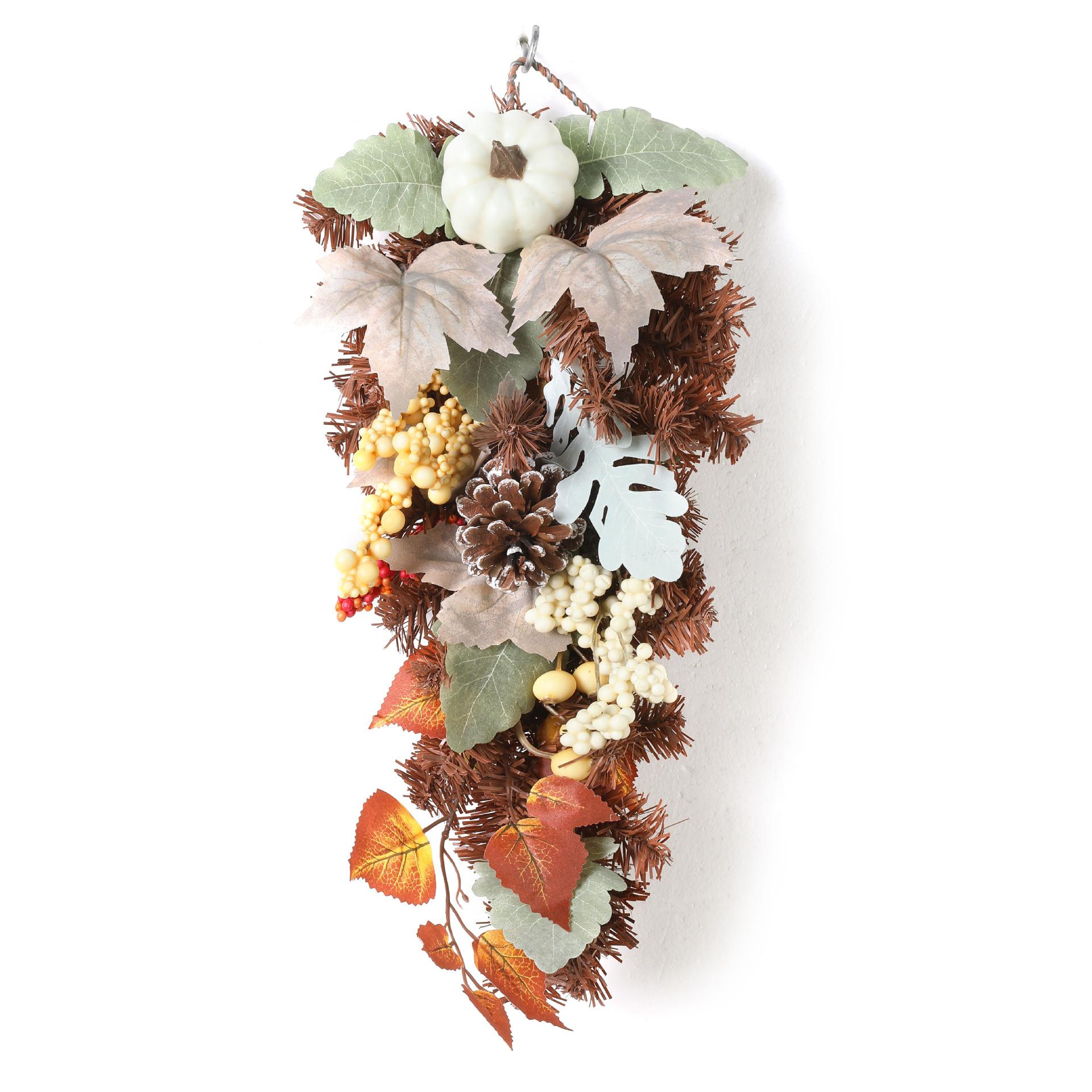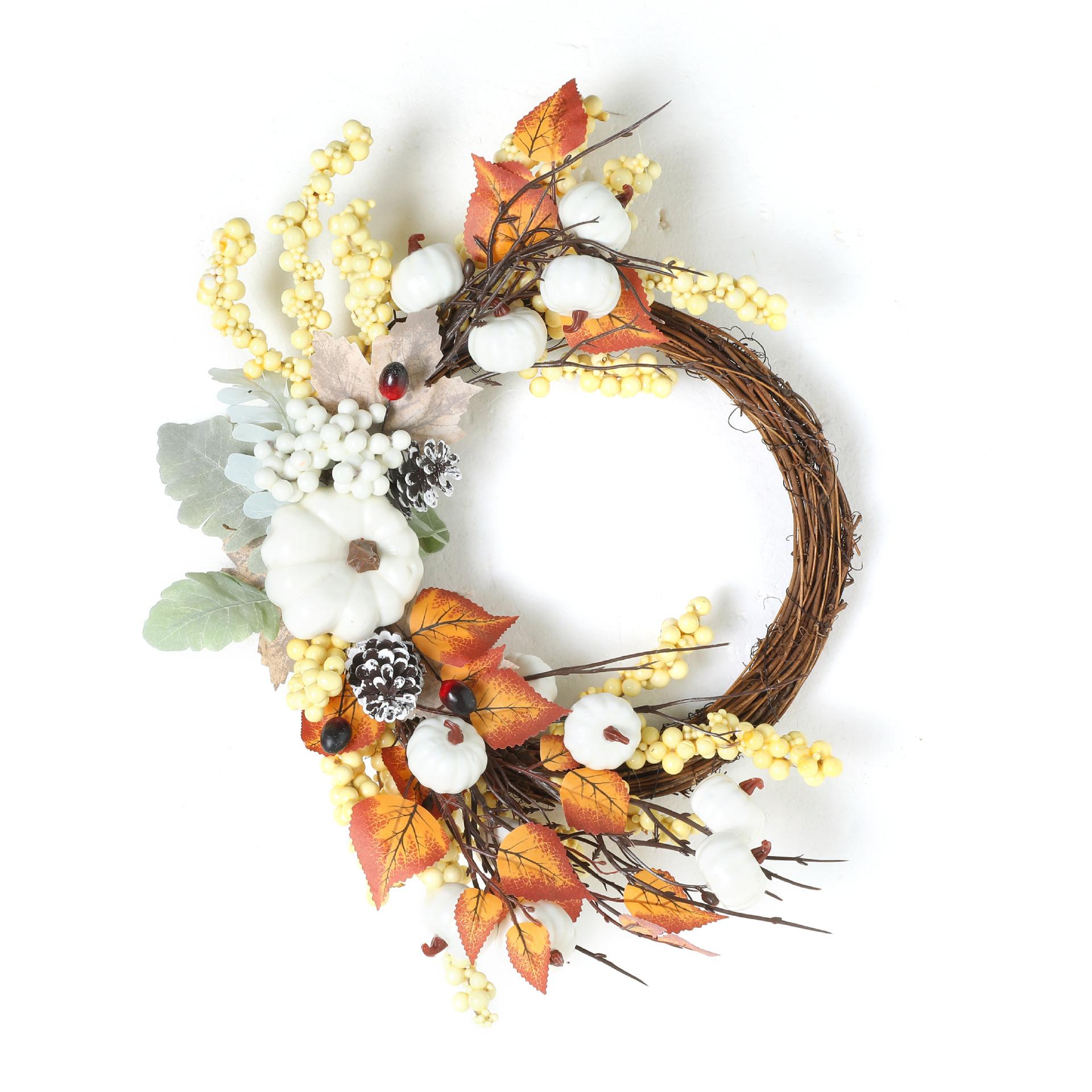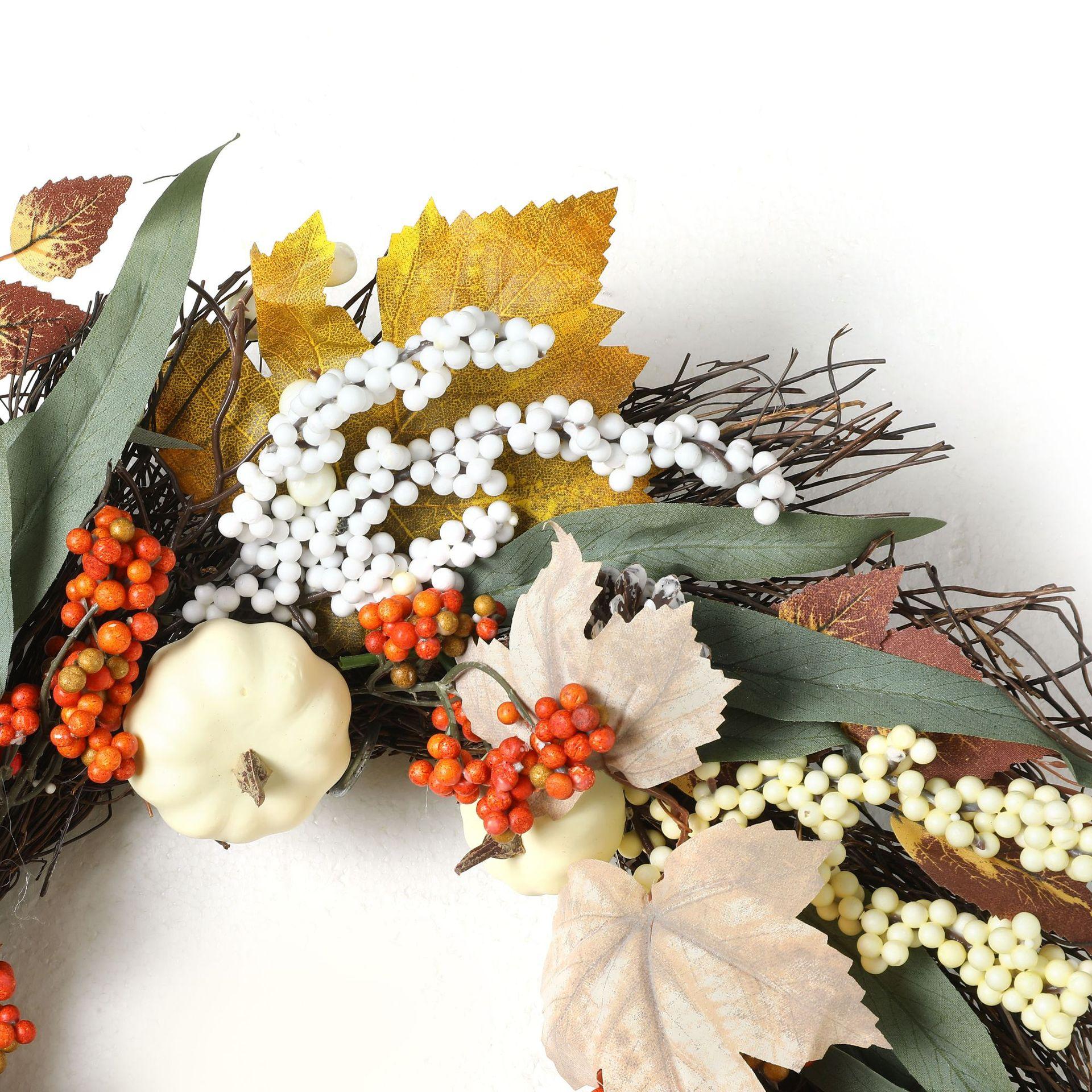 Transfronterizo Amazon Nuevo Producto Halloween Otoño Guirnalda de Hoja de Arce Calabaza Baya Colgante de Puerta Festival de la Cosecha Anillo de Ratán Acción de Gracias