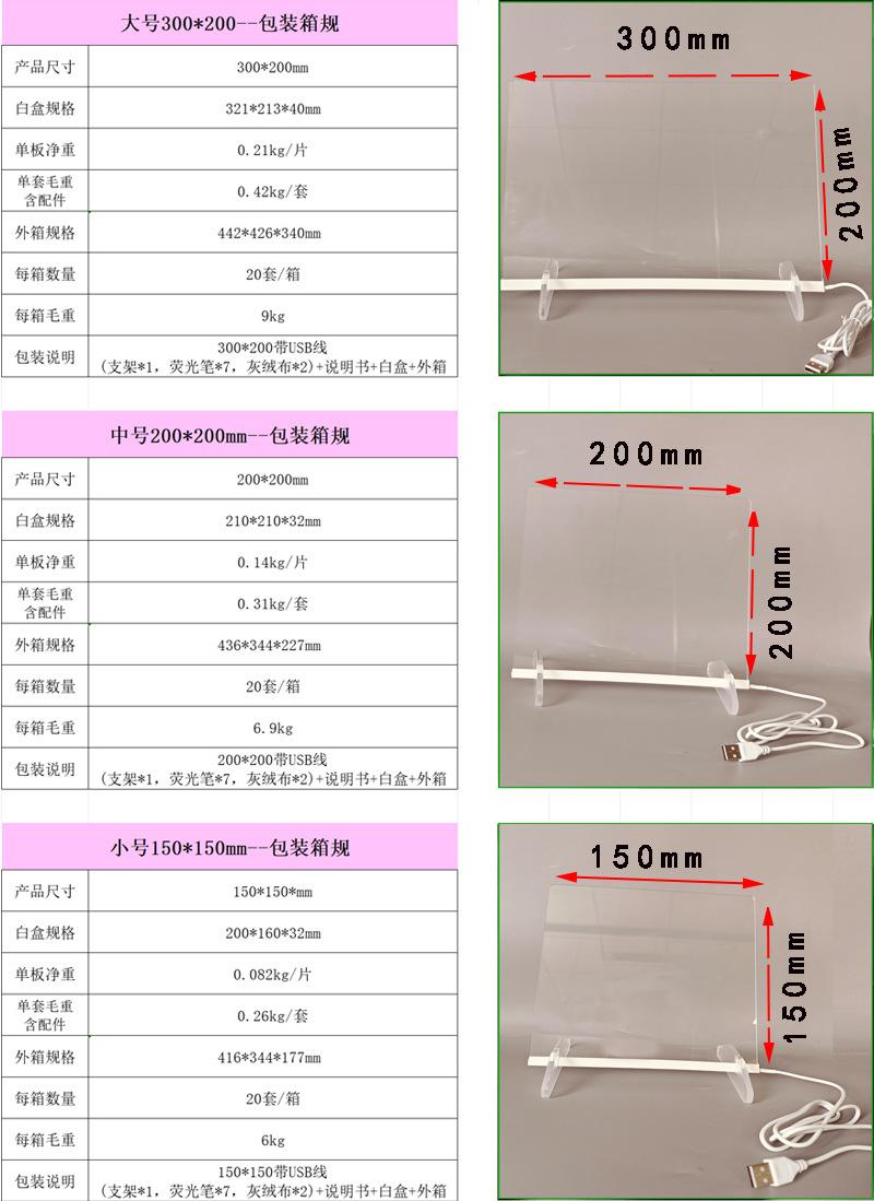 150*150mm anti-sassafras material (with usb cable*bracket*2/highlighter*7/rag*2), 200*200mm anti-sassafrass ma...