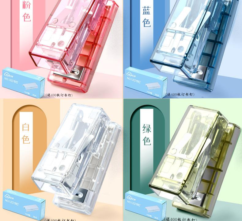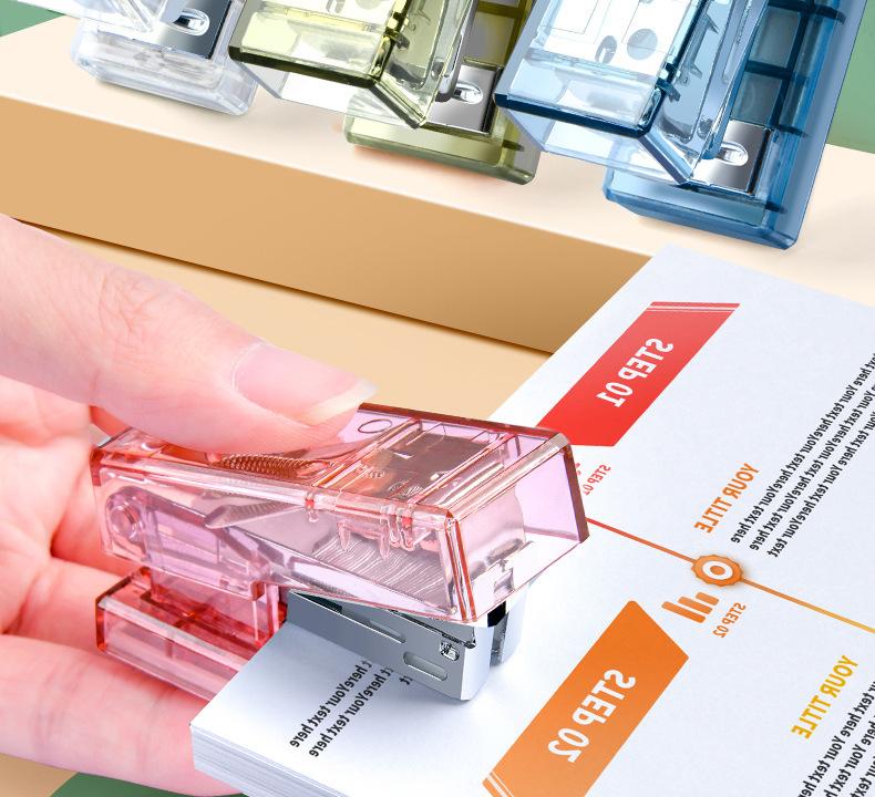 Grapadora Transparente Estudiante Mini tamaño pequeño Portátil Oficina Ahorro de Mano Grapadora Pequeña No. 12 grapadoras