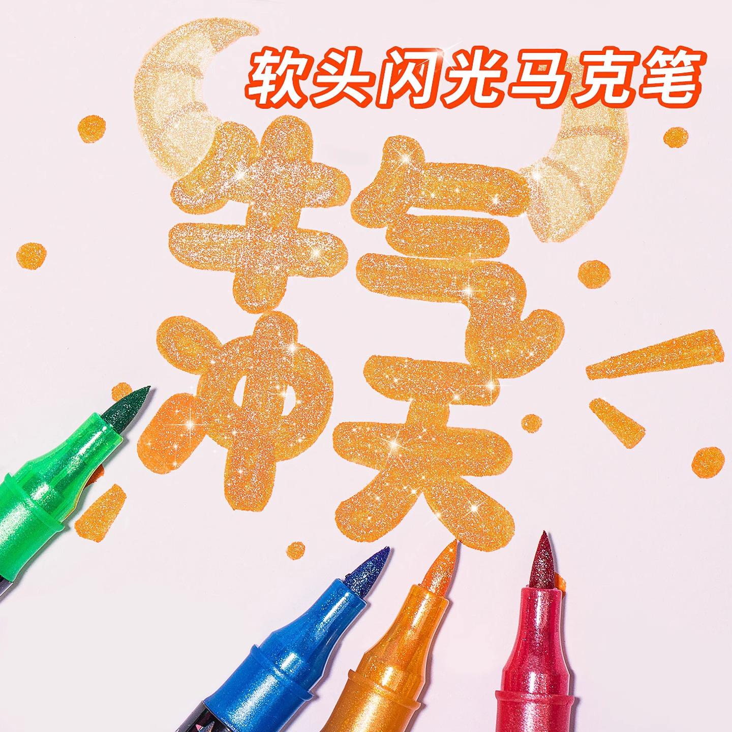 Marcador acrílico flash para estudiantes de primaria, pintura artística, bolígrafo de color especial, serpentina de color para niños, marcador de doble punta