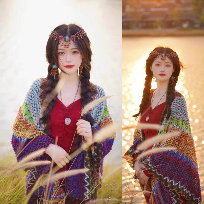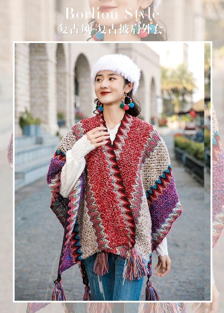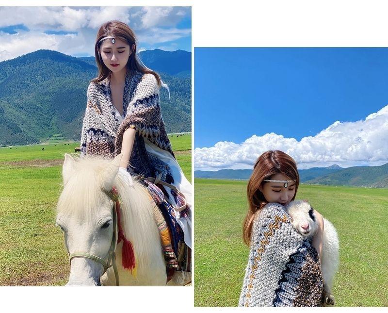 Chal Lijiang para Mujer Estilo Étnico Turismo Xizang Qinghai Yunnan Capa Tipo Capa Chal Dai