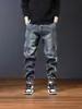 Pantalones vaqueros con cordones en los tobillos para hombre, nuevos jeans de otoño 2023, pantalones harén holgados y casuales, pantalones cortos.