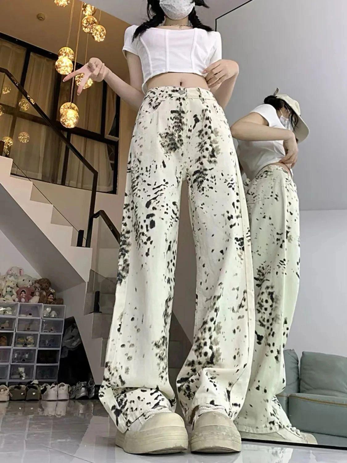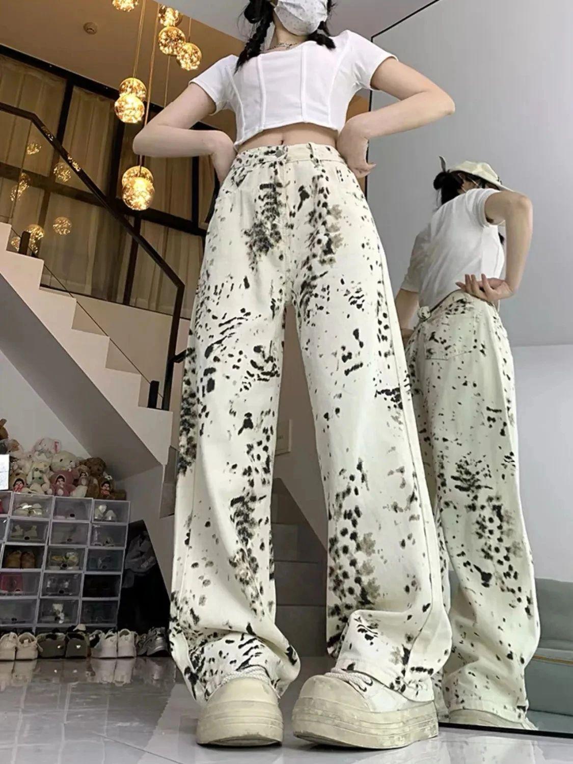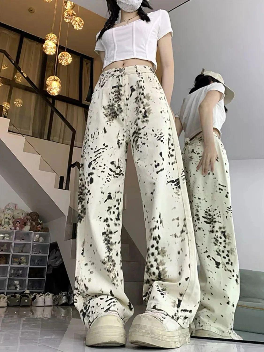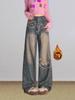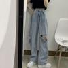 Pantalones vaqueros holgados de pierna ancha estilo retro para mujer, pantalones casuales rectos de primavera y verano, estilo americano, novedad