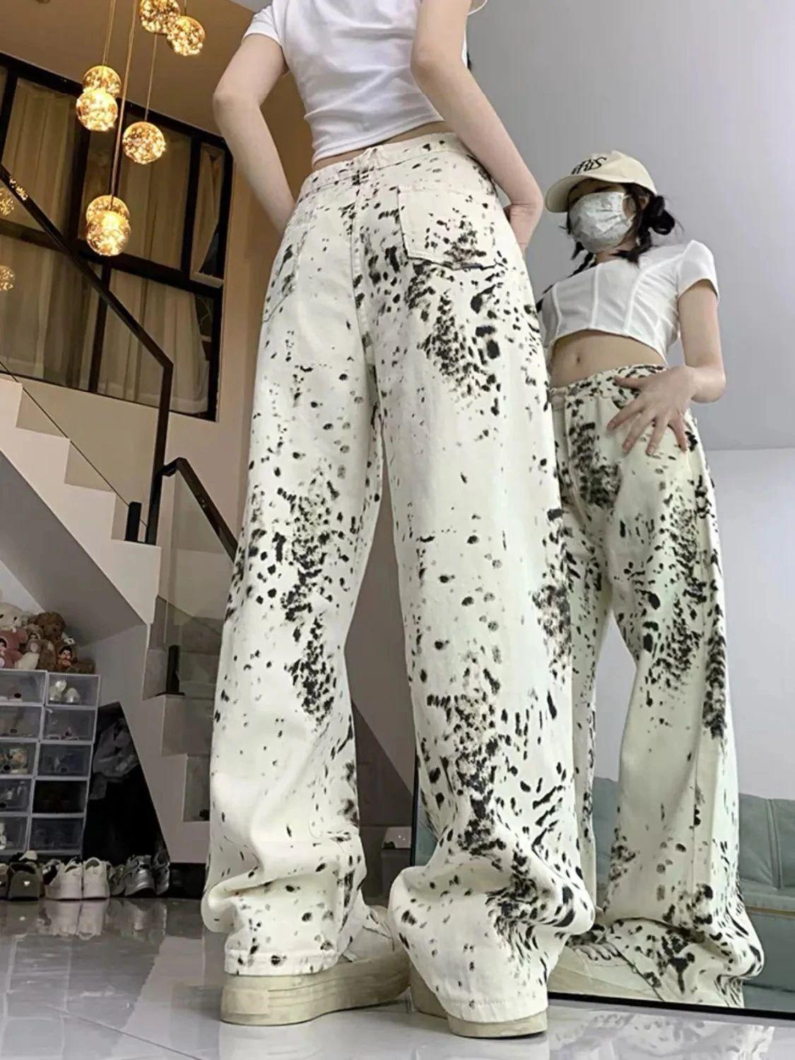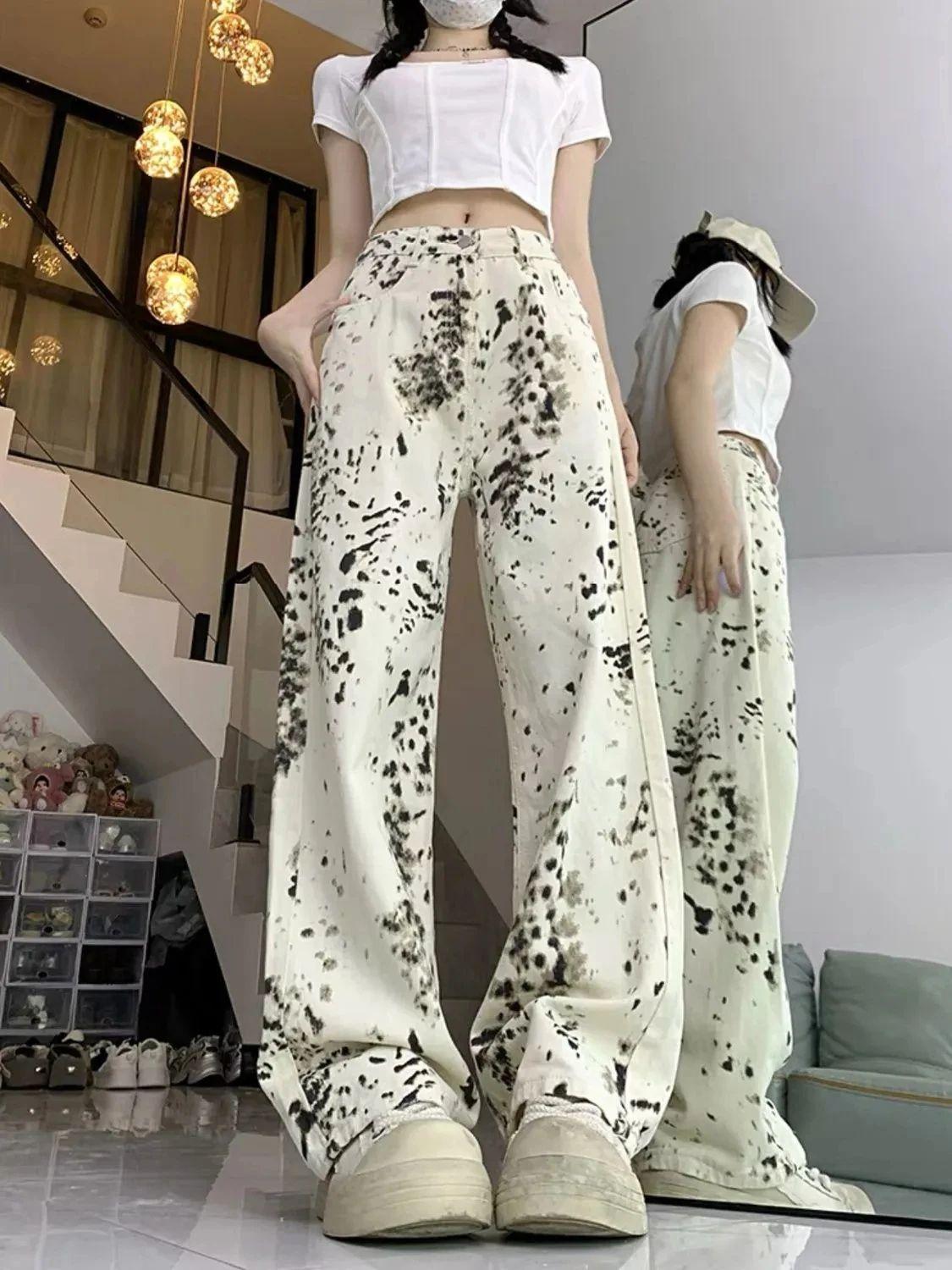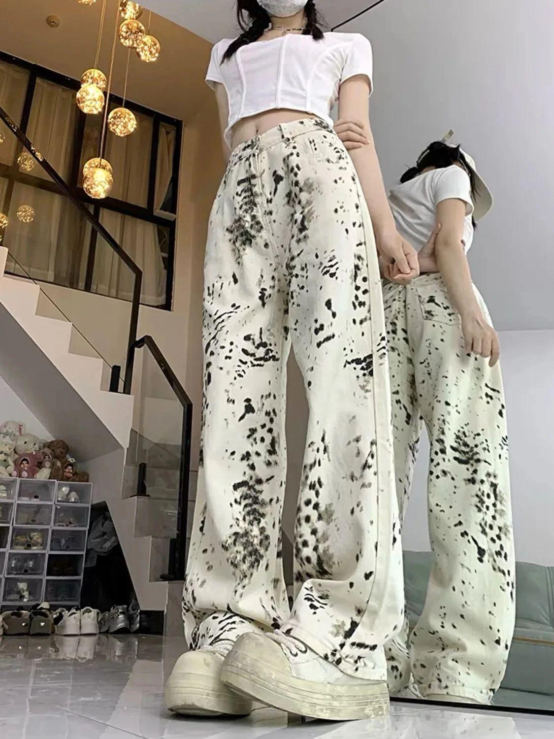 Pantalones vaqueros holgados de pierna ancha estilo retro para mujer, pantalones casuales rectos de primavera y verano, estilo americano, novedad