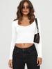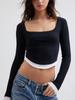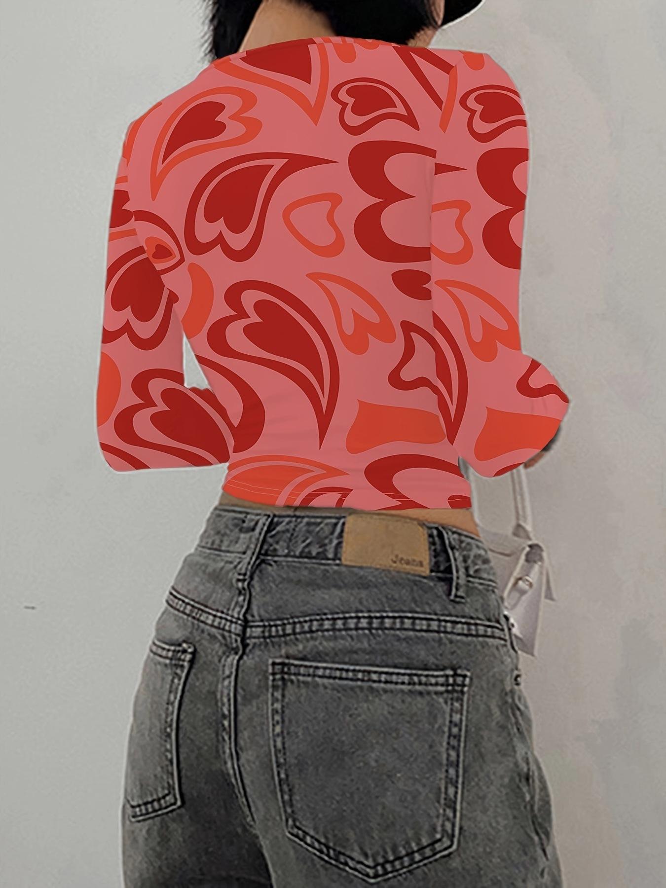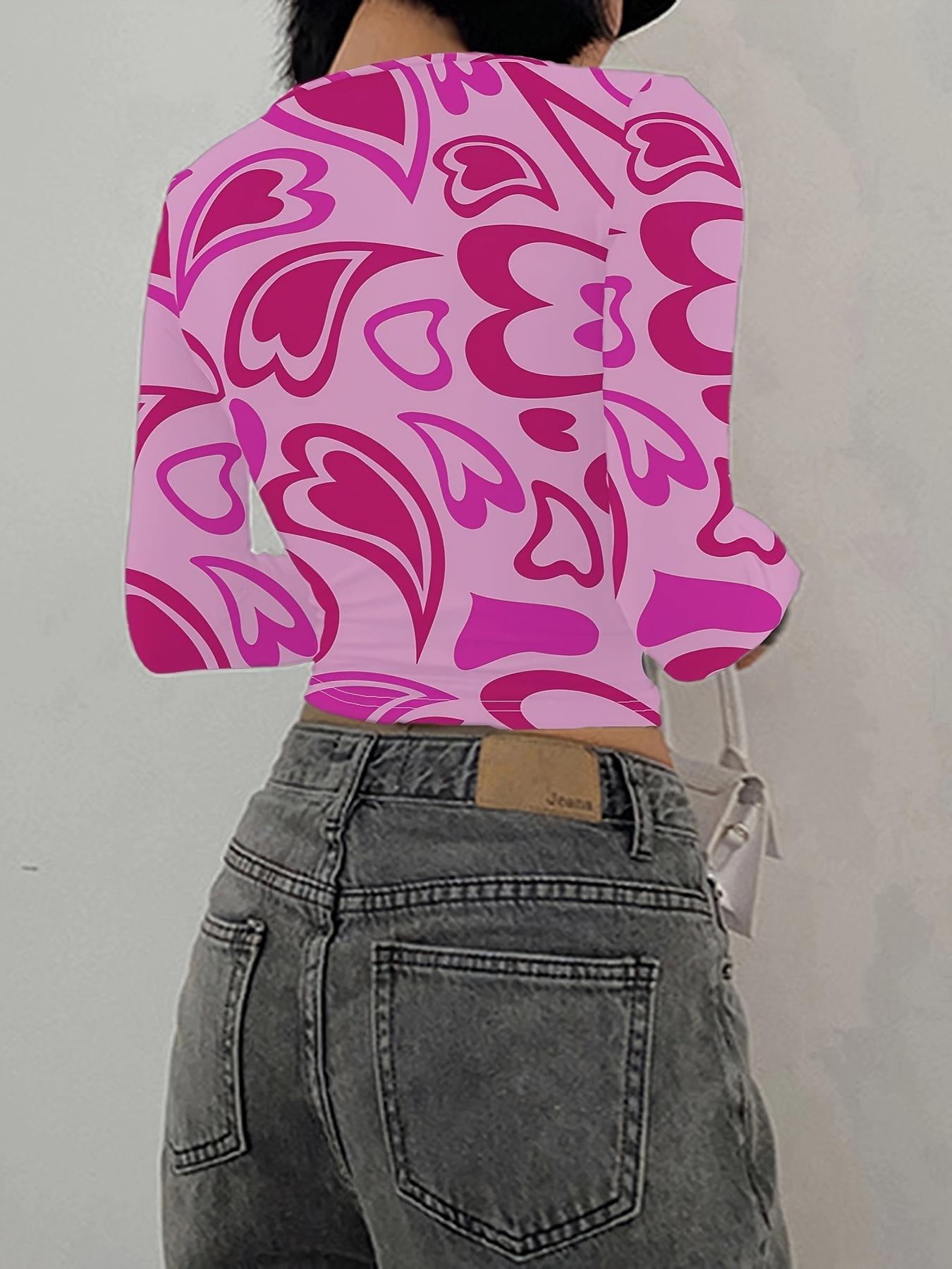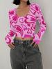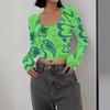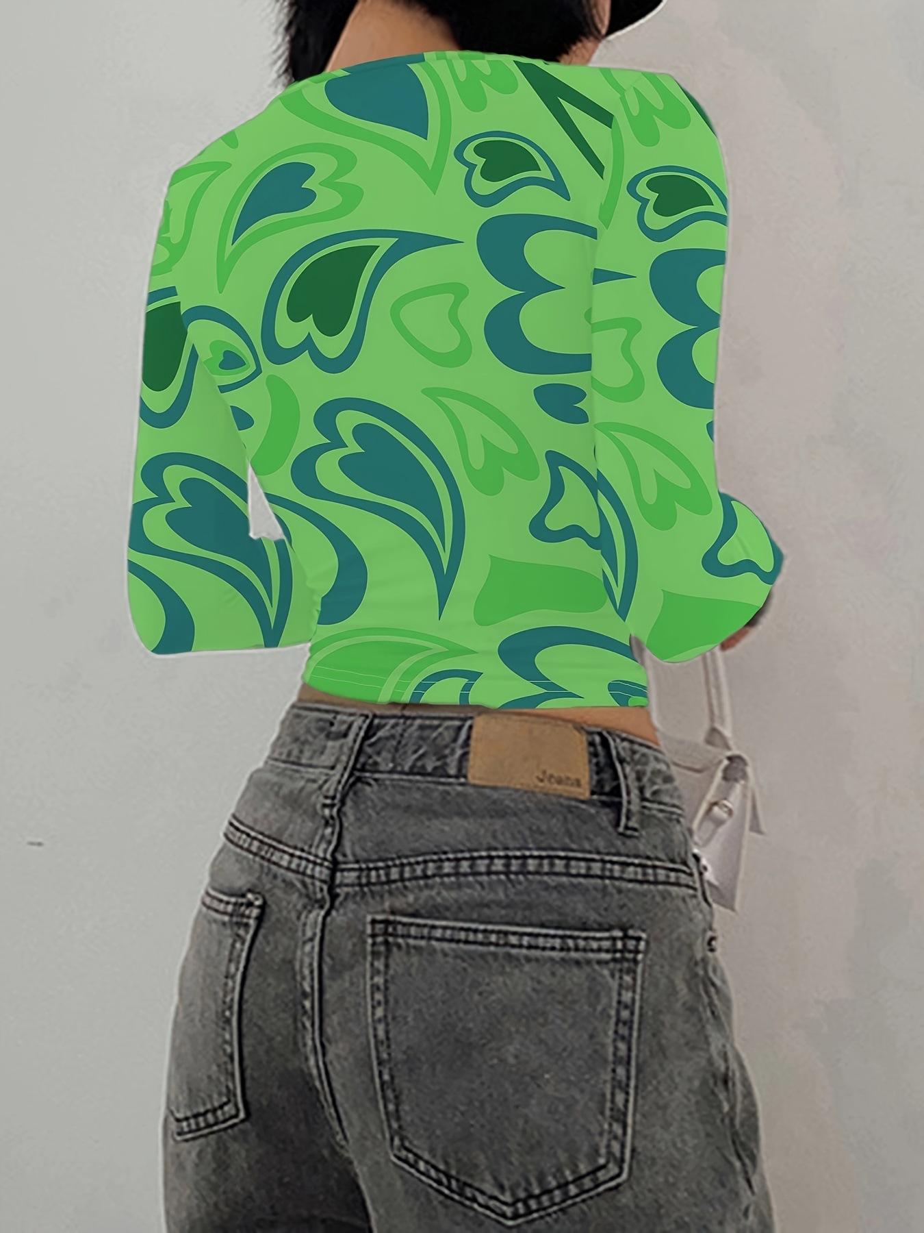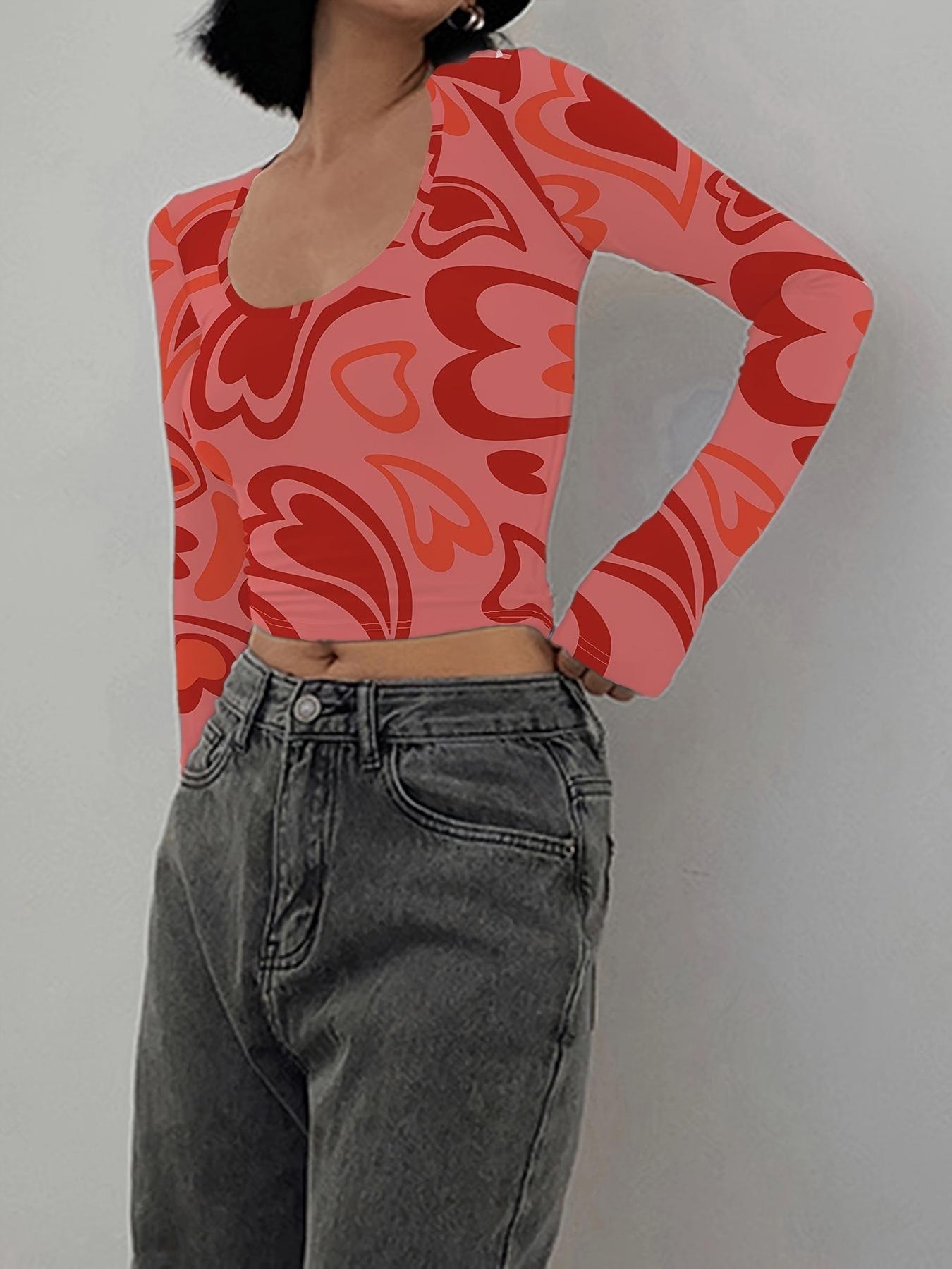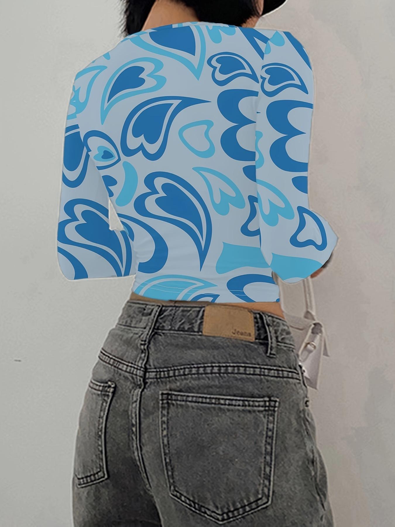 Top de verano europeo y americano de estilo transfronterizo de Amazon, sexy, con cuello en U grande, estampado, de manga larga, ajustado y corto, para mujer