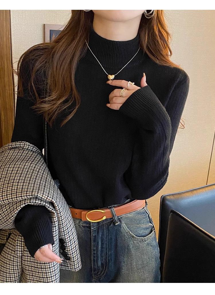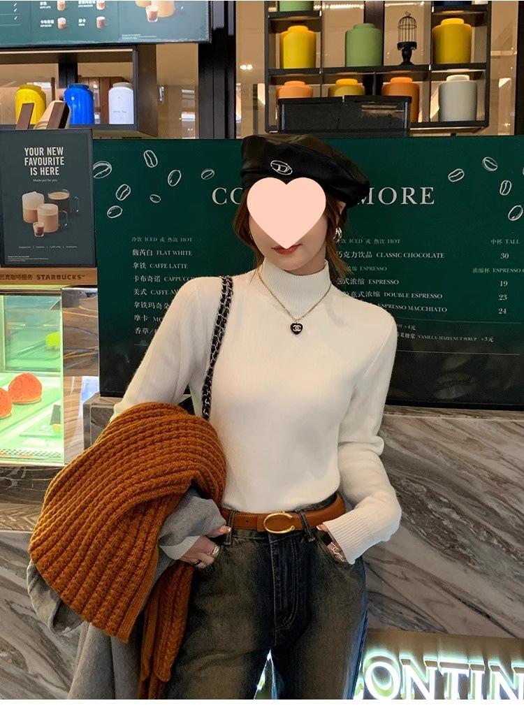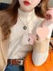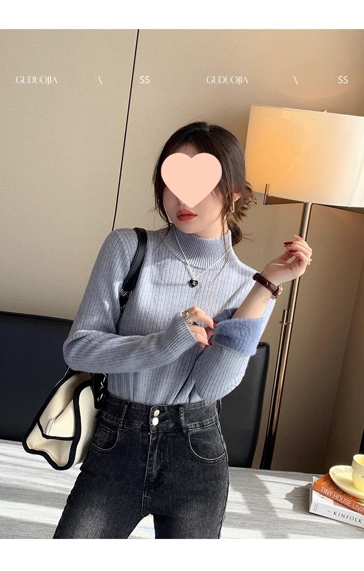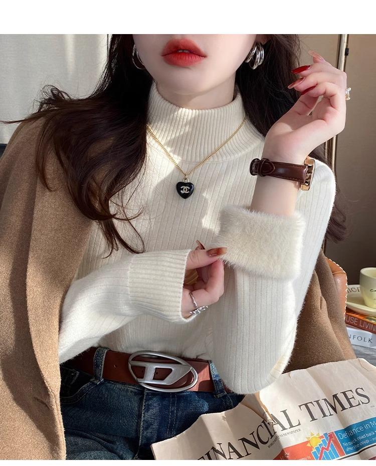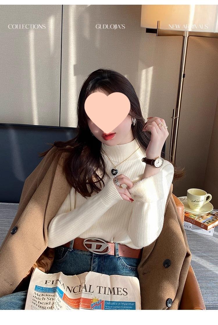Suéter extra grueso de invierno para mujer, camisa de terciopelo engrosada, nueva blusa de terciopelo todo en uno con cuello alto interior de otoño e invierno.