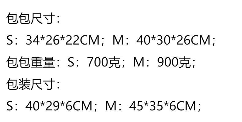 S: length 34 * Width 22 * Height 26cm, M: length 40 * width 26 * high 30cm