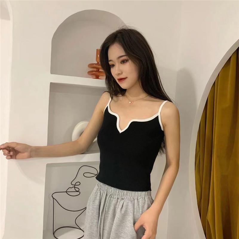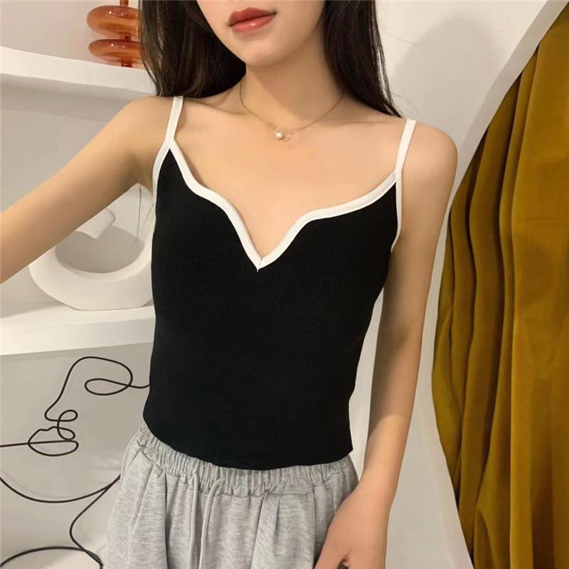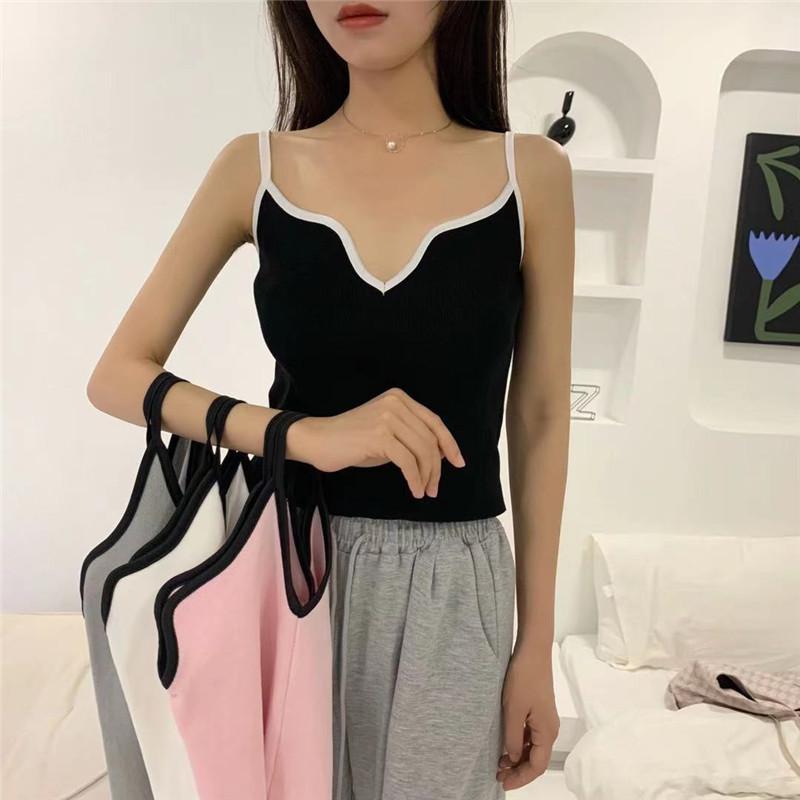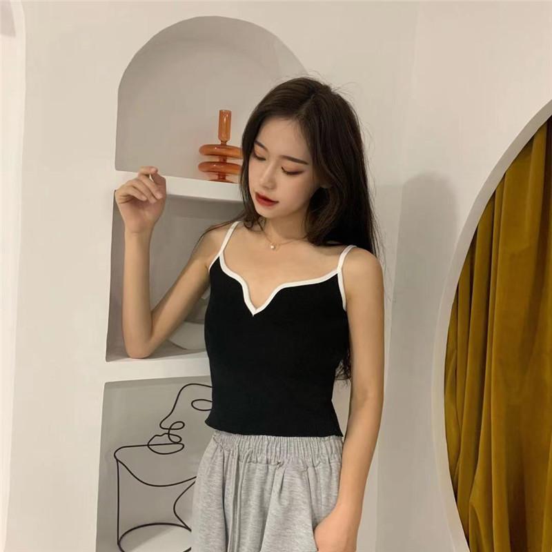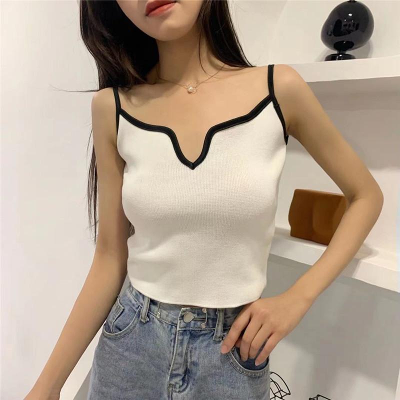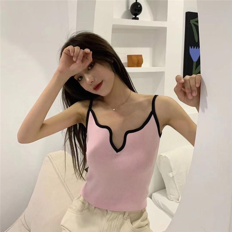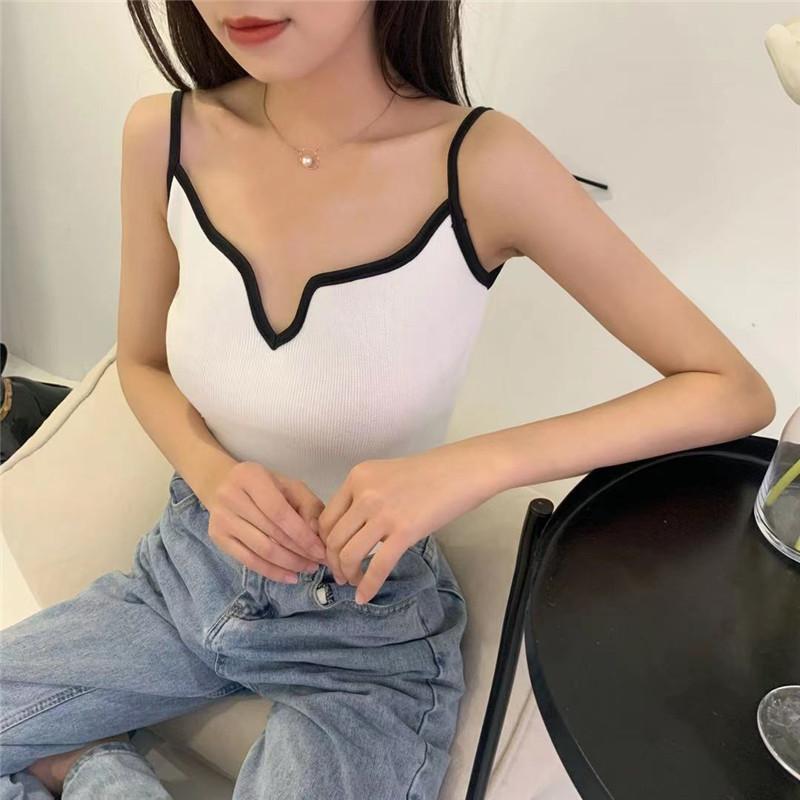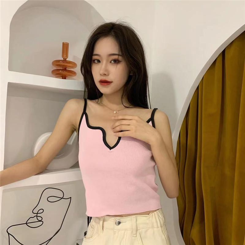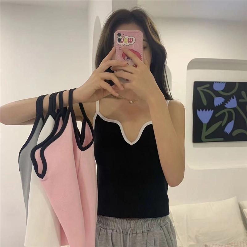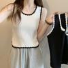 Camisola de punto estilo coreano de verano 2023 con espalda descubierta y diseño de encaje para mujer, top corto ajustado con base interior